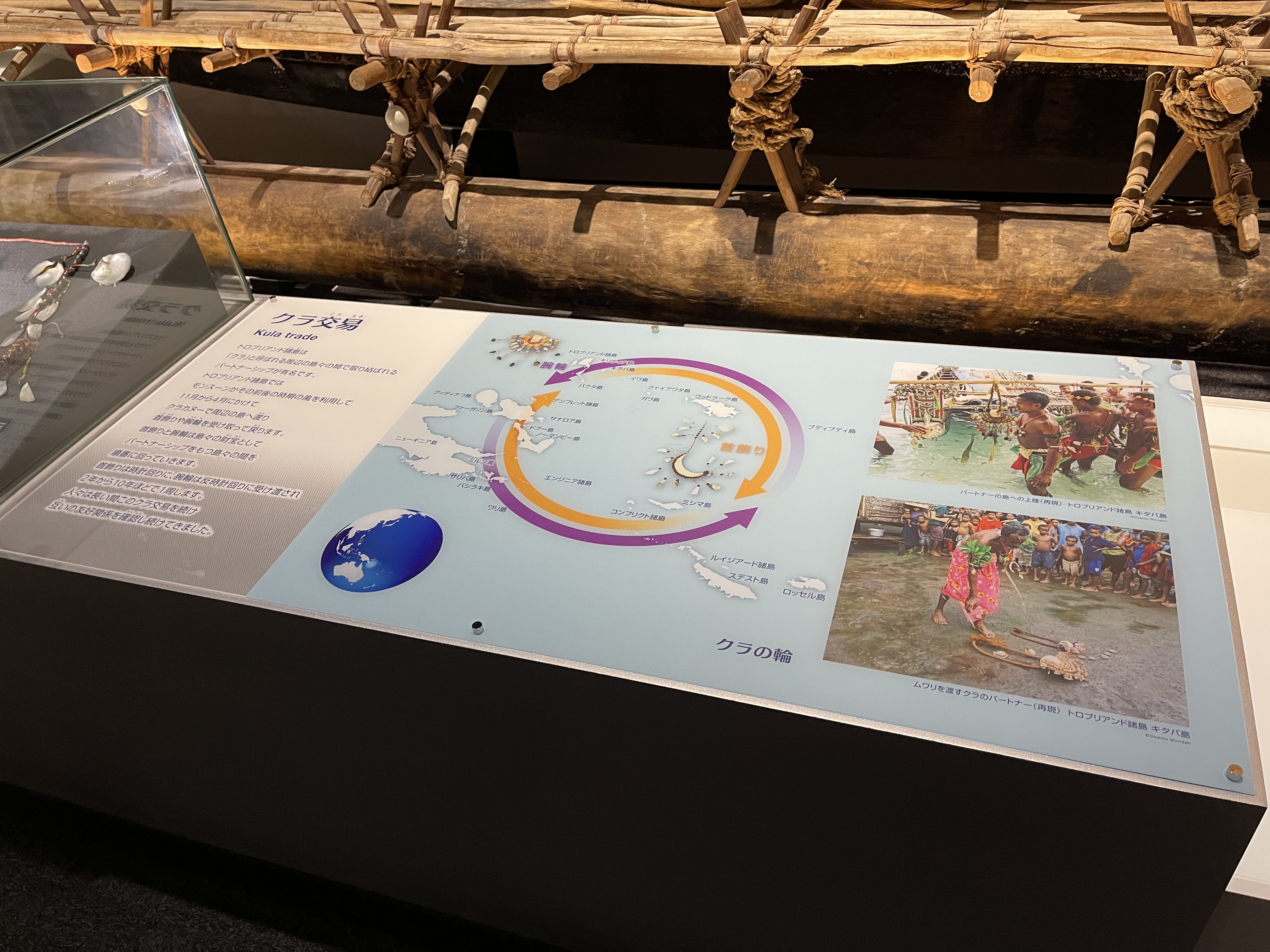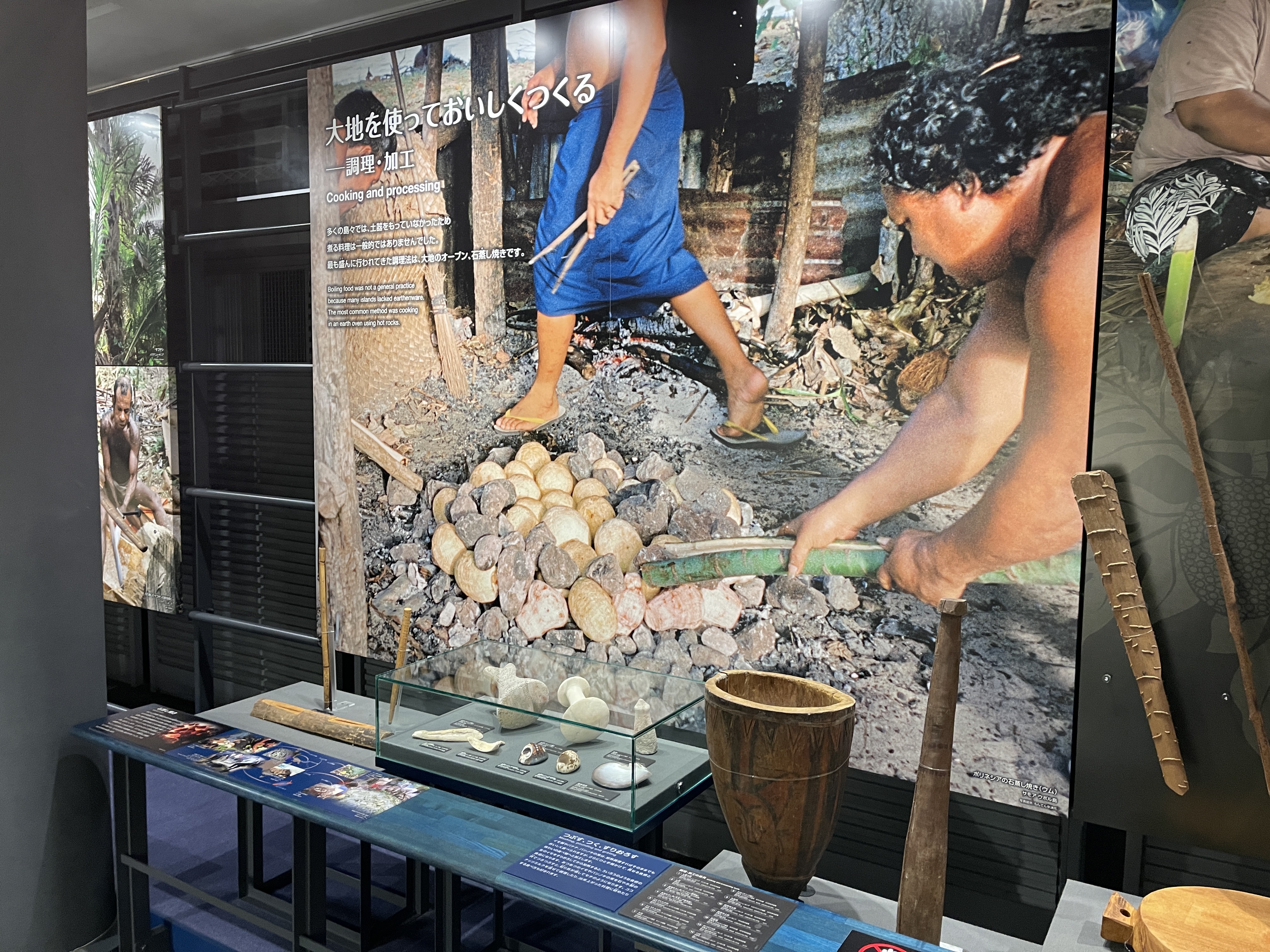 태평양에 있는 수많은 섬들에 사는 사람들의 보편적인 문화에 대해 다루는 전시물이 나오는데