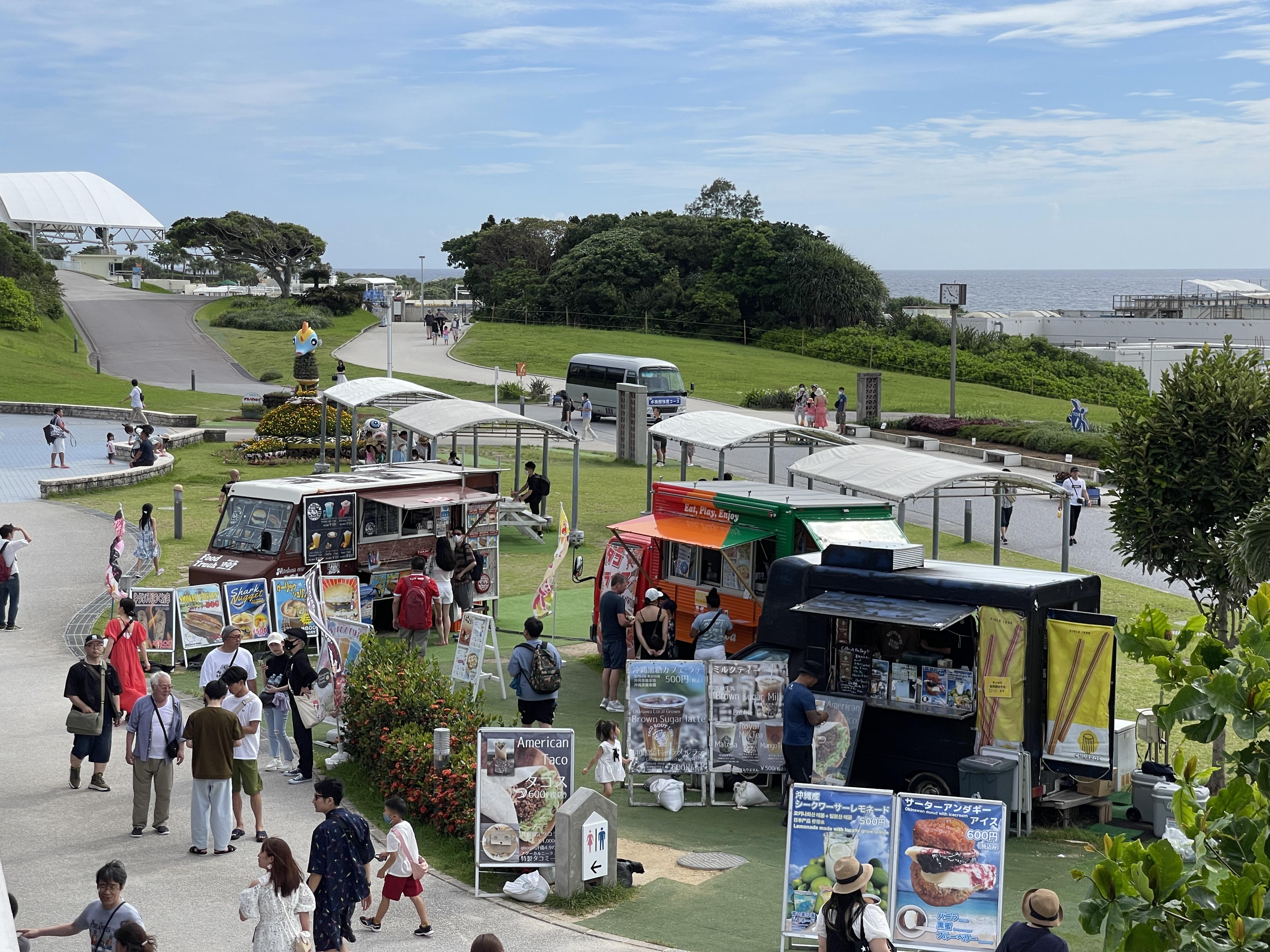 츄라우미 수족관에서 나오니 푸드트럭이 모인 곳이 보이는데