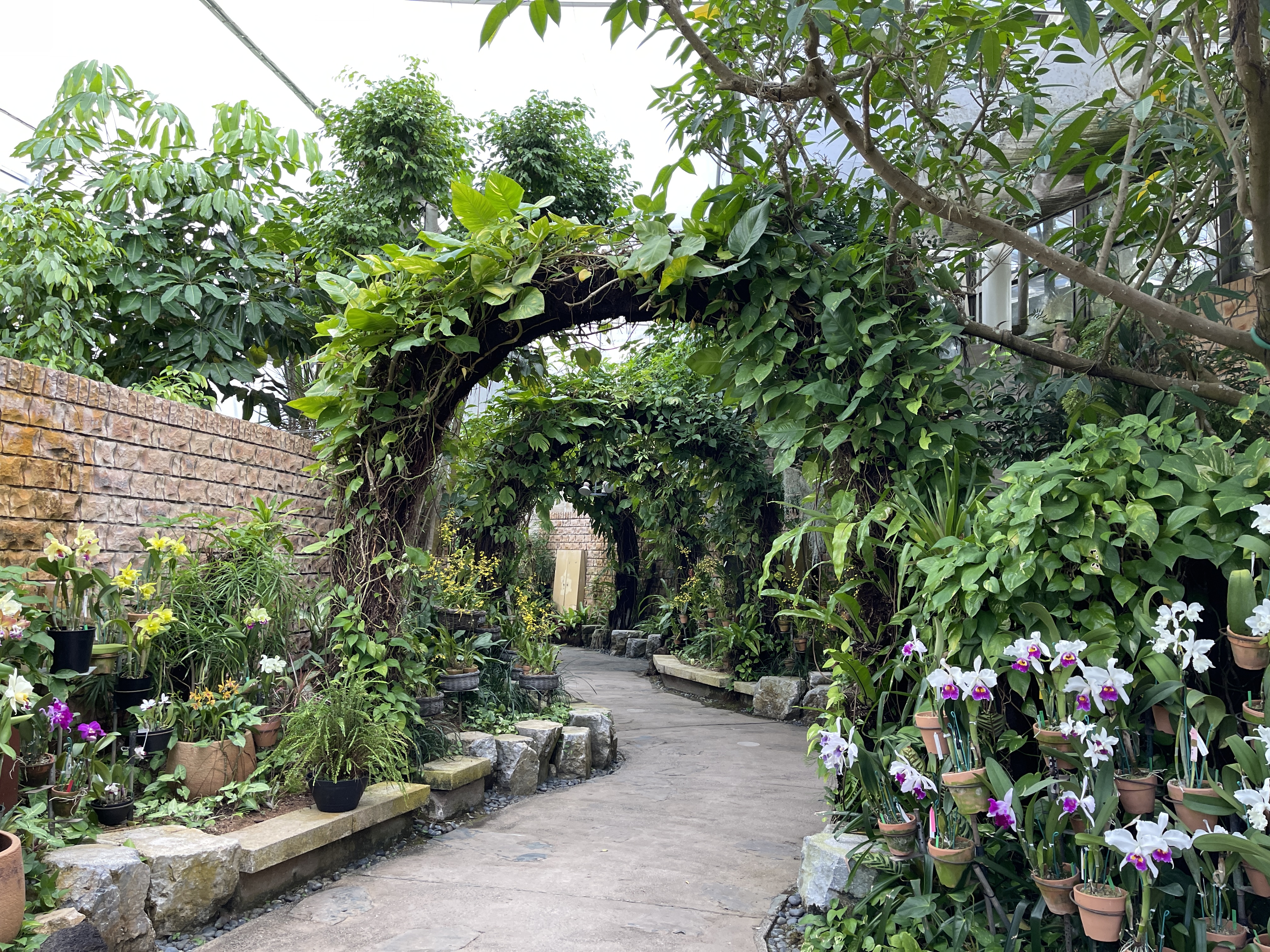 다시 정신을 차리고 굽이진 길로 이어지는 온실로 들어갑니다.