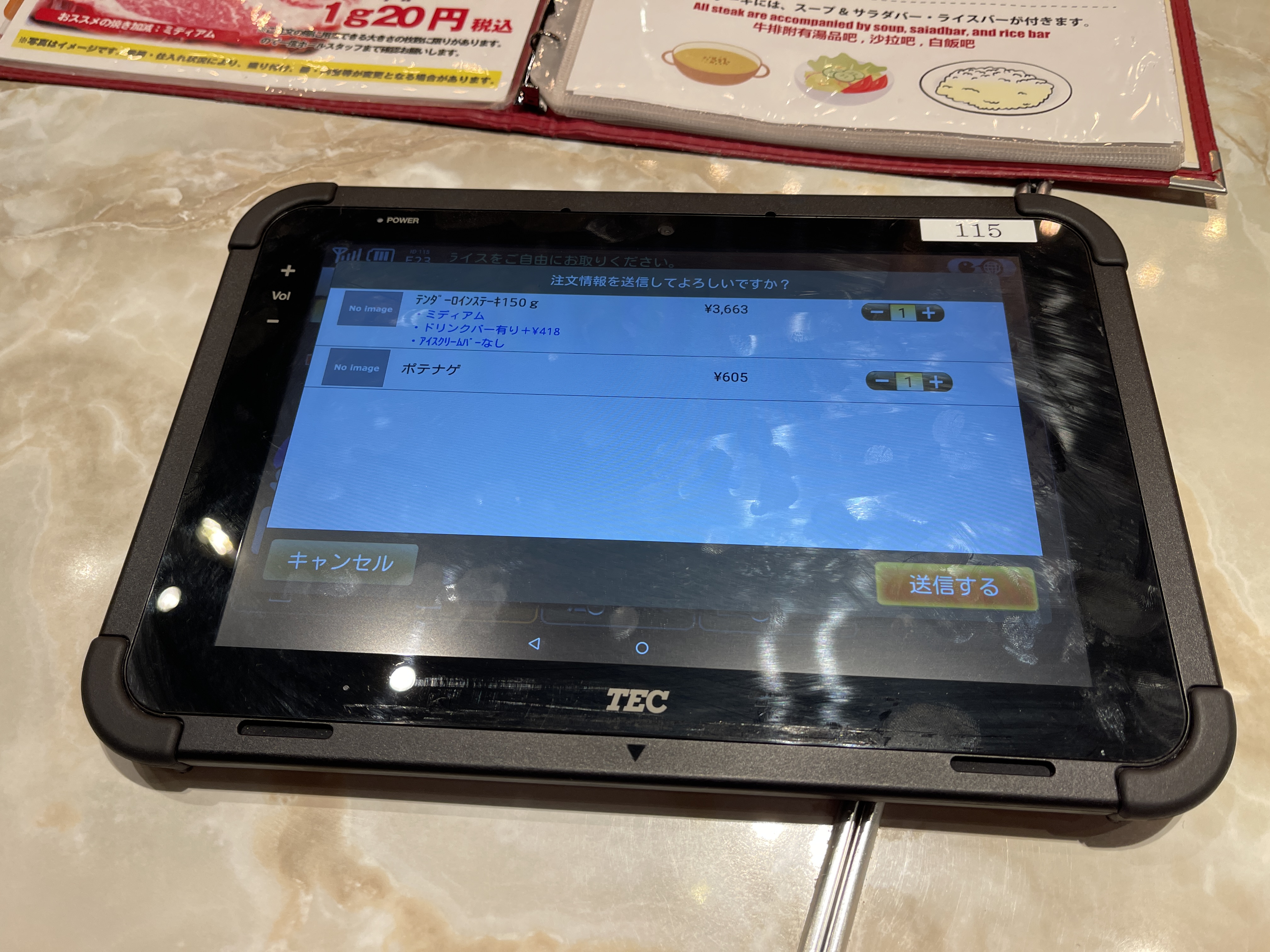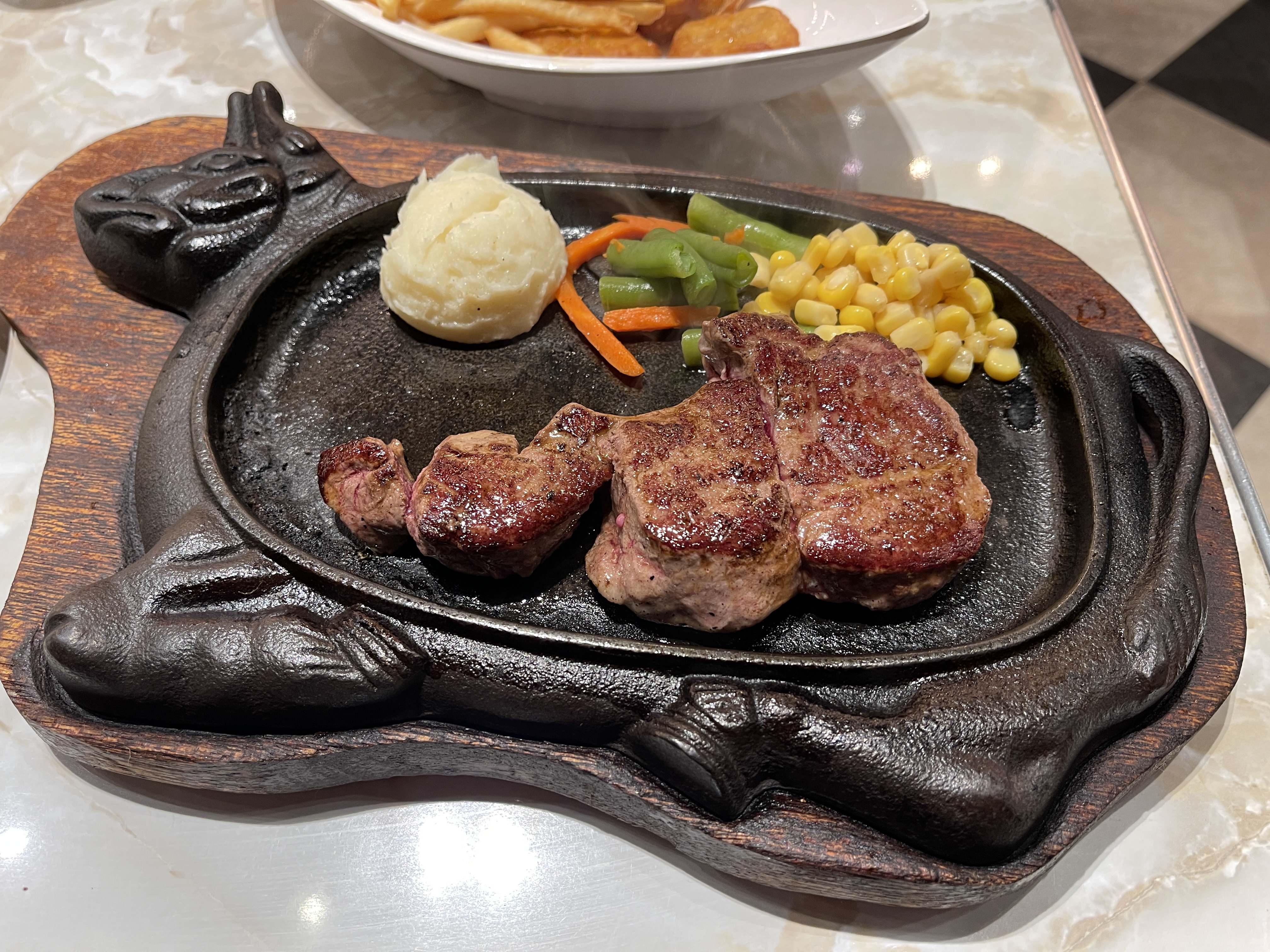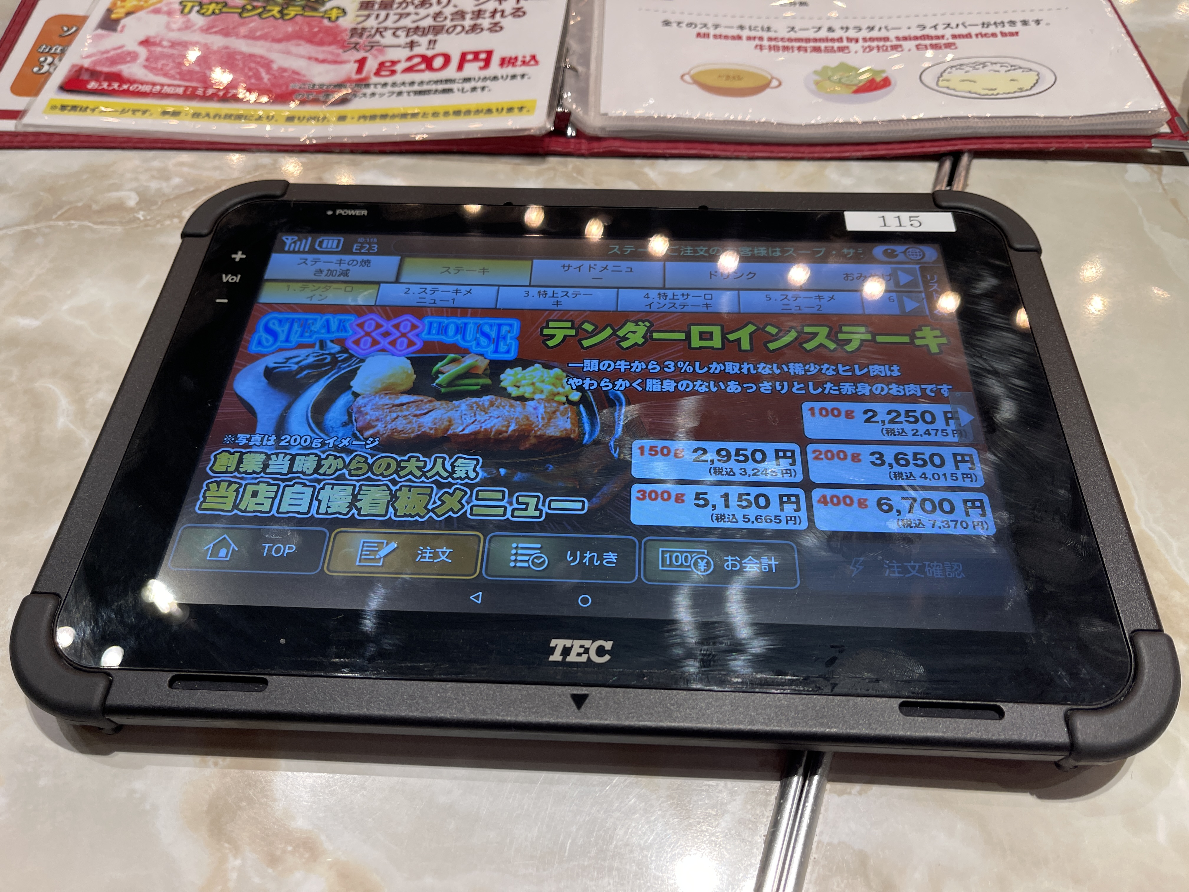 그래서 태블릿에 보이던 텐더 로인 스테이크 150g를 미디엄으로 주문하고