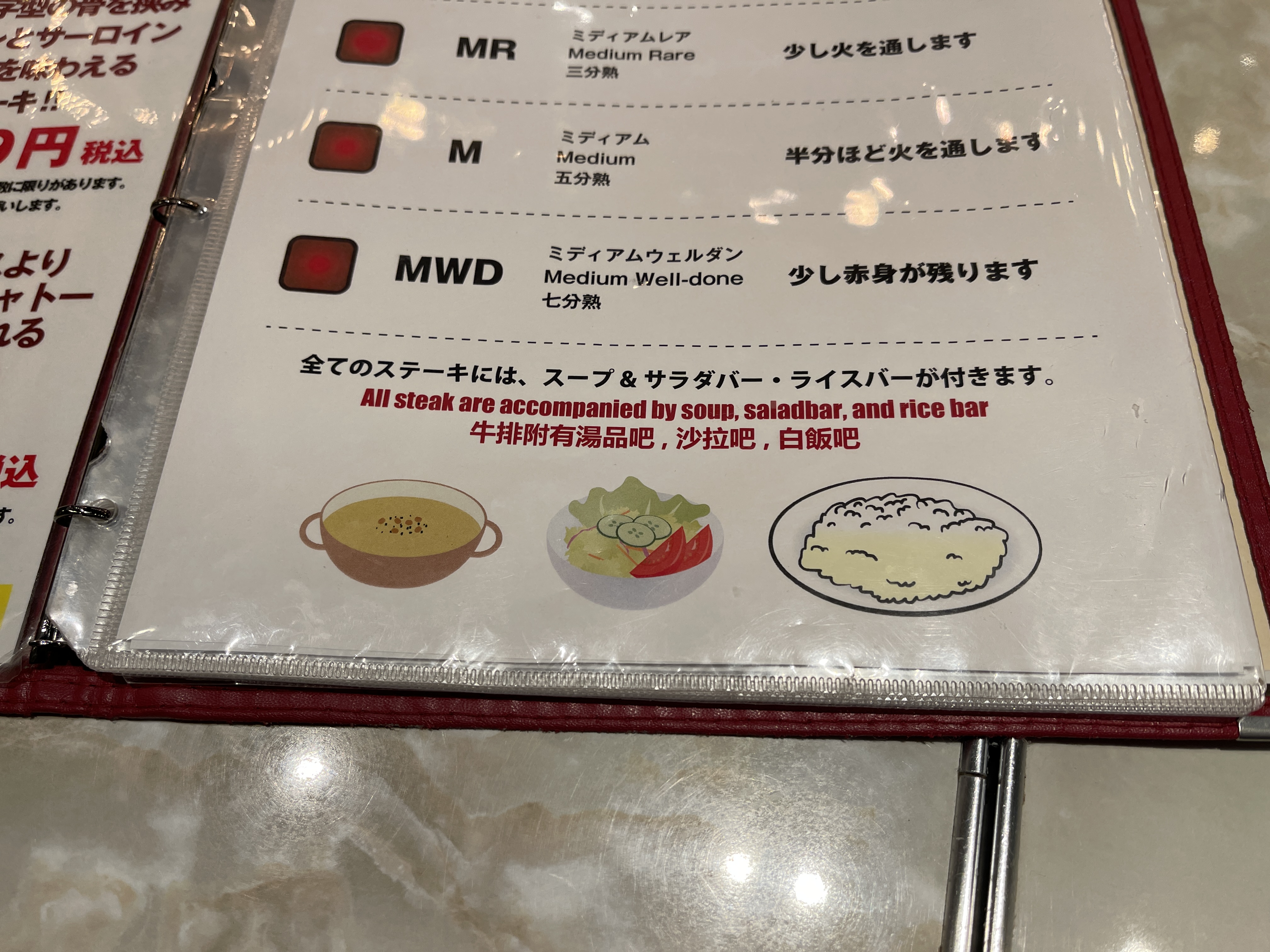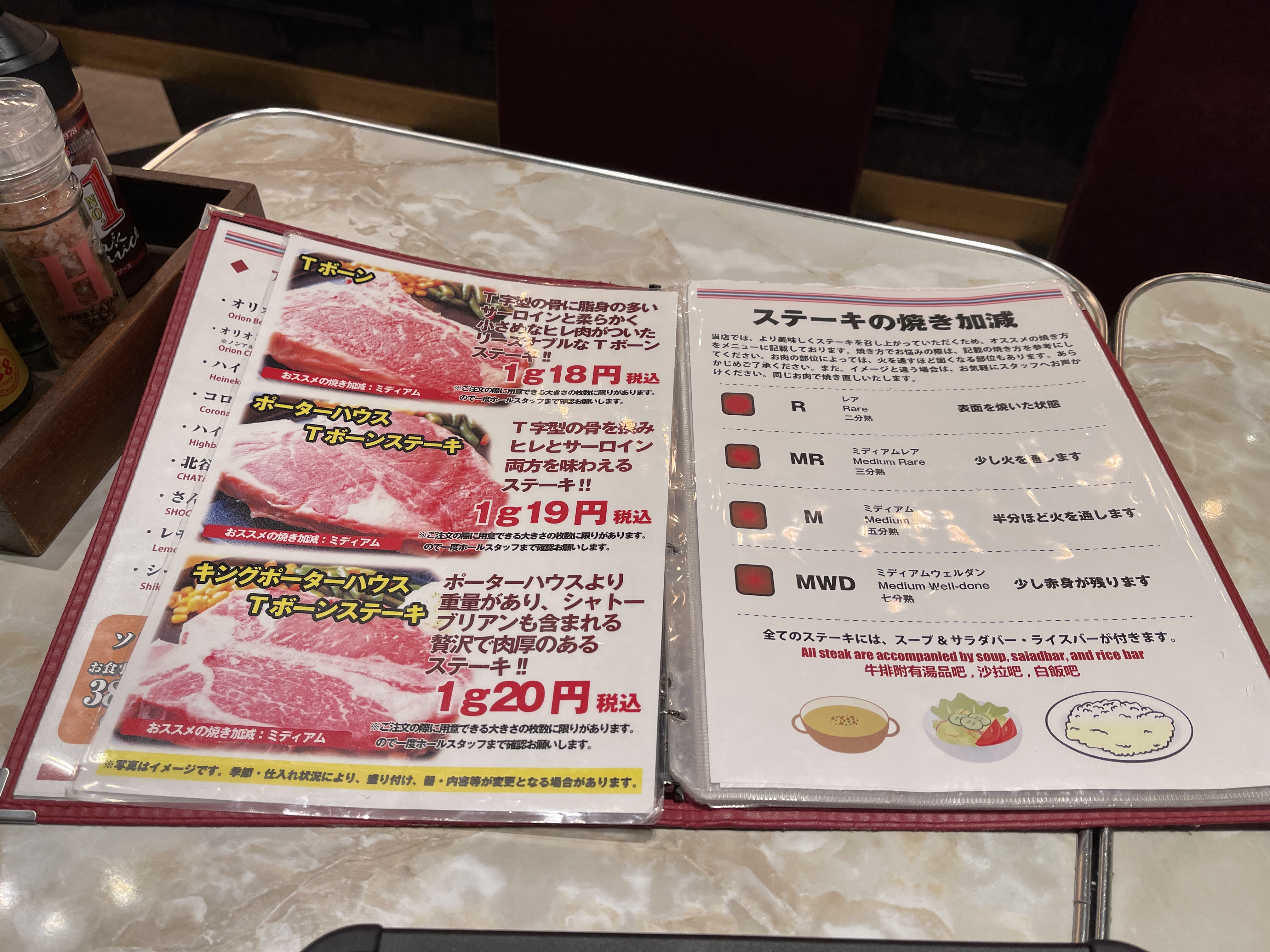 스테이크를 주문하면 샐러드바를 추가 지불 없이 이용할 수 있어서