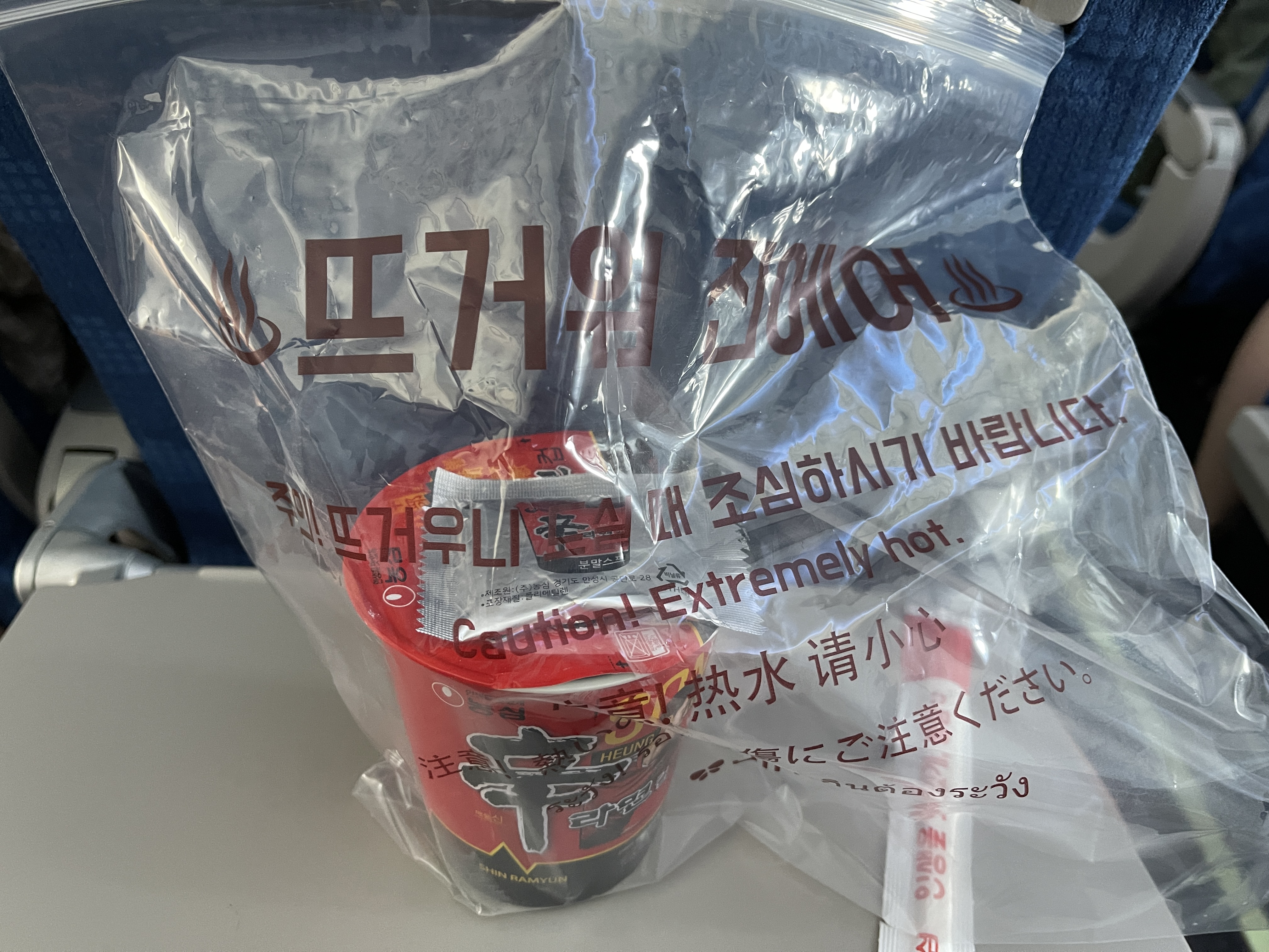 옆에 앉은 승객들이 대한항공에서 비행기를 예약해서 기내식 서비스를 받는 바람에