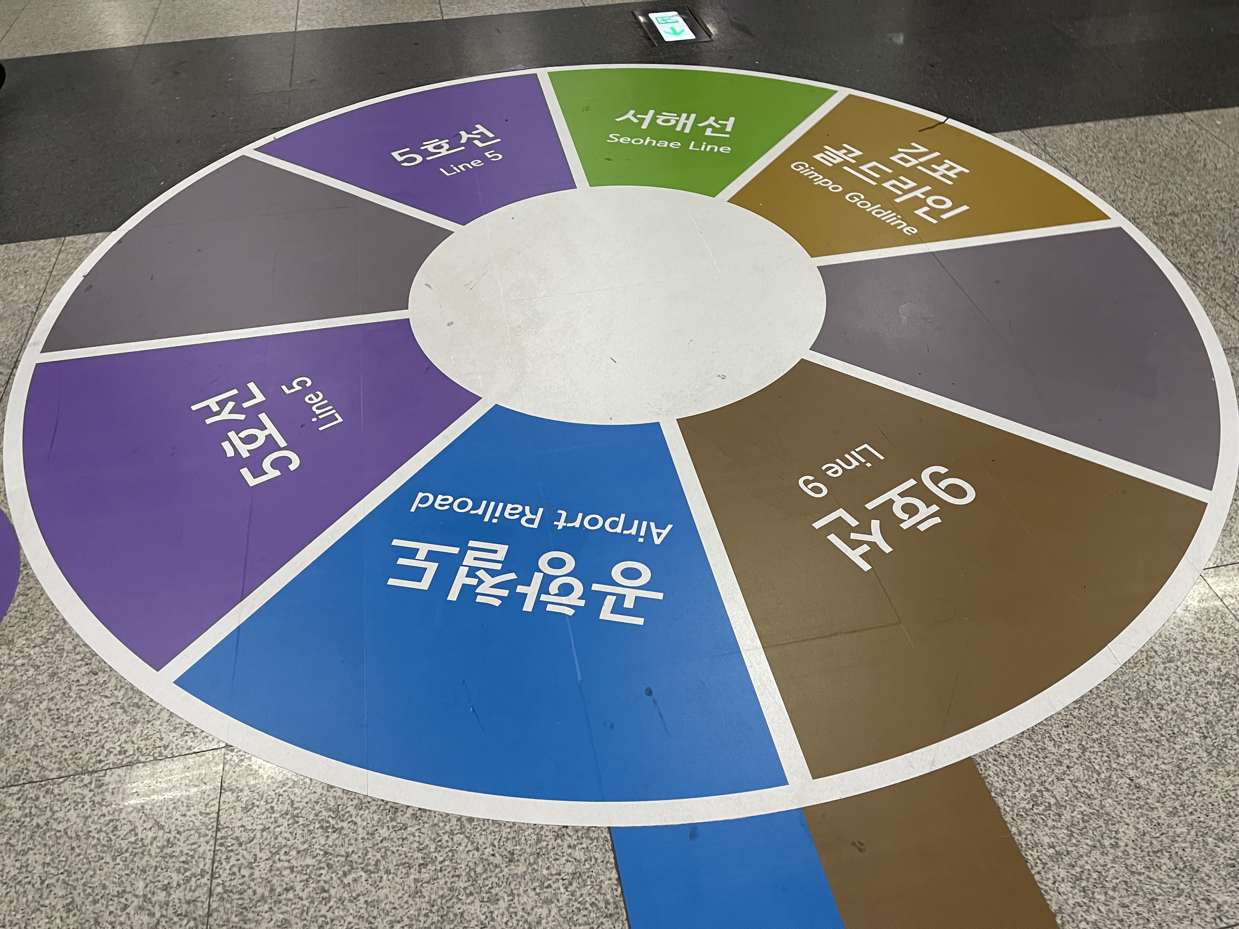 5개 노선 환승역의 위엄을 보여주는 환승 안내 화살표를 따라 걸어가다