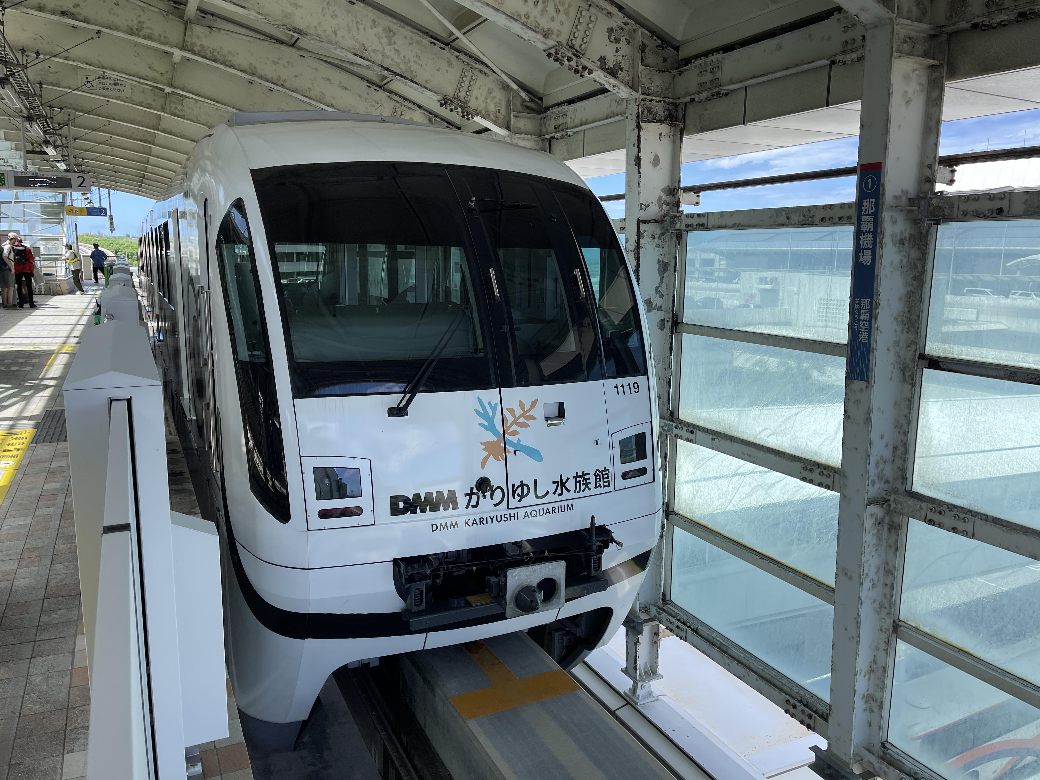 열차 밖에 붙은 래핑 광고는 나하공항에서 남쪽으로 쭉 내려가면 있는 DMM 카리유시 수족관인데