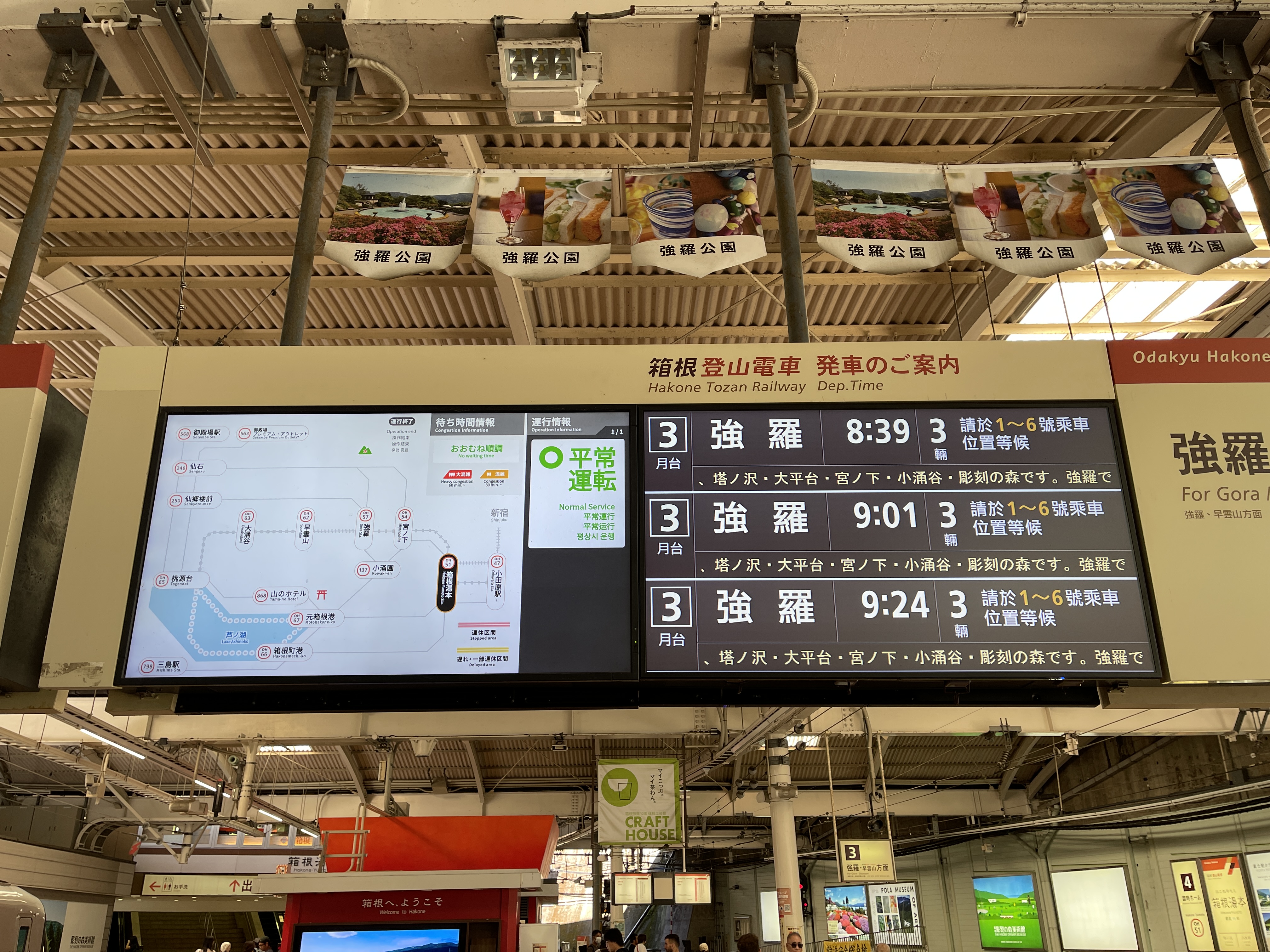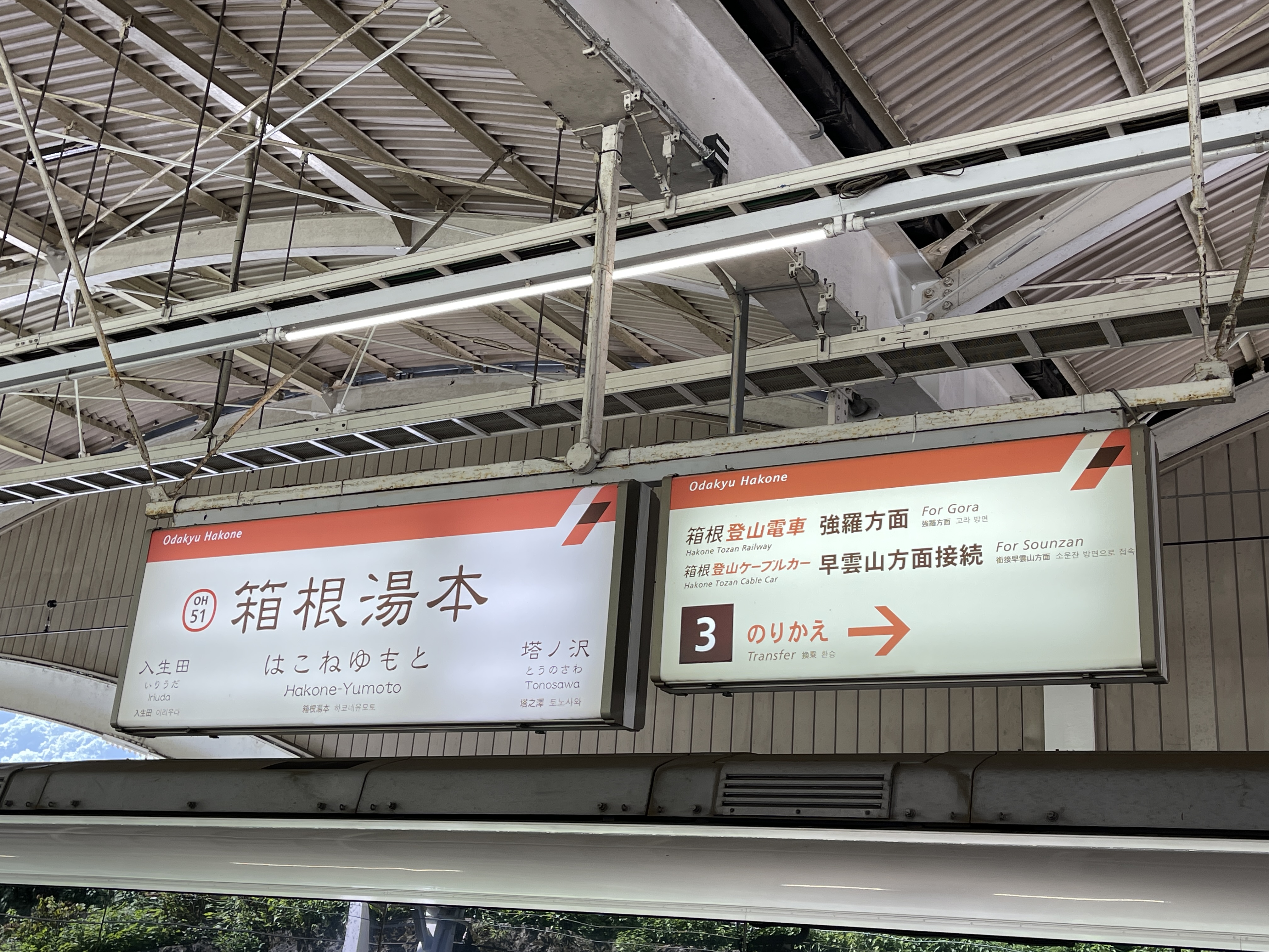 이리우다역을 지나 주변에 온천 시설로 가득한 하코네유모토역에 도착했습니다.