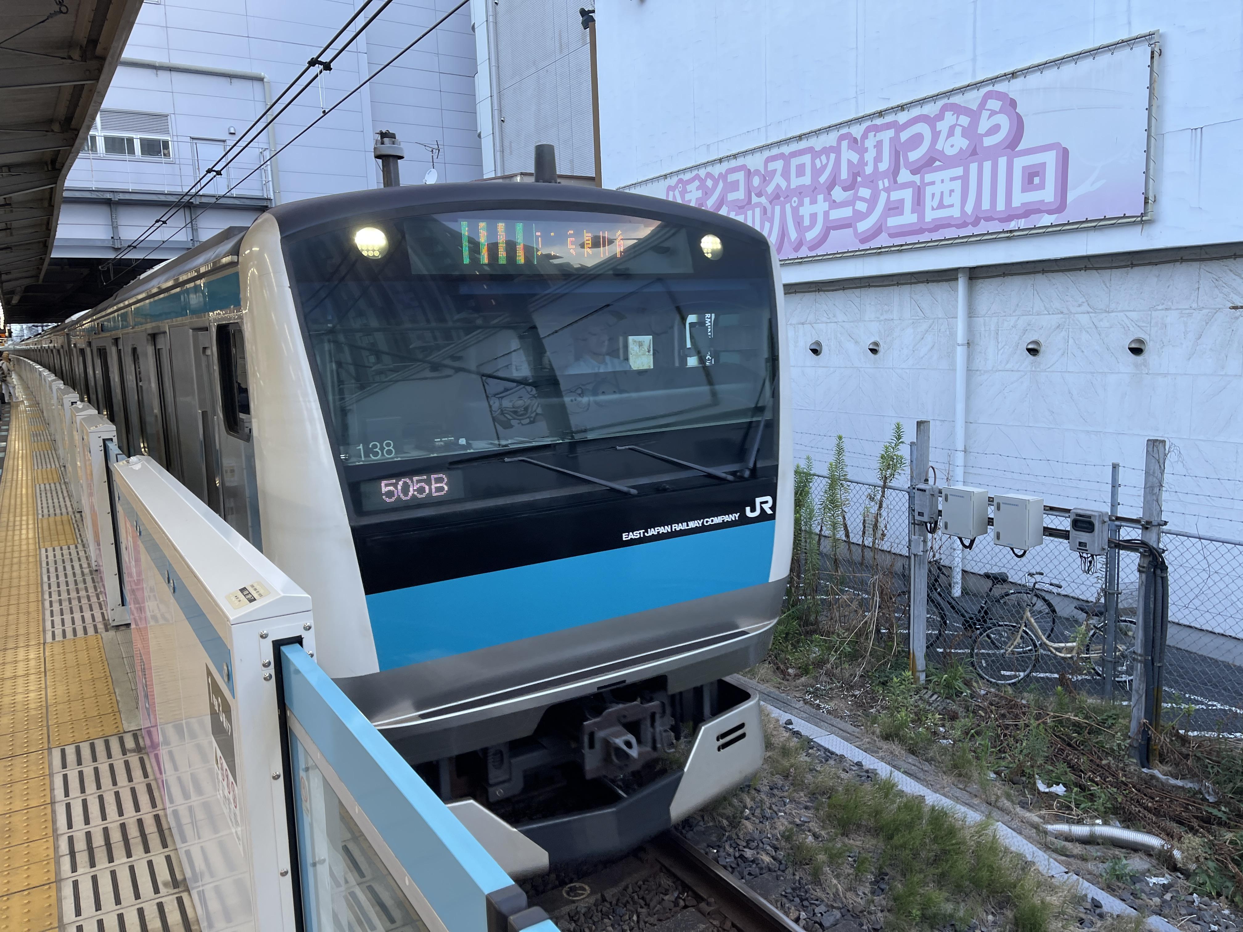 아카바네역에서 신주쿠로 가는 사이쿄선 열차로 갈아탄 뒤