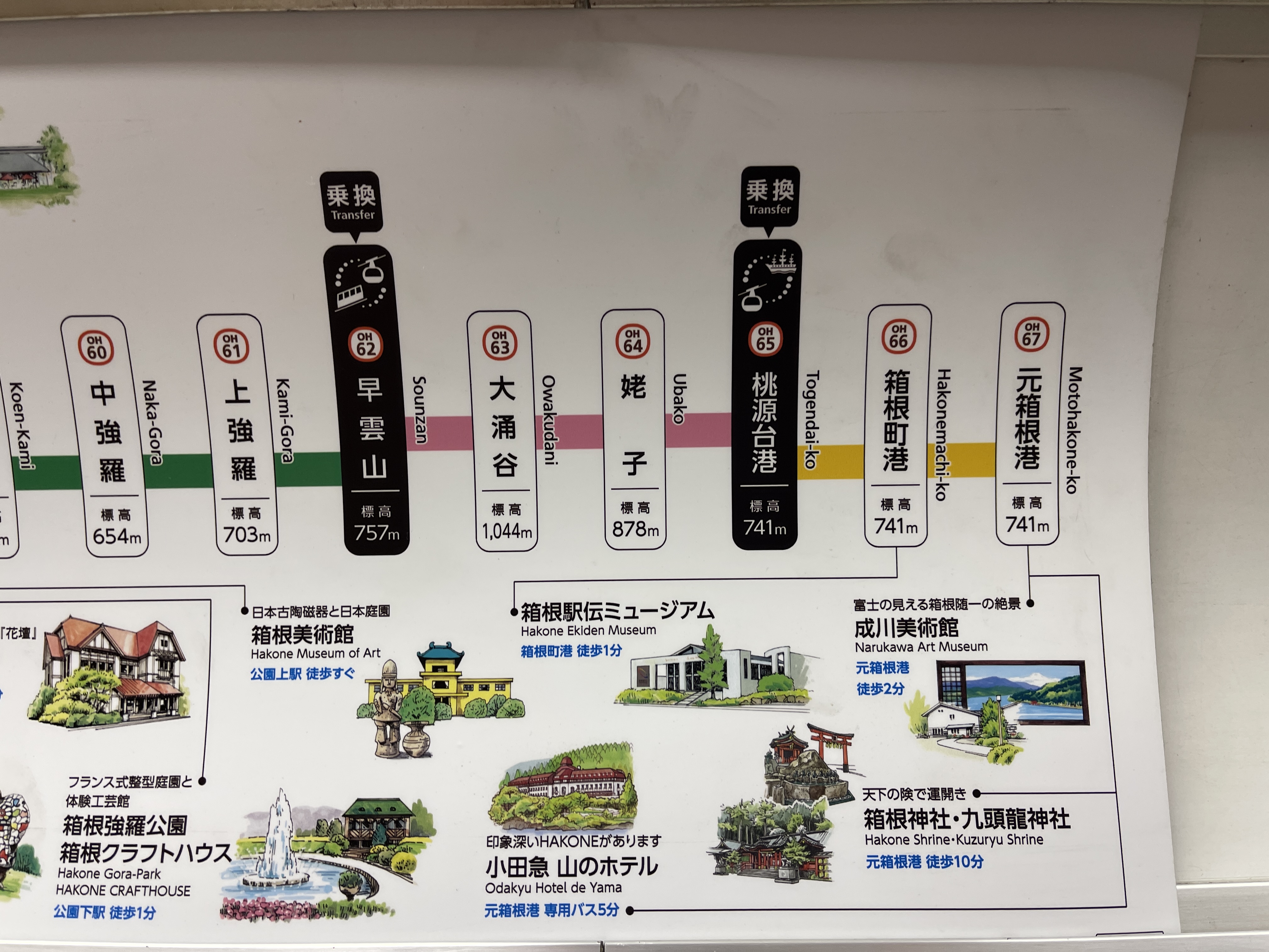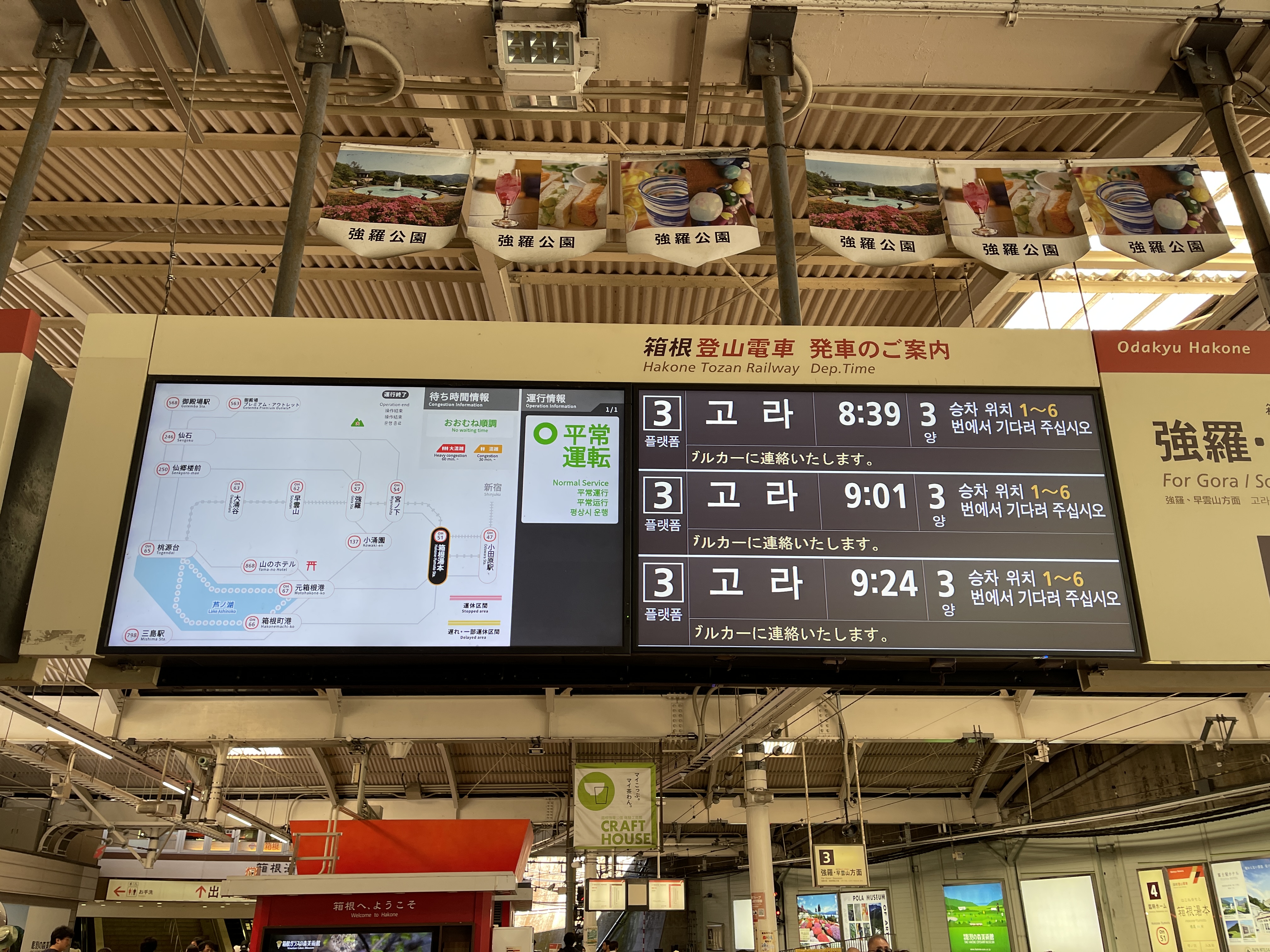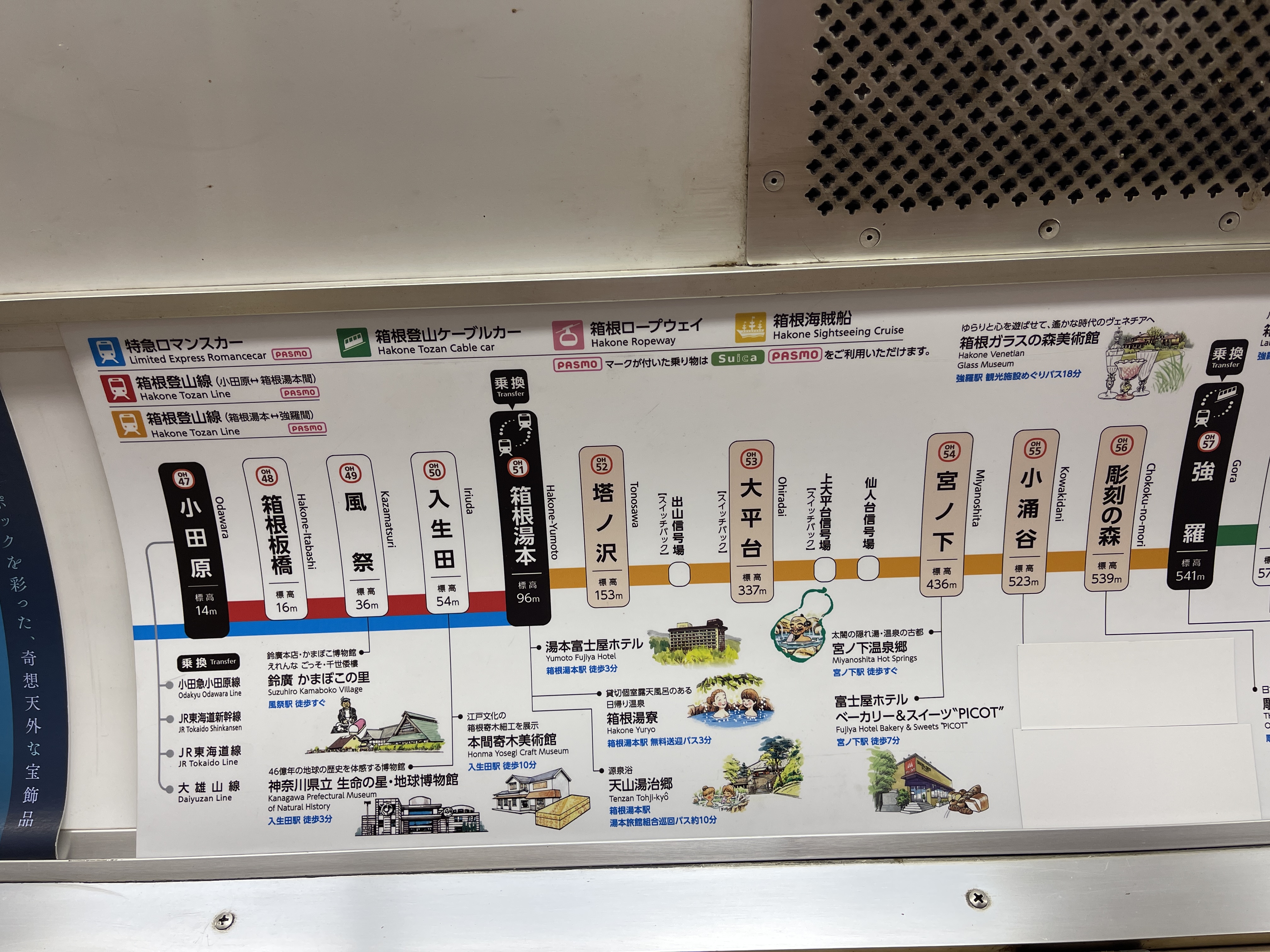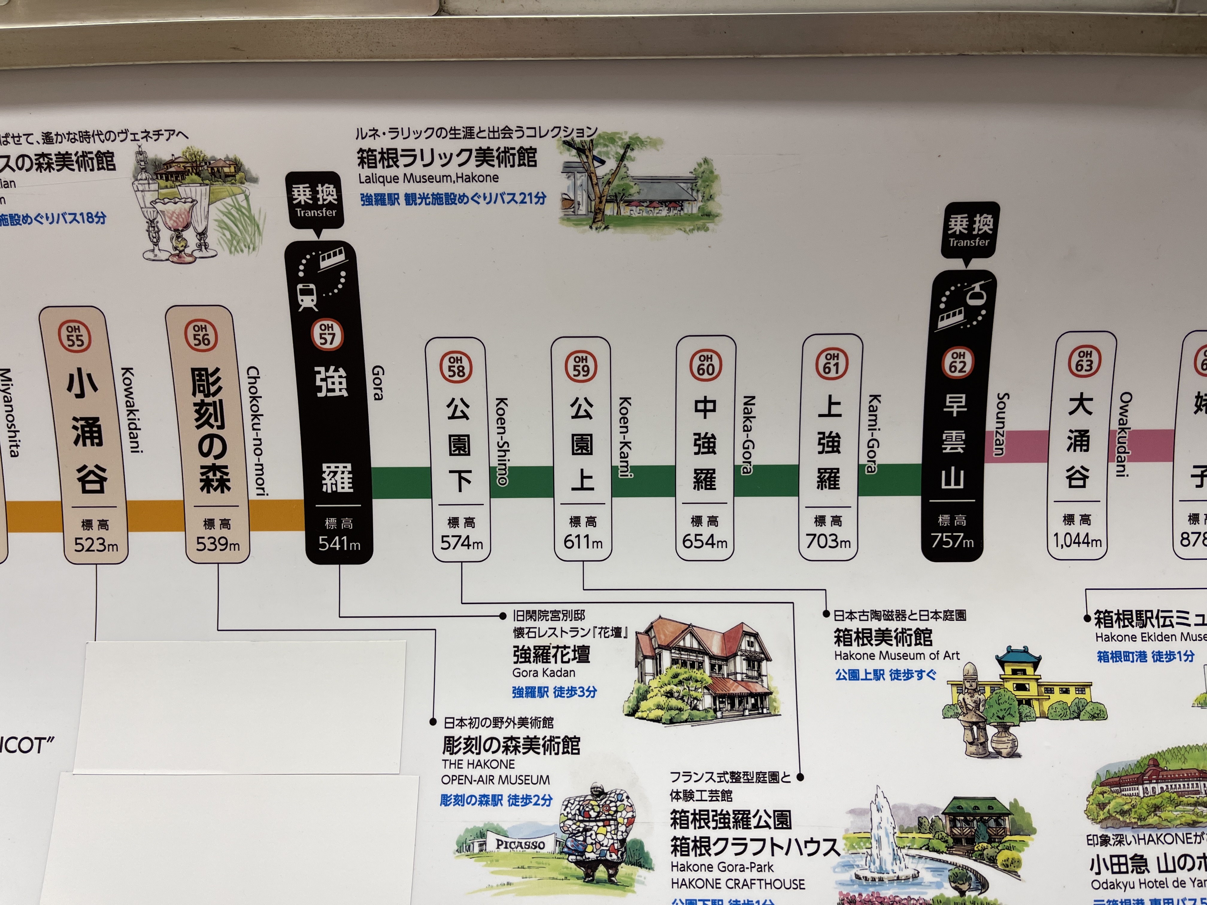 하코네유모토역에서 고라역까지는 지금 타는 열차를 타고 이동하고