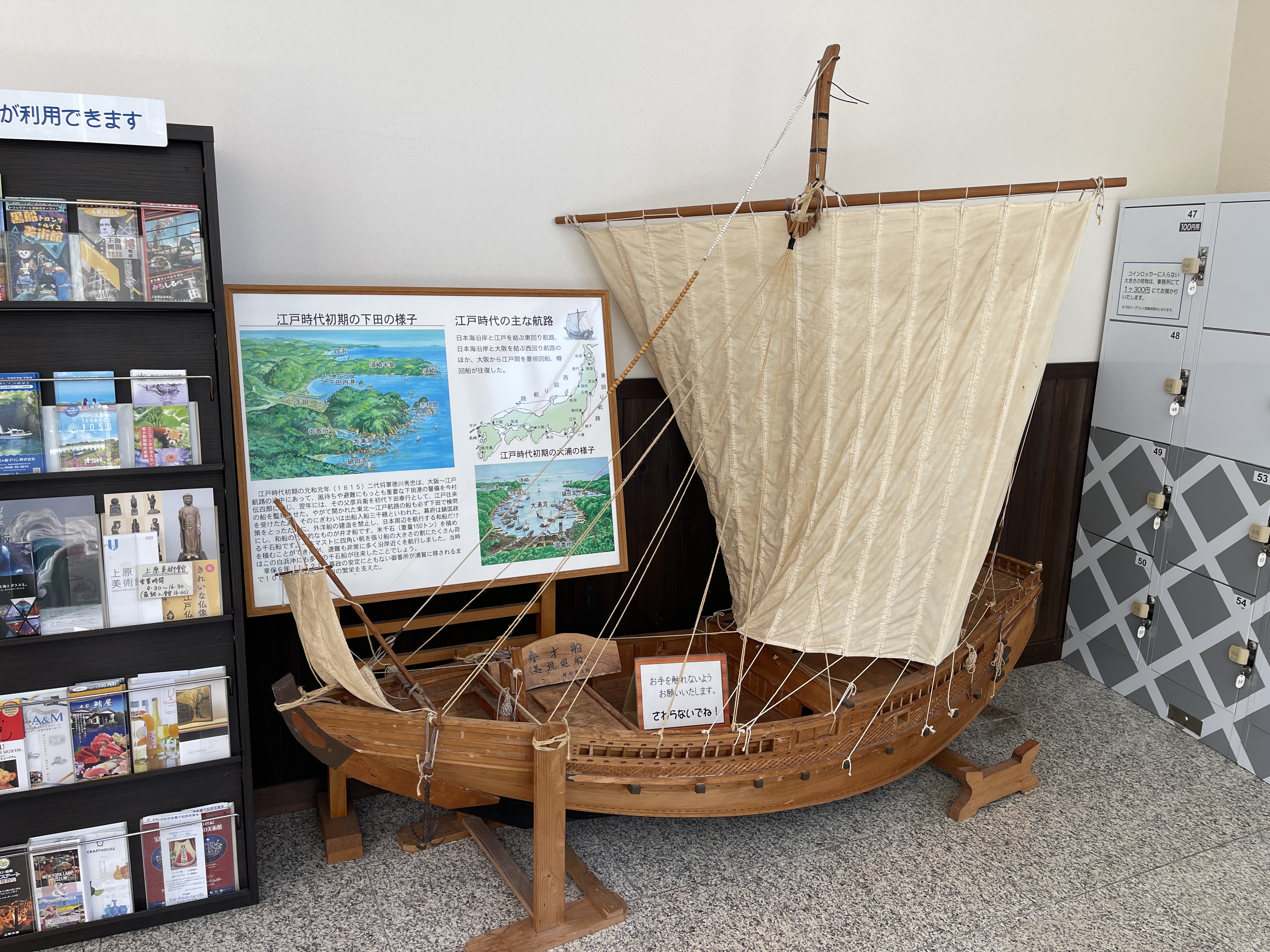 승객 대기 공간에 놓인 에도 시대의 배 모형이라던가