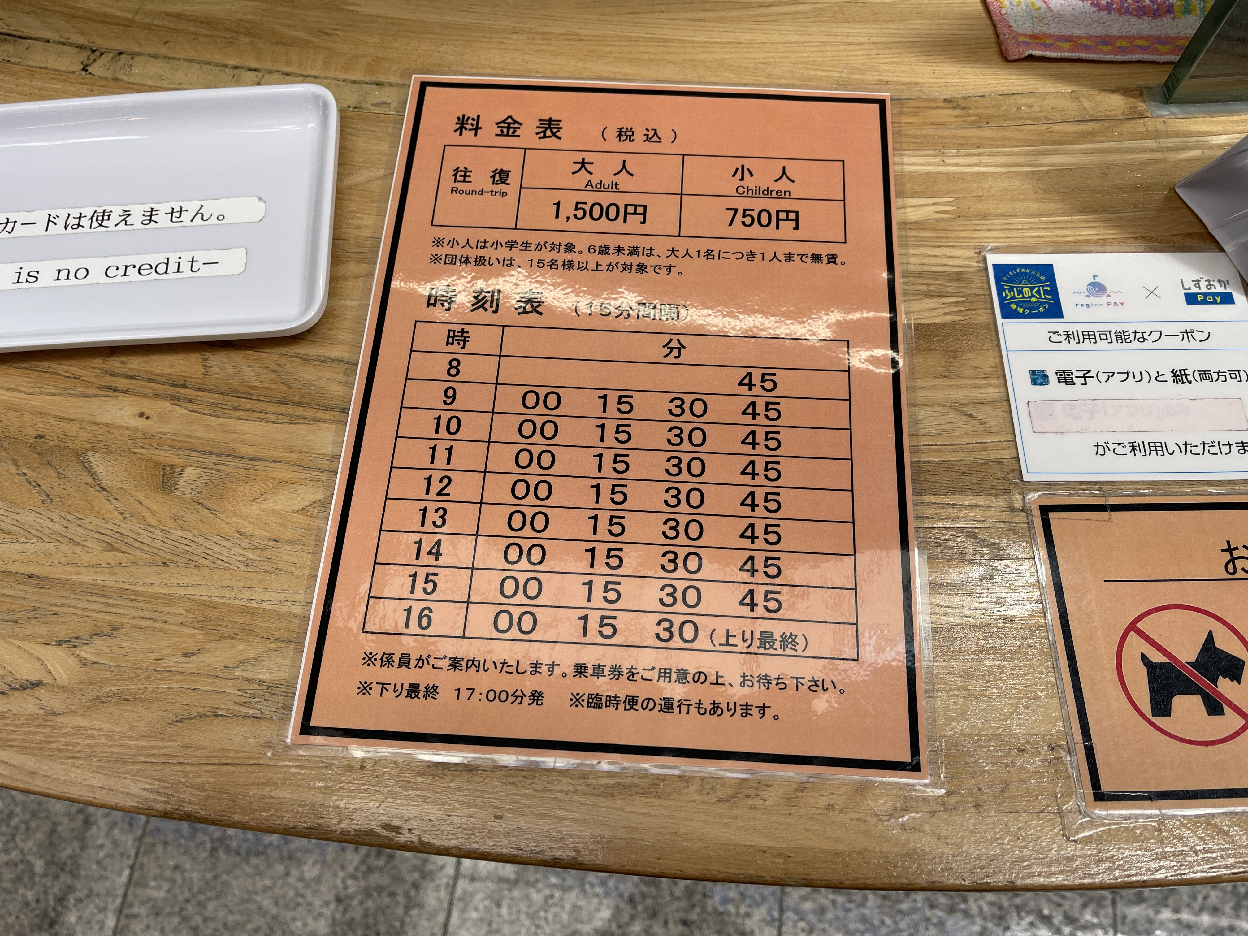왕복 요금 1,500엔을 내고