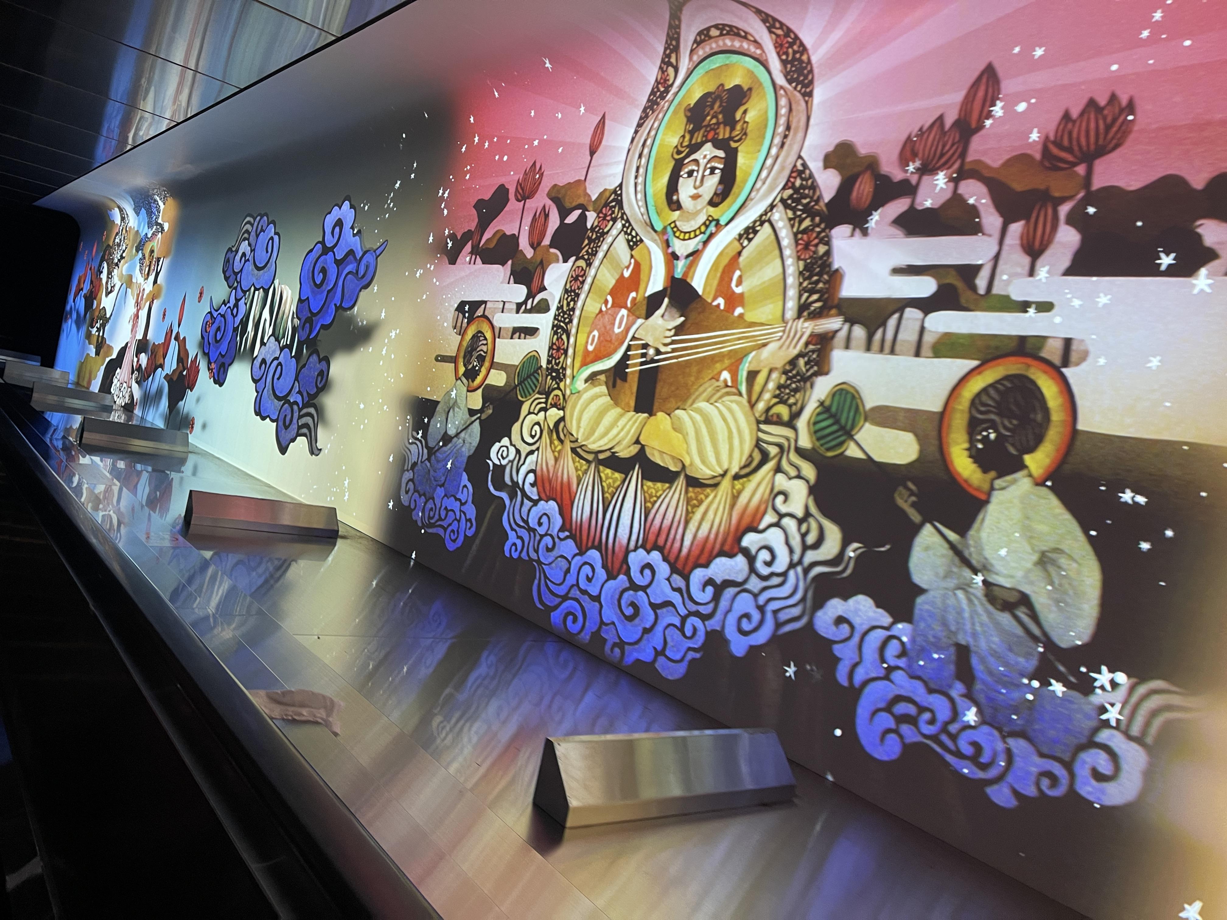 다음 에스컬레이터를 타는 곳까지 걸어갑니다.