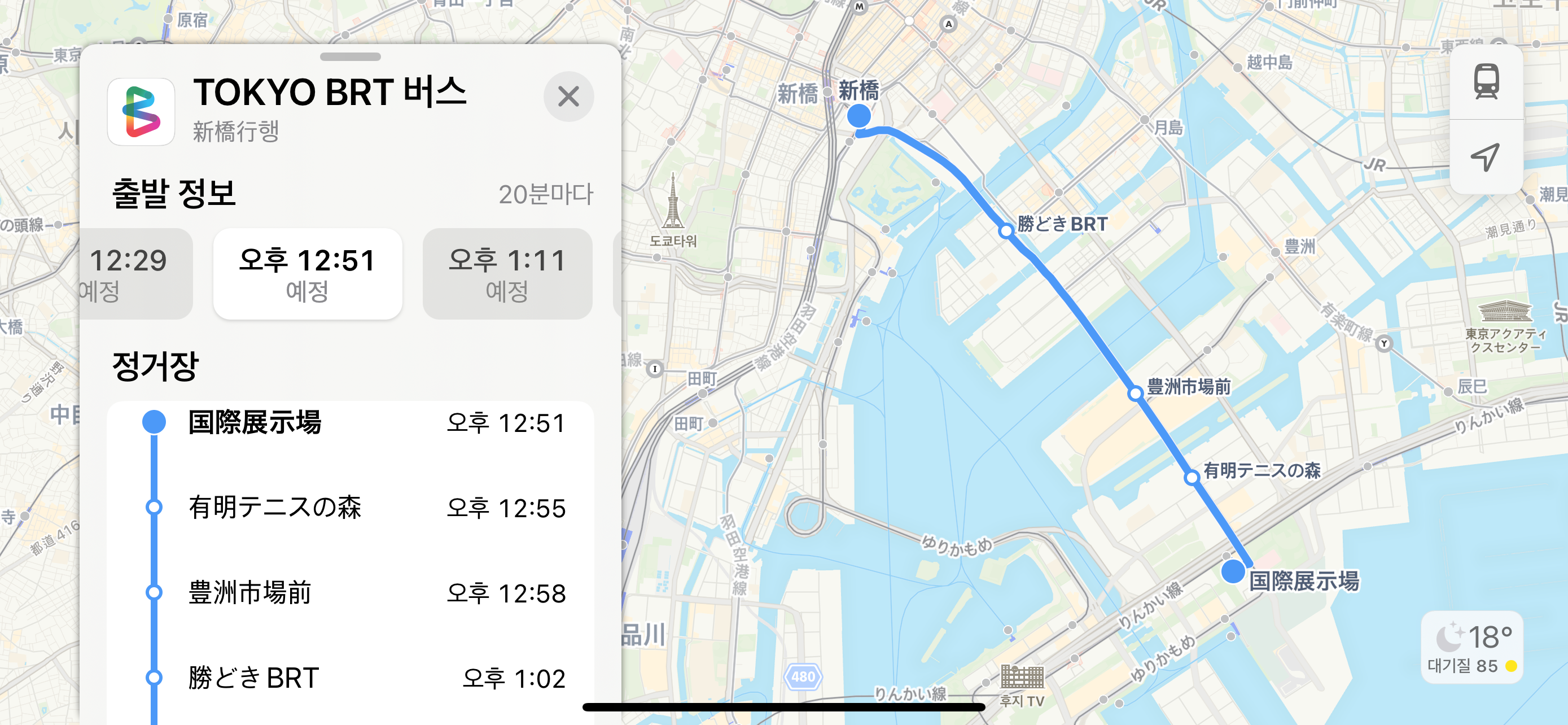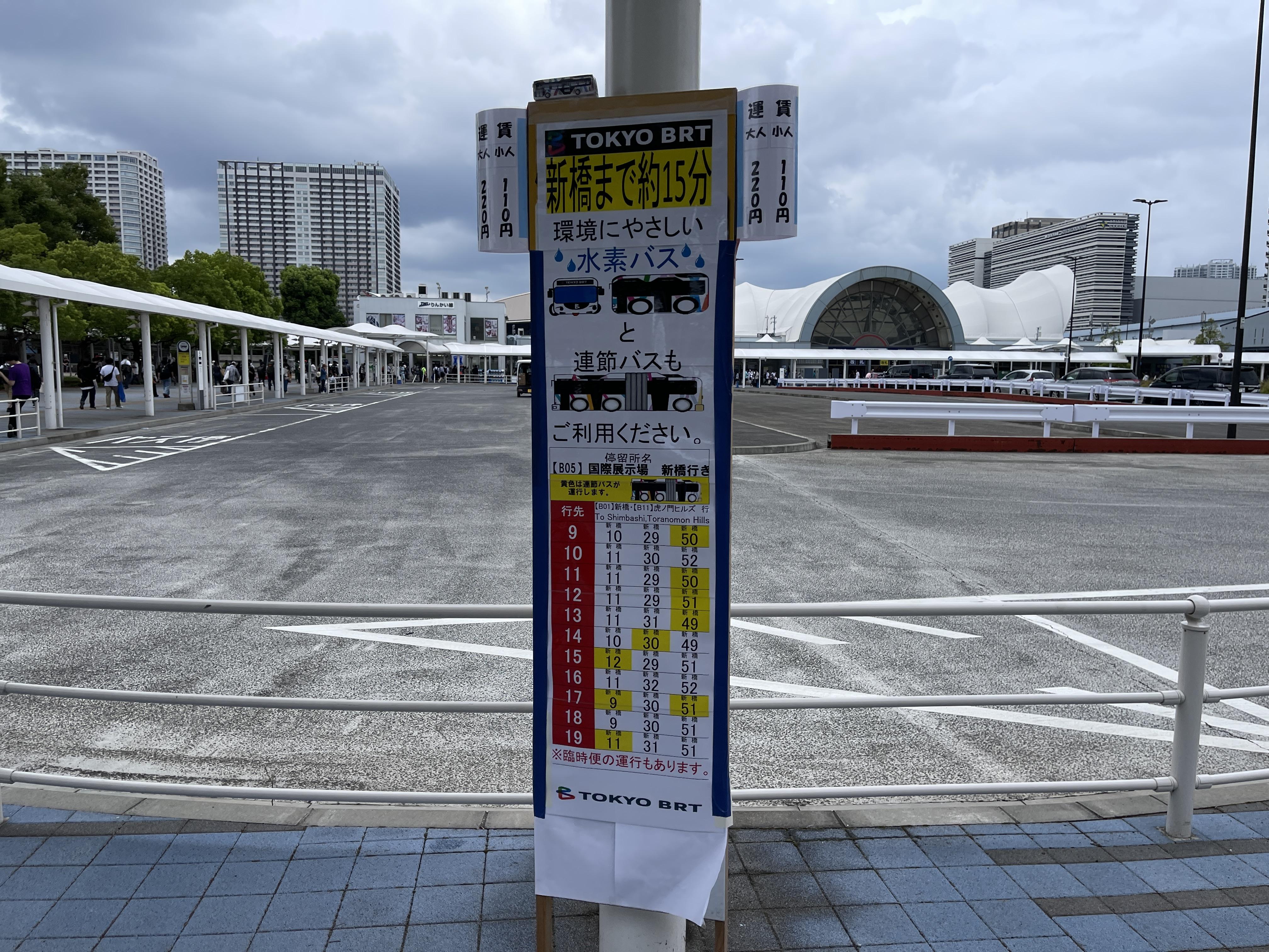 국제전시장에서 신바시역을 잇는 도쿄 BRT를 탈 겁니다.