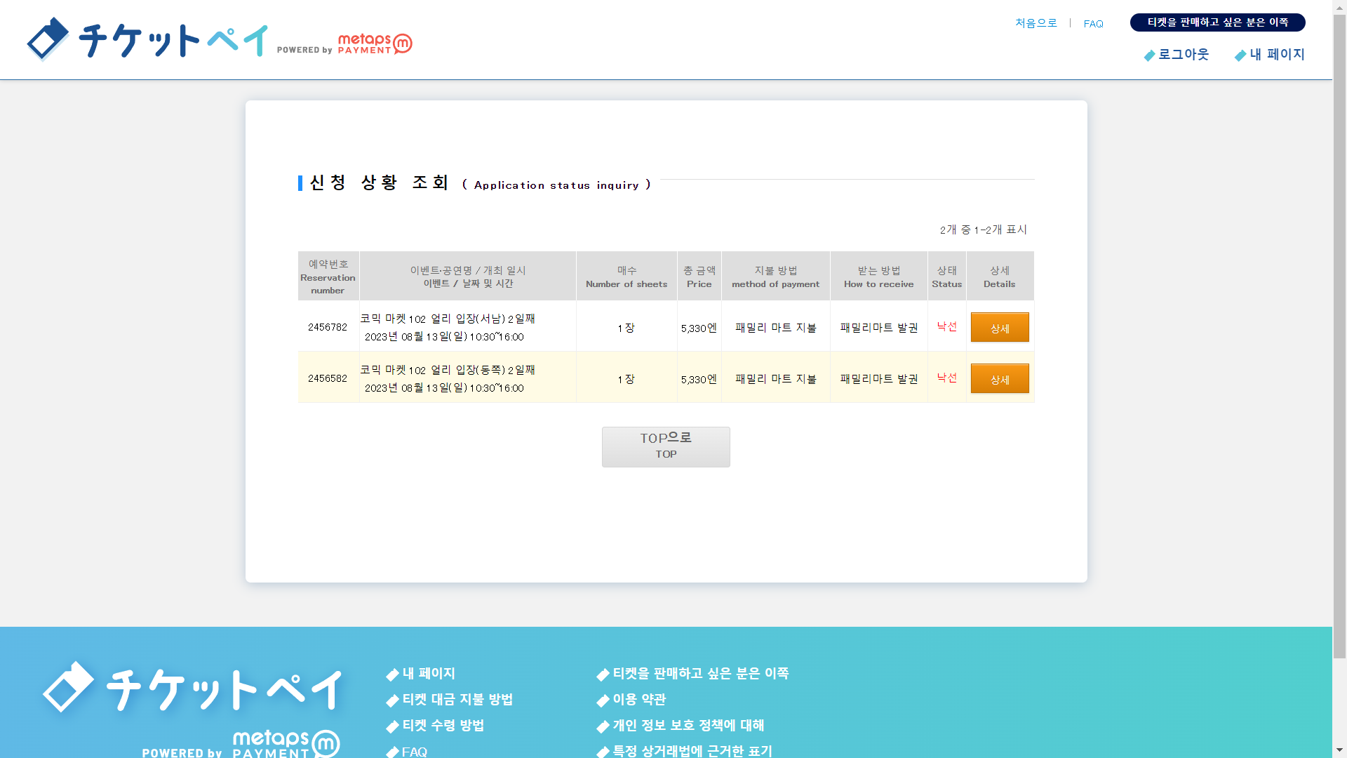 저도 당연히 얼리 입장권을 노리고 동관, 서관 입장권 모두 응모를 했는데