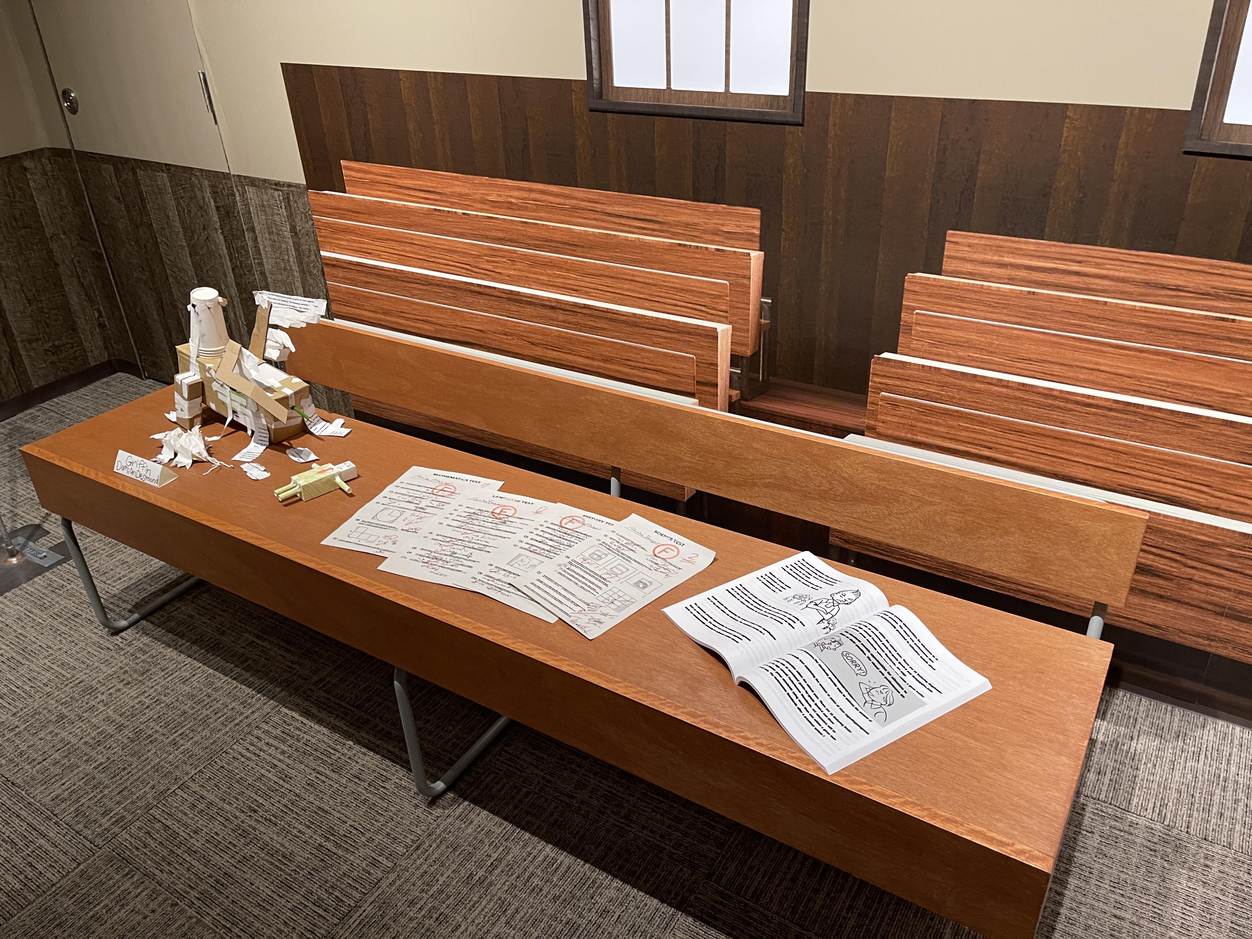 벽에 걸린 다양한 전시물 사이에