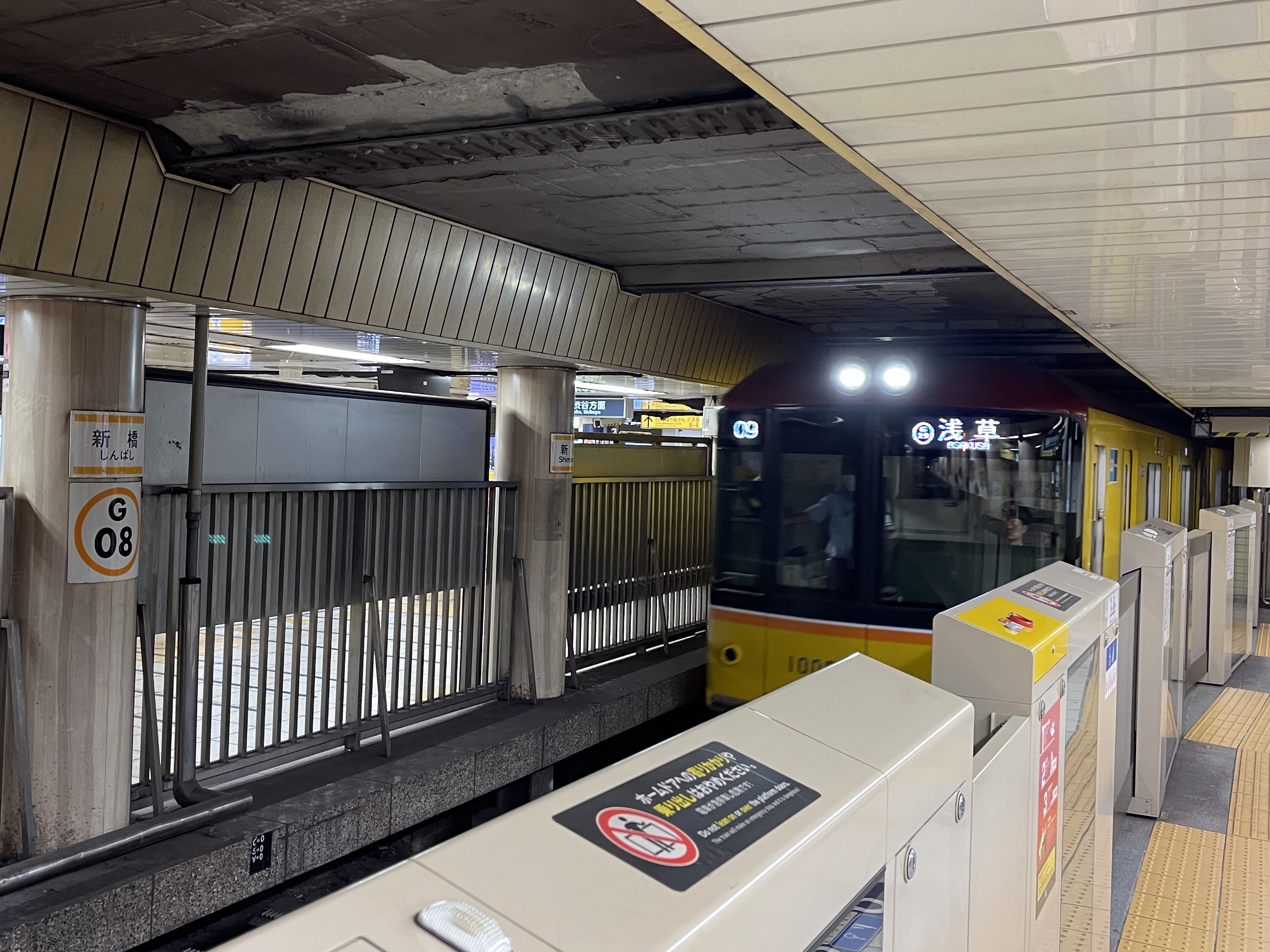 신바시역에서 긴자선 열차를 타고