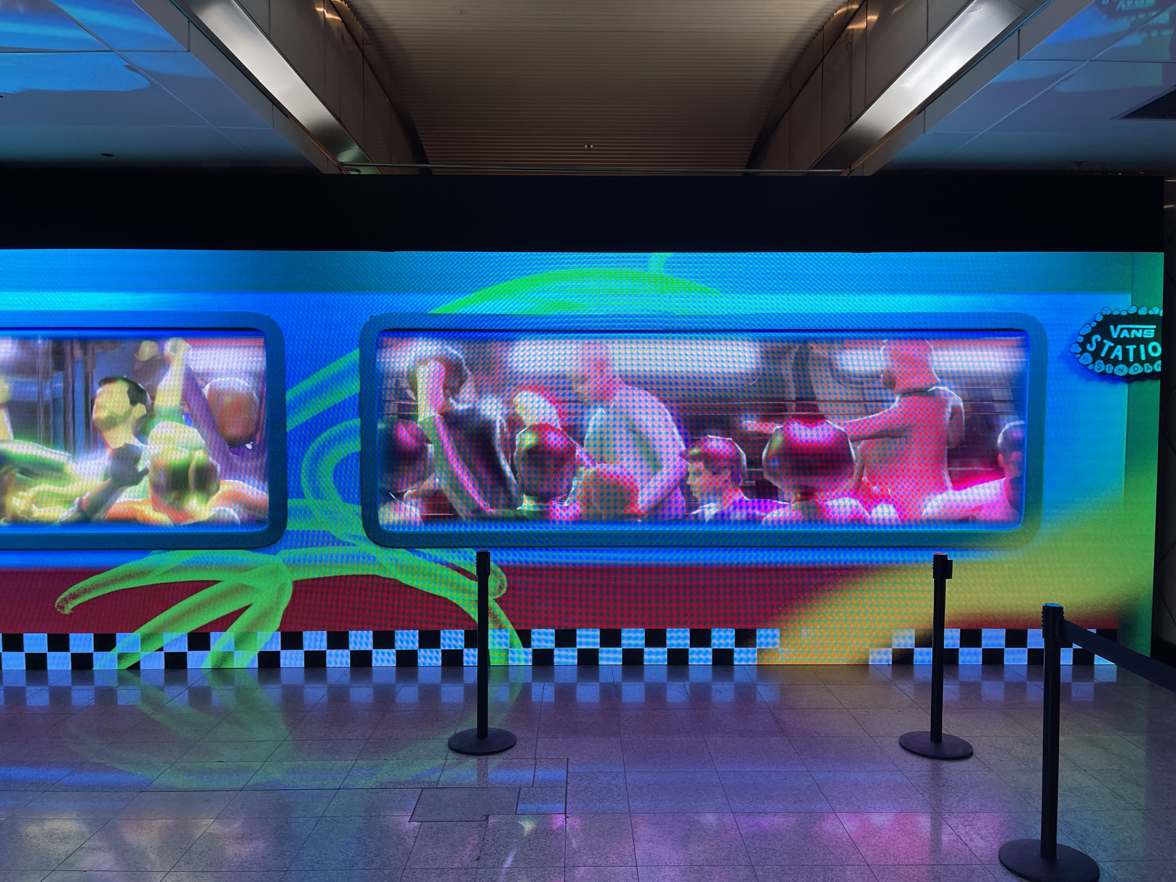 팝업 스토어 바깥에서 정신없이 틀어지는 영상을 보고