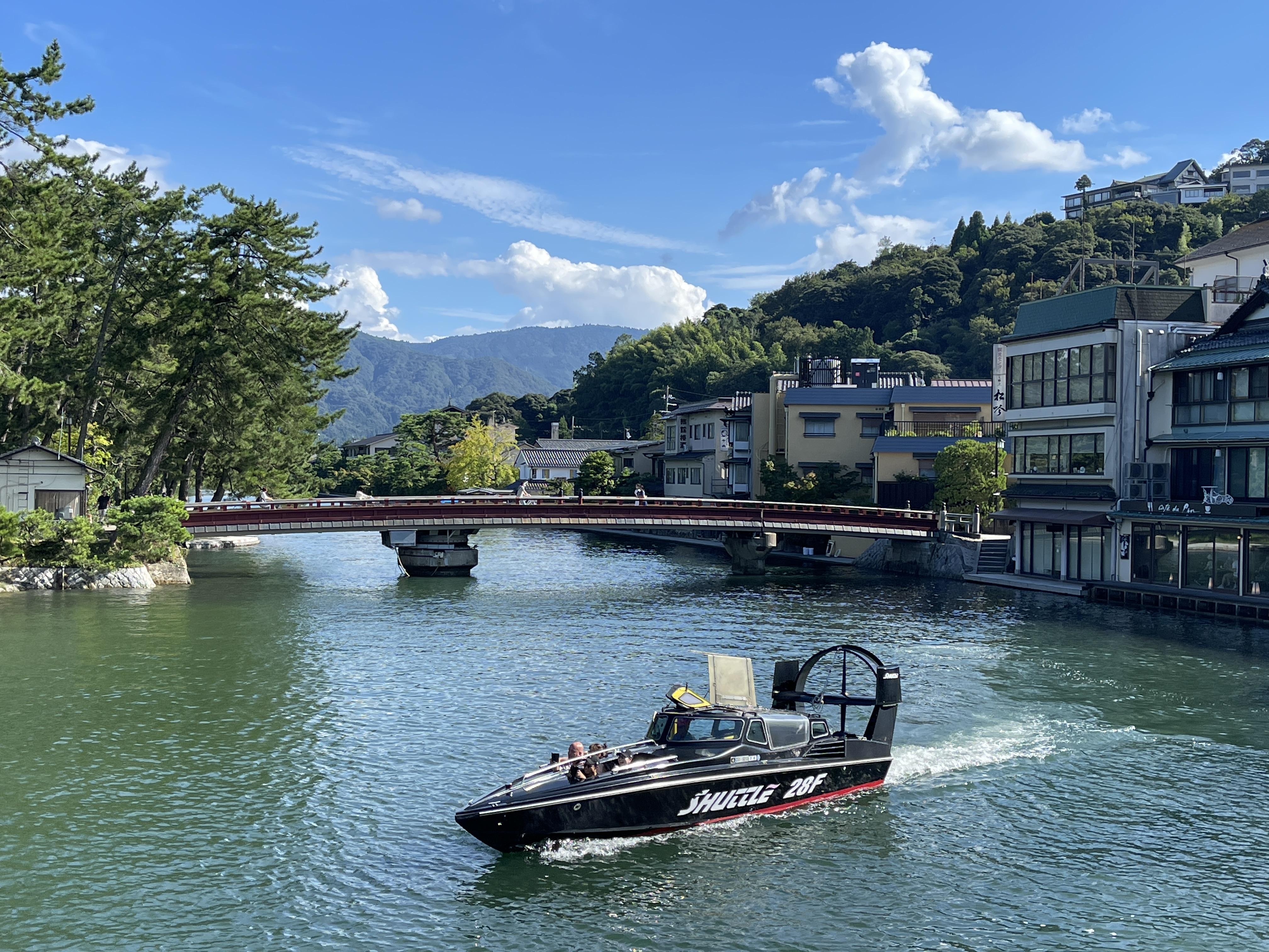 아마노하시다테 잔교에서 바다 건너 이치노미야 잔교까지를 잇는 관광선을 탈 수 있는데