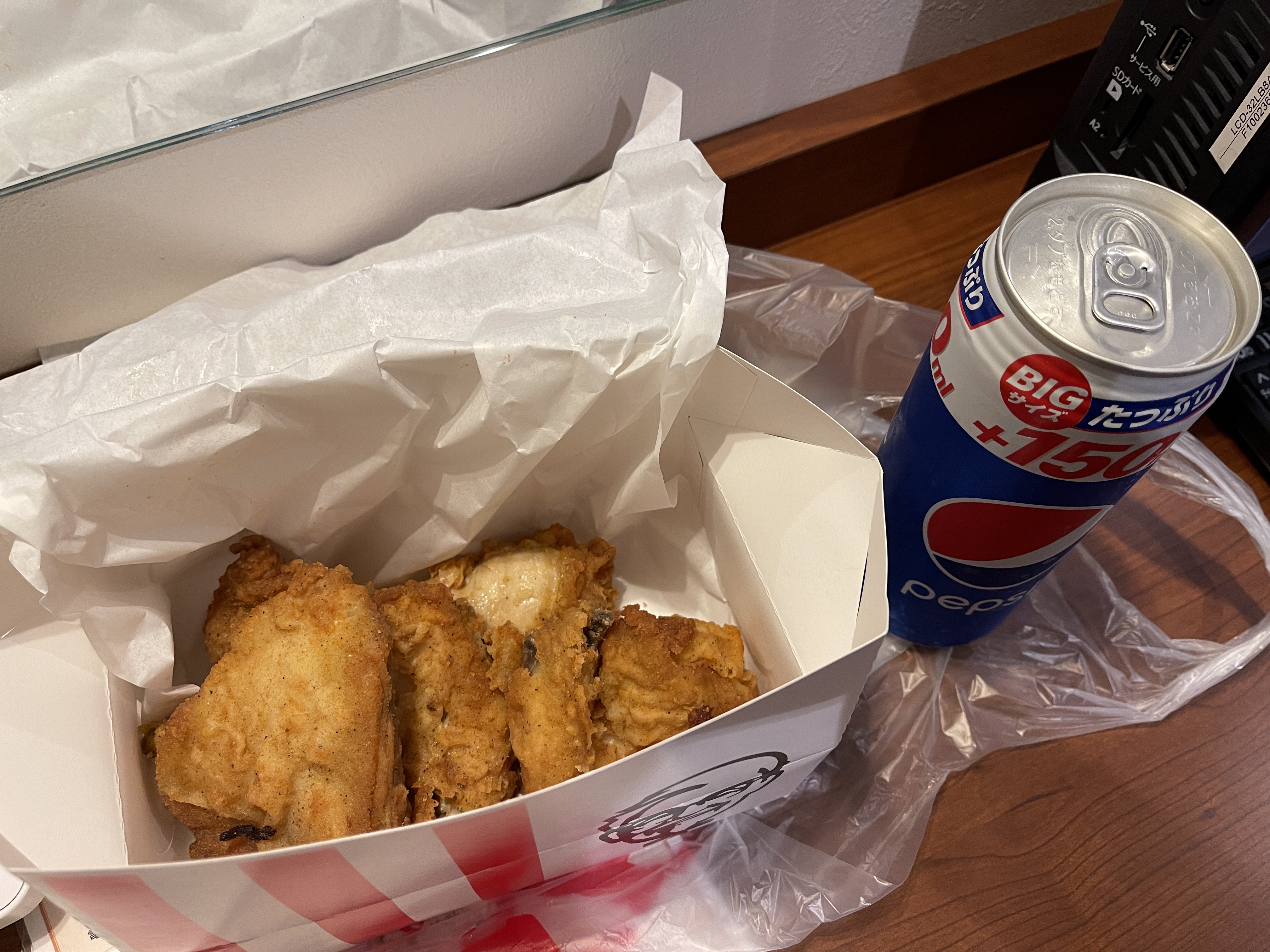 한신이 우승했으니 이제 아까 산 KFC 치킨을 먹을 차례네요.