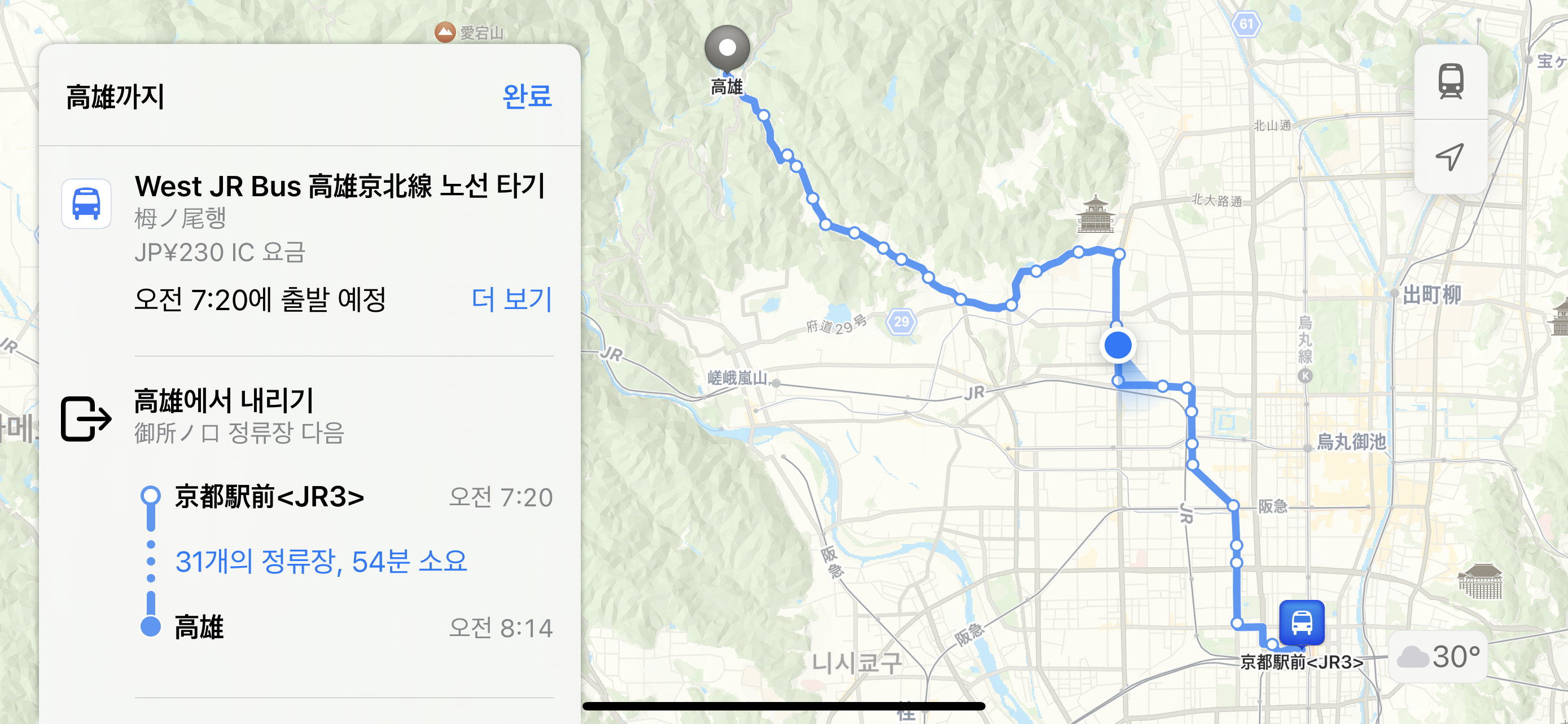ps. 교토 시내에서 타카오로 가는 시내버스는