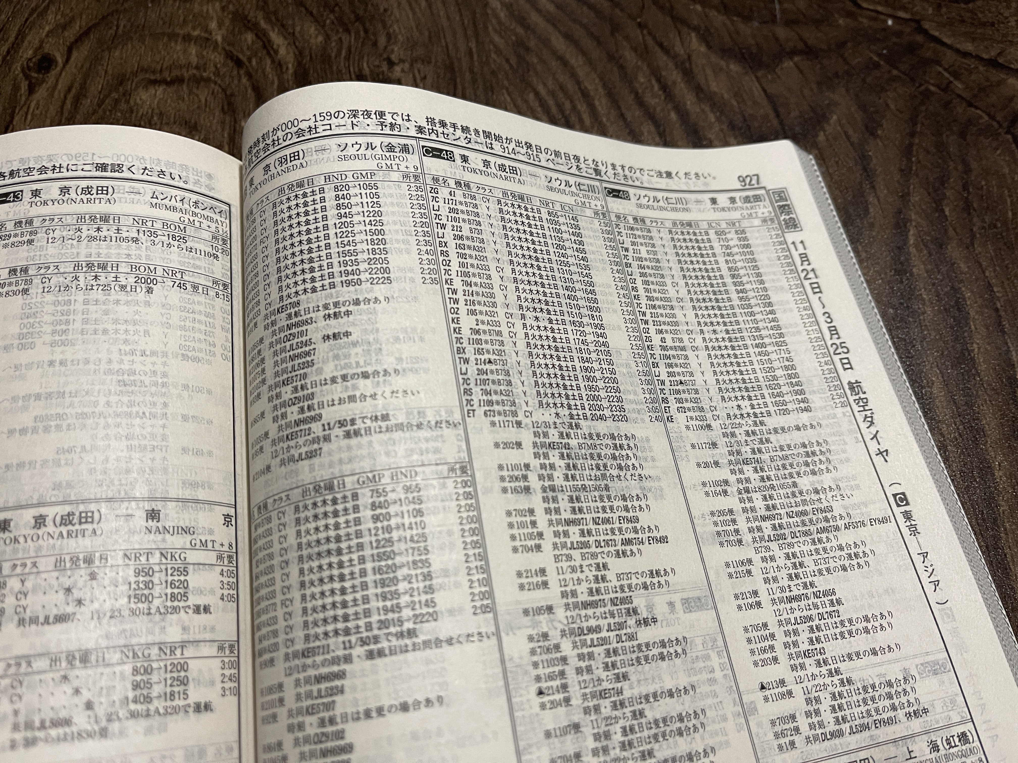 국내선은 물론 국제선 항공편까지 정리한 시각표,