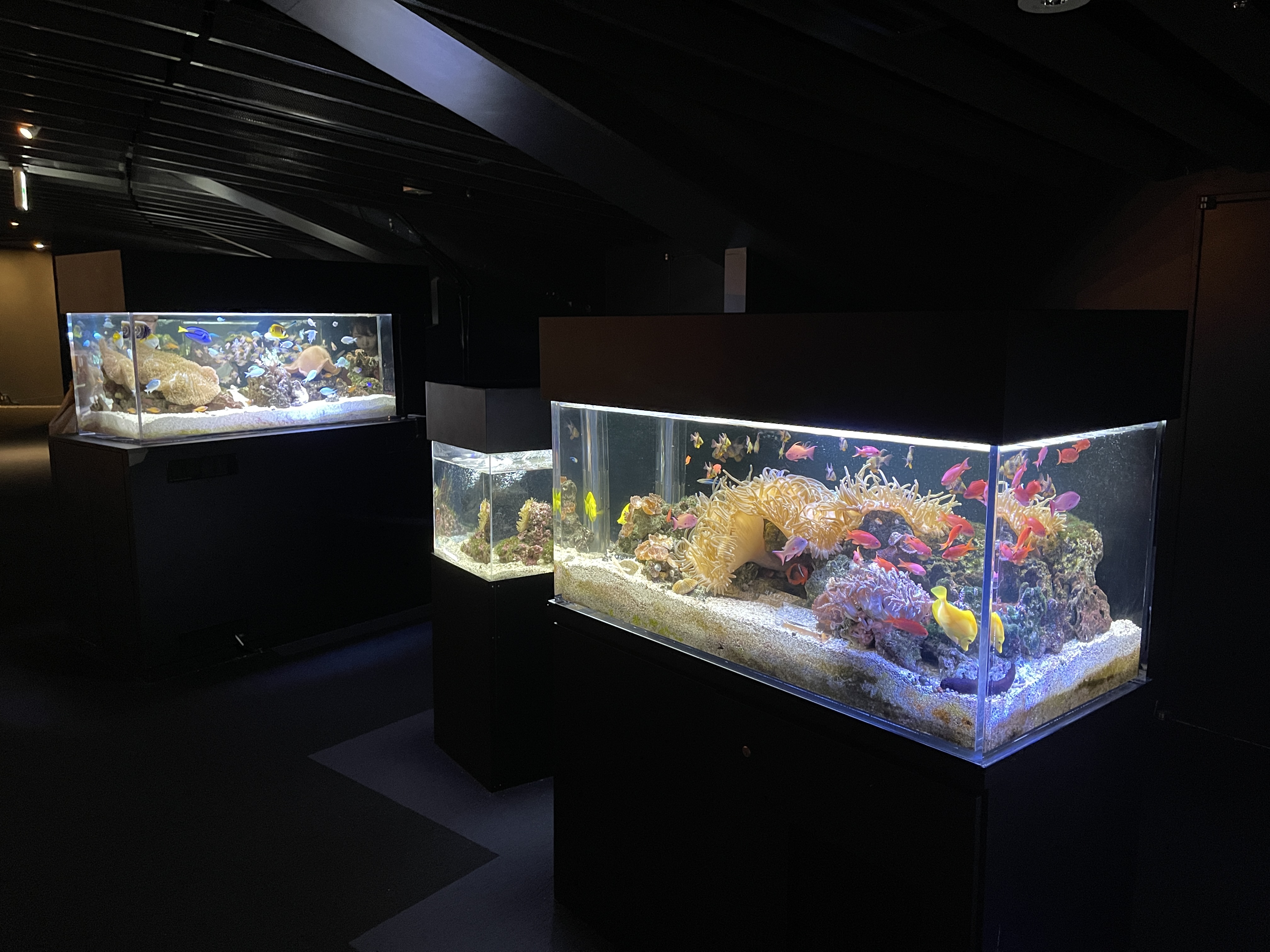 커다란 자연 채광 수조가 눈길을 사로잡고