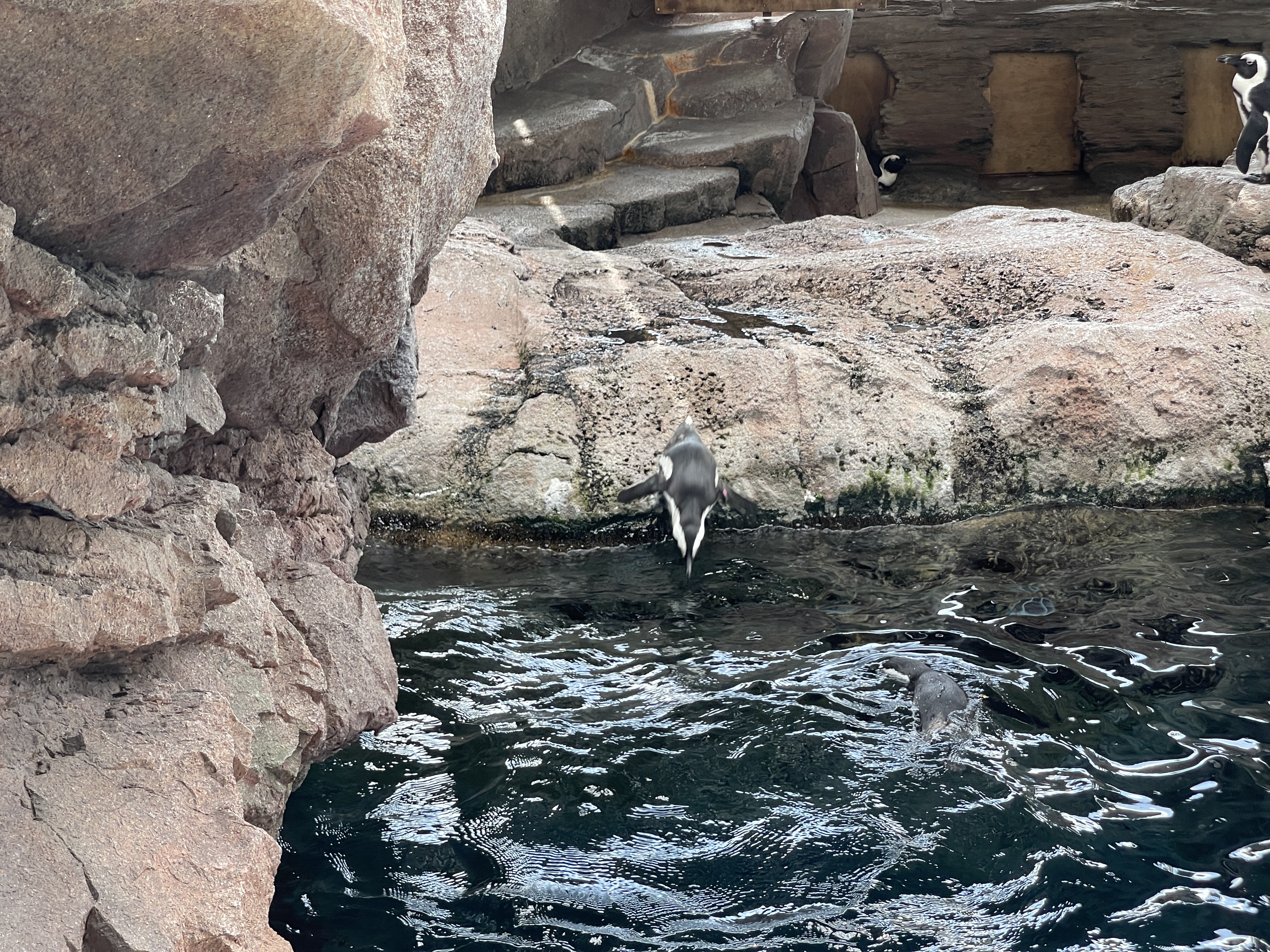 때마침 물속으로 다이빙하는 펭귄을 보고