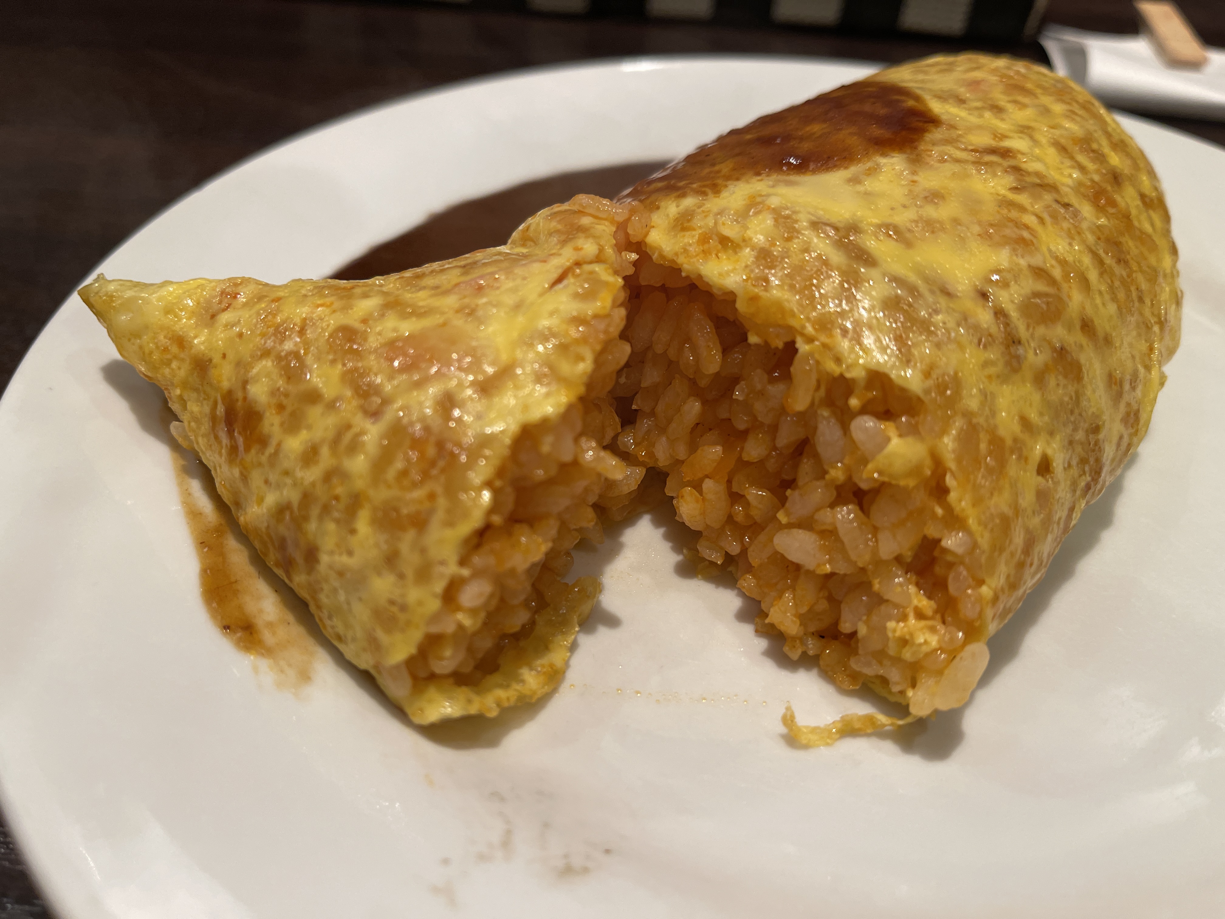 달걀과 밥이 거의 하나가 되게 구우면서 오믈렛 모양을 잡은 것을 보니 상당히 공이 많이 들어갔다는 것이 느껴지네요.