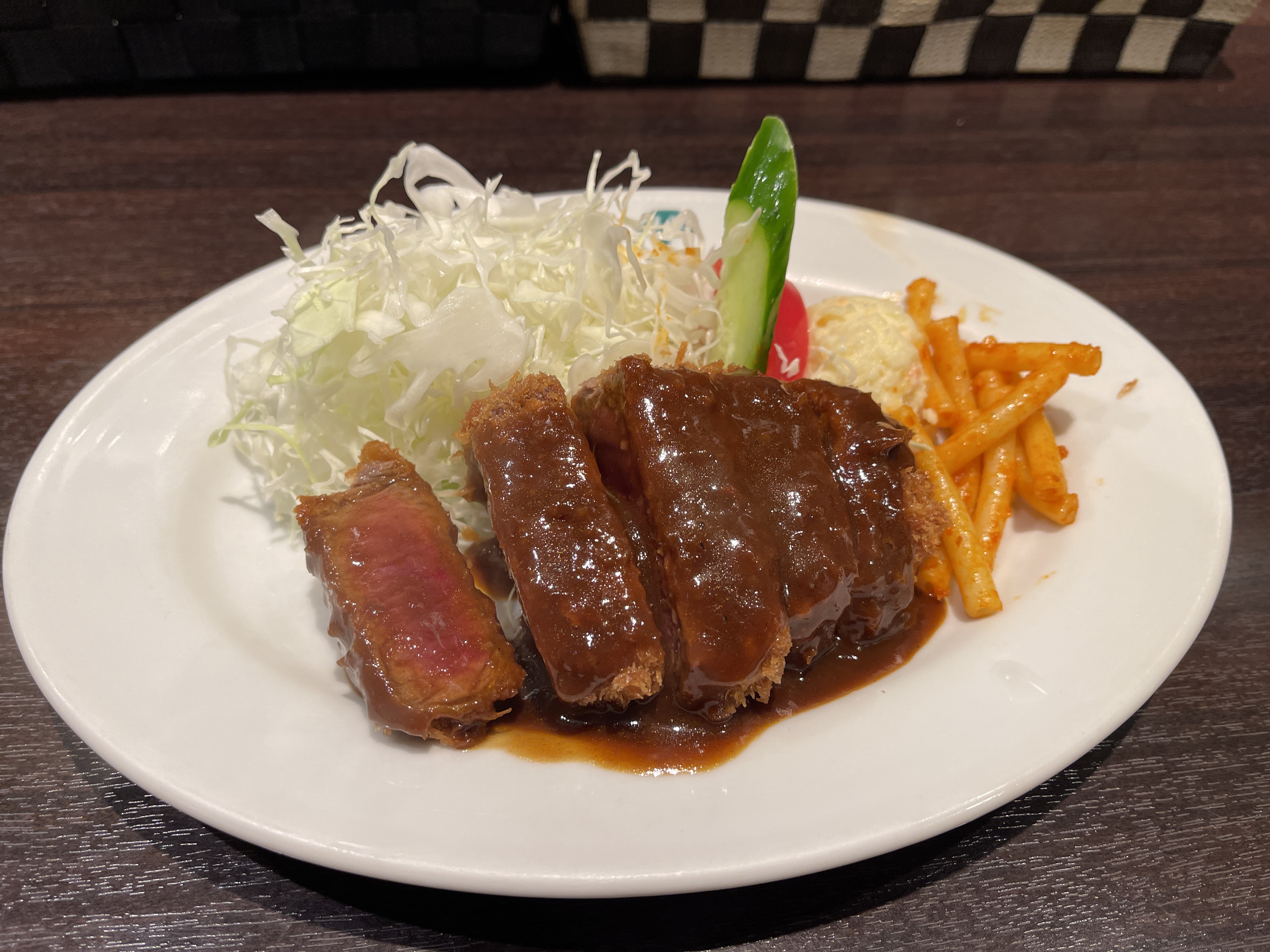 헤레 비프 커틀릿(ヘレビーフカツレツ) 100g과 오므라이스(オムライス)를 주문합니다.