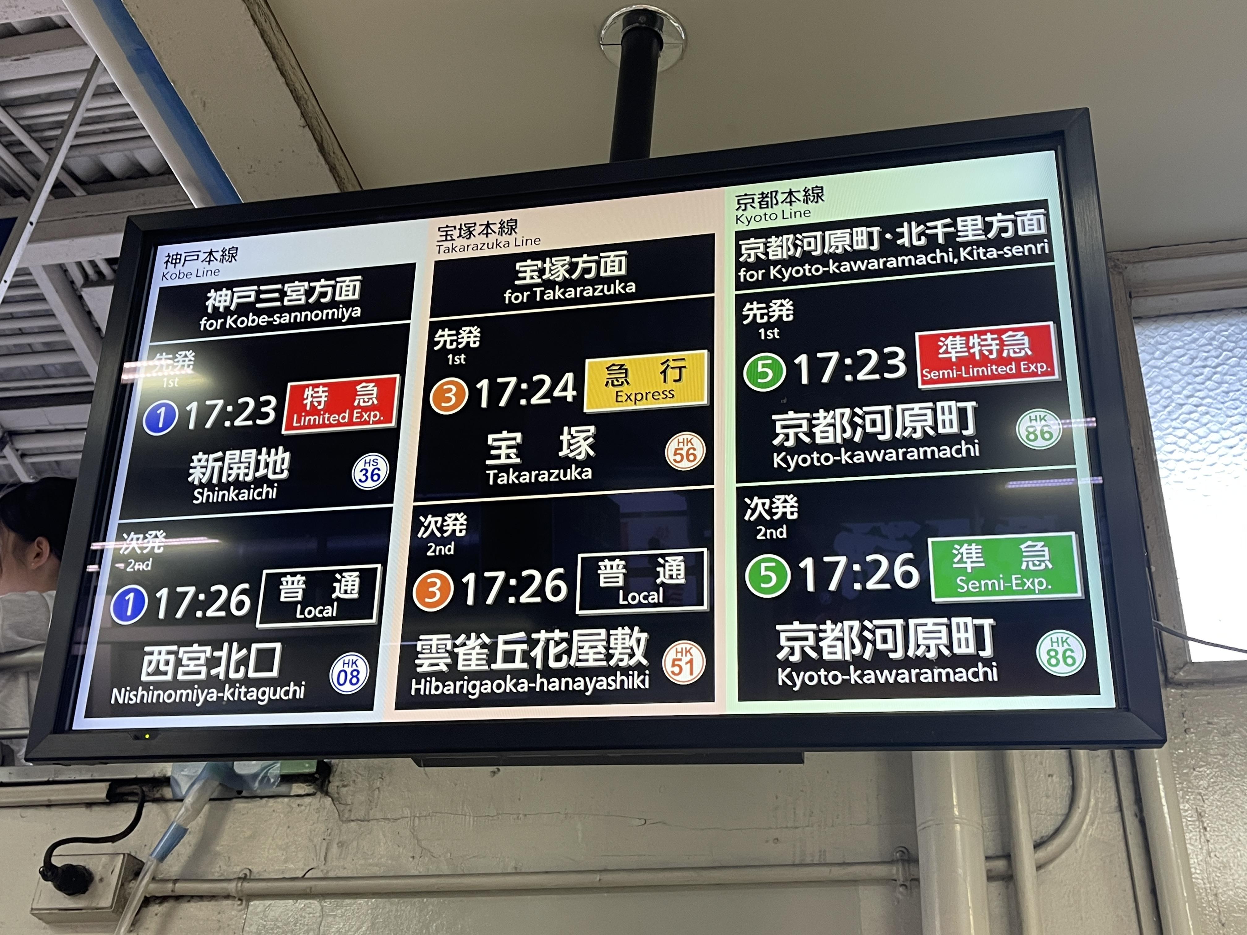 한큐 쥬소역에서 코베선 특급을 탈지 고민을 해봅니다.