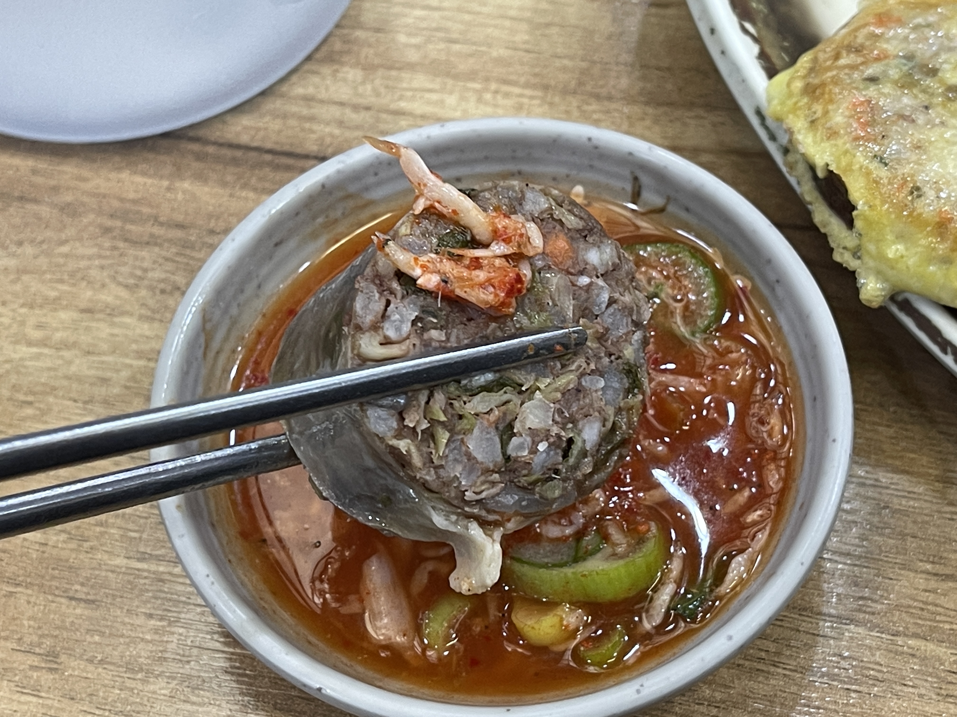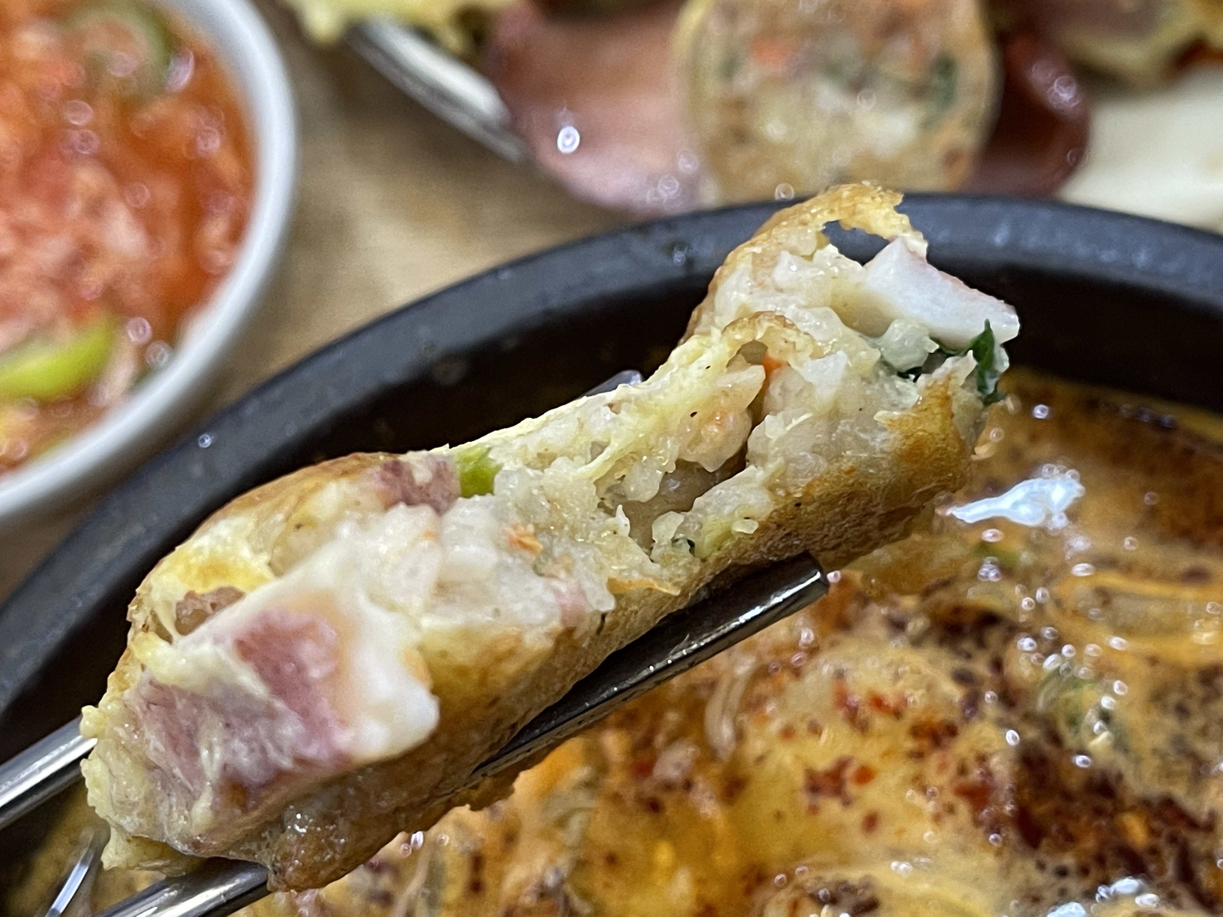겉을 감싼 쫄깃한 오징어가 순대소와 잘 어우러지고