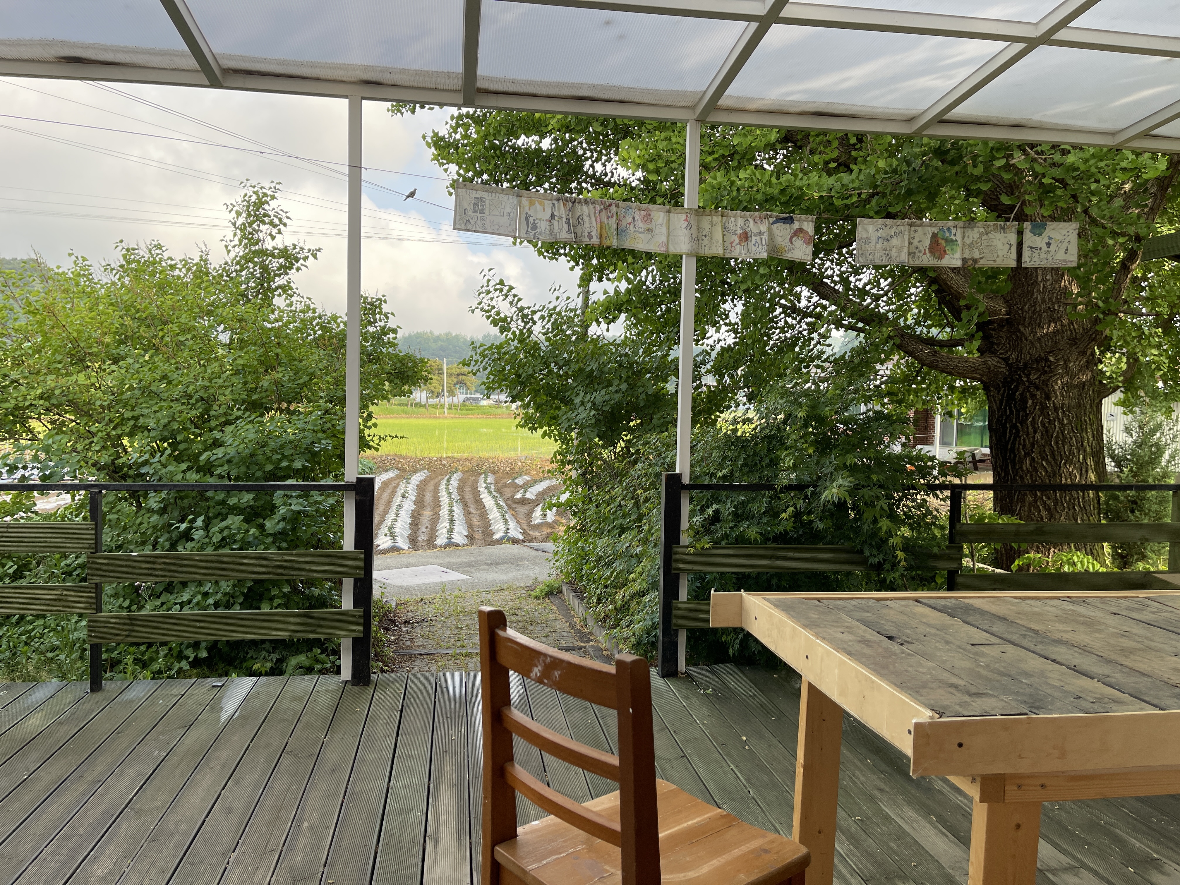 역사 뒤편 테라스에 잠시 멍하니 앉아있으려니 눈앞 시골 풍경이 참 시선을 끄네요.
