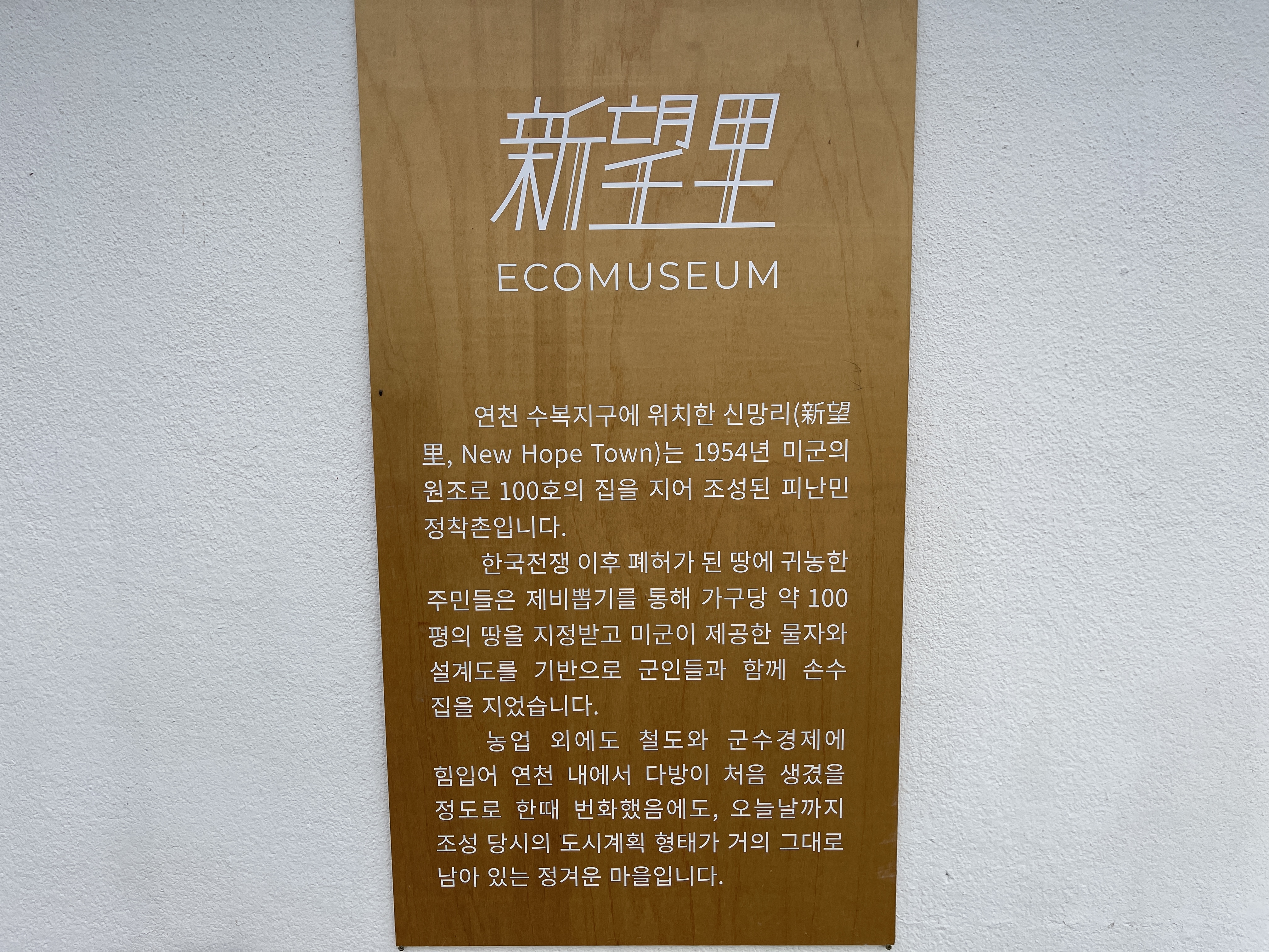 New Hope Town을 한자로 바꿔 부른 이름인 신망리가 마을의 이름이 되었고