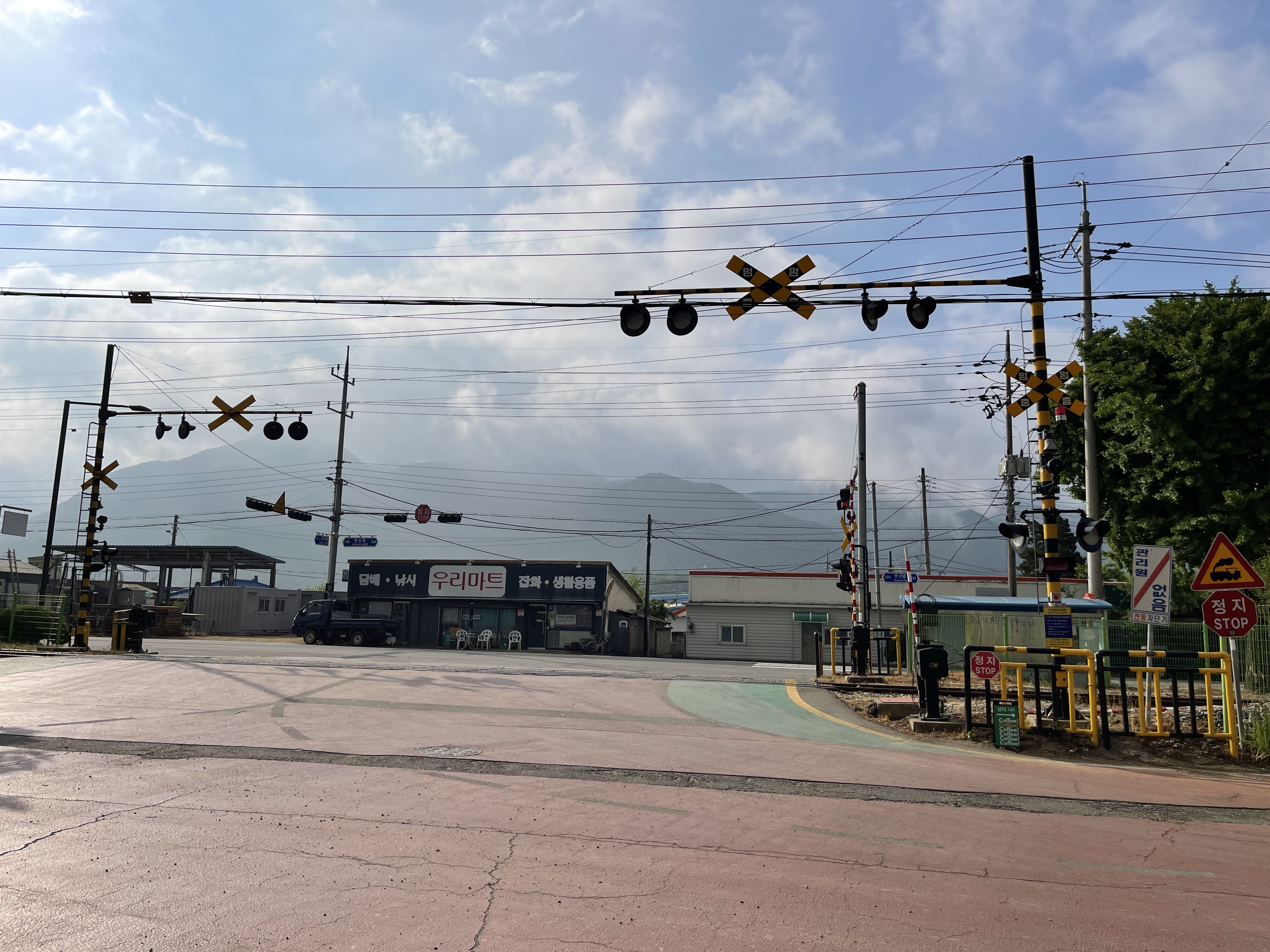 철도 건널목 주변을 서성이며