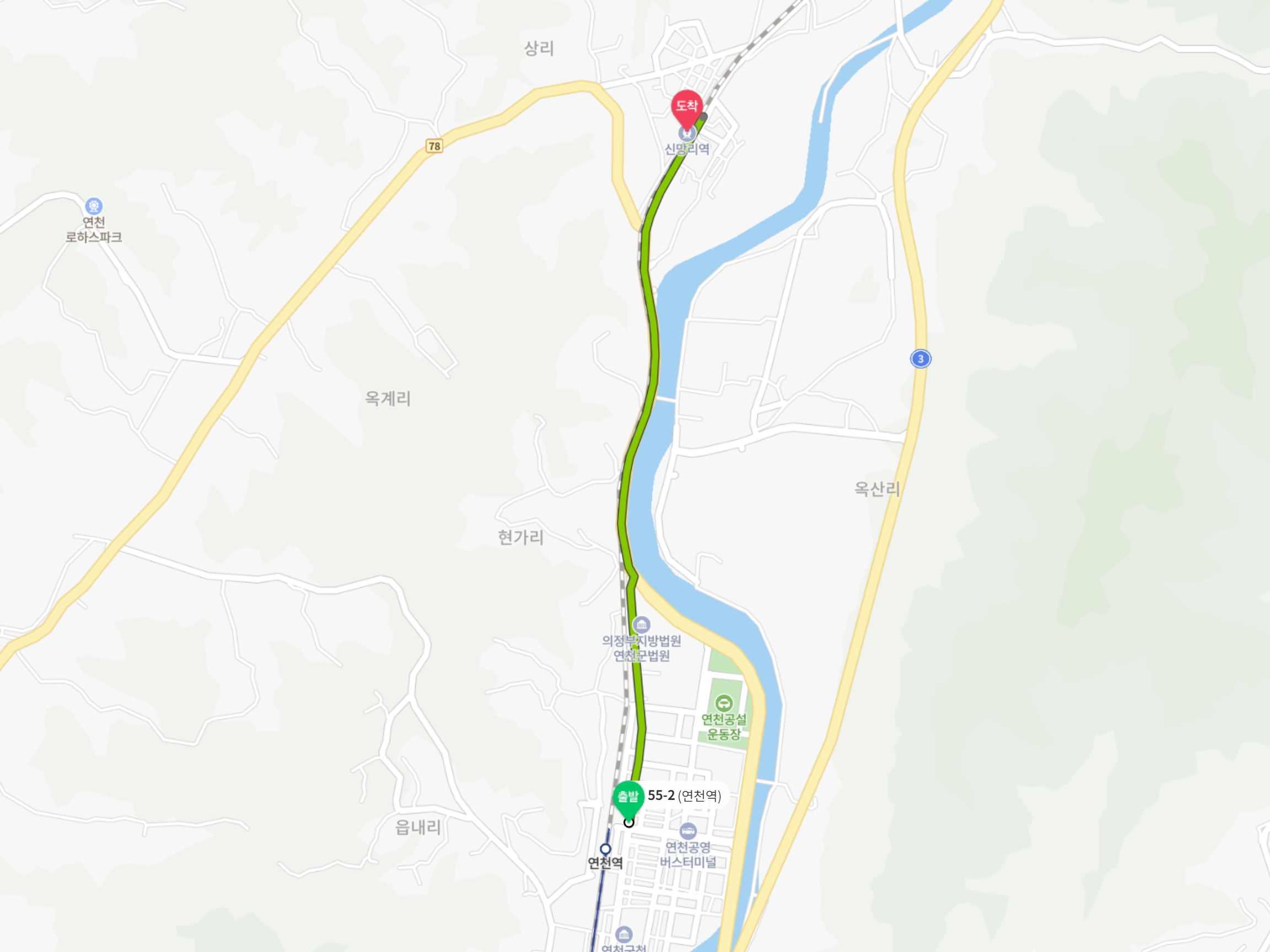 | ● 승차 노선: 동두천 55-2번 ● 승차 구간: 연천역 - 신망리역 ● 이동 거리: 4.1km ● 버스 요금: 0원 |