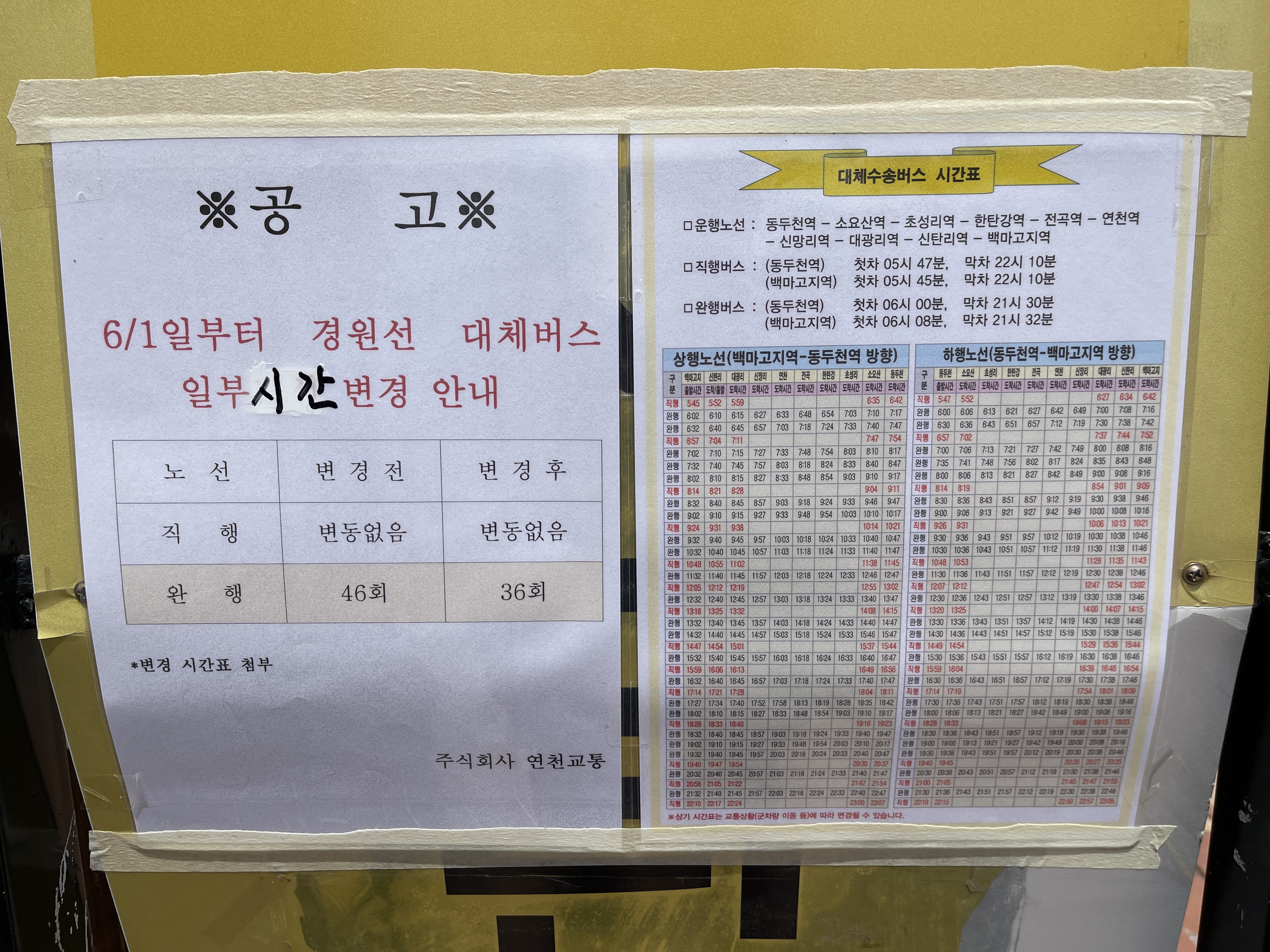 통근열차를 대신해서 다니게 된 경원선 대체운송버스입니다.