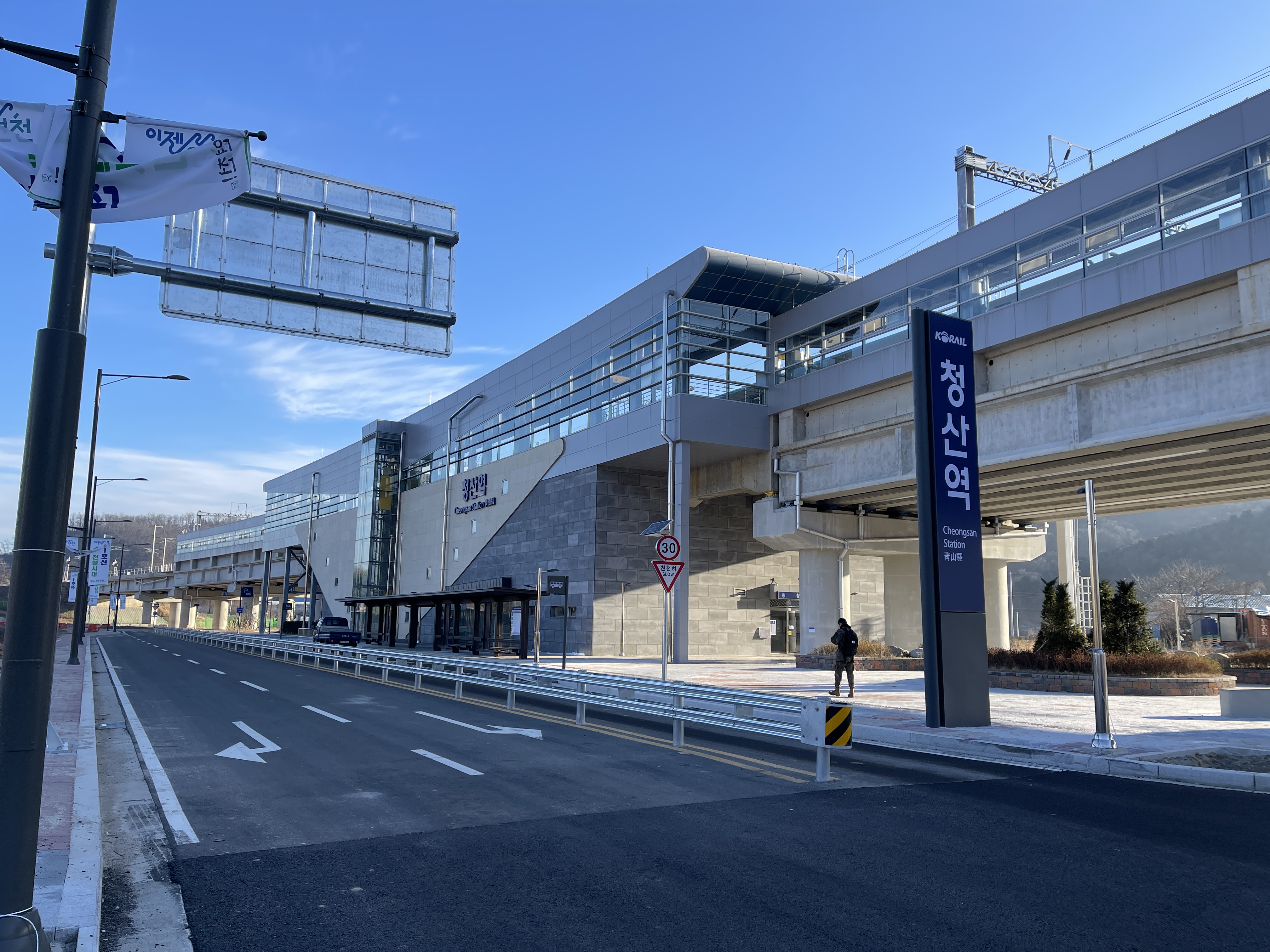 일단 청산역 밖으로 나와 멀끔하게 지어놓은 다리를 보니 떠오르는 것이 있어