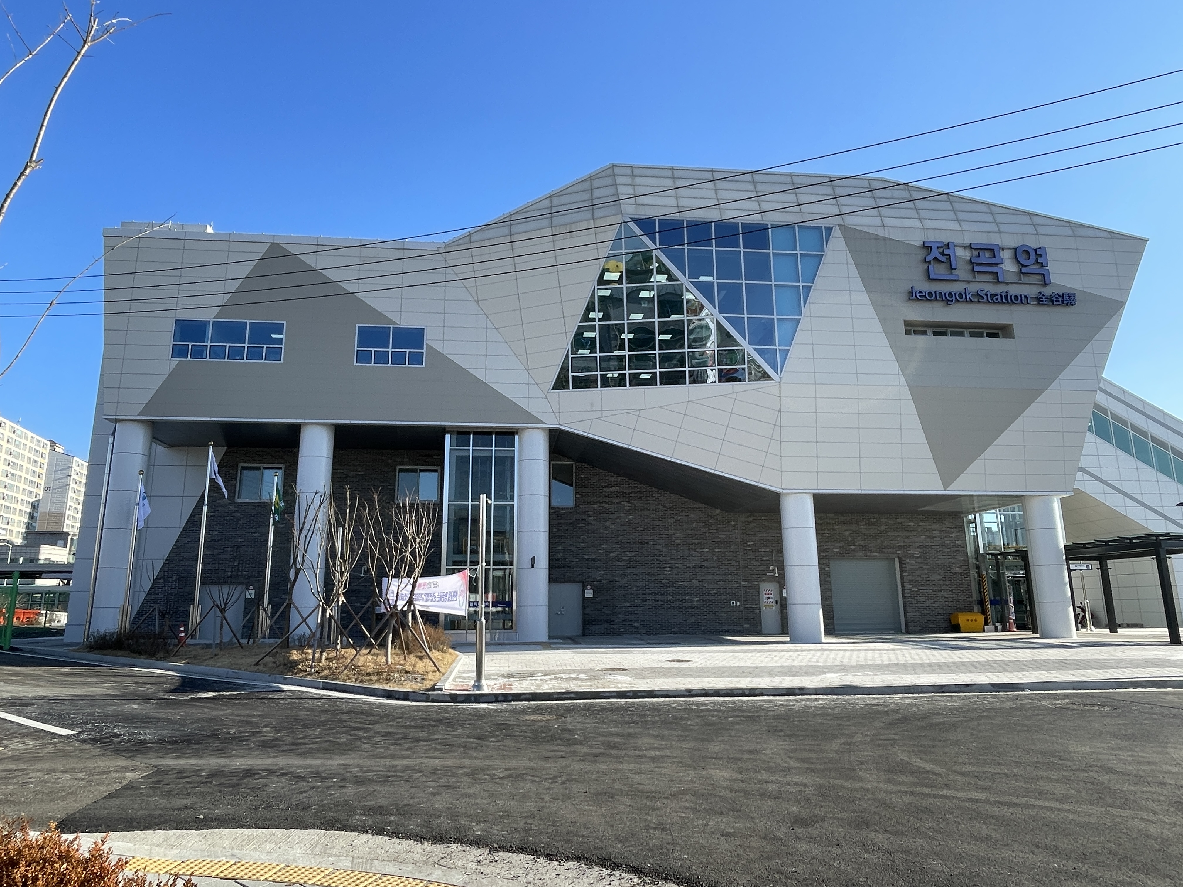 주먹도끼를 형상화했다는 인상적인 외관이 특징인 전곡역.