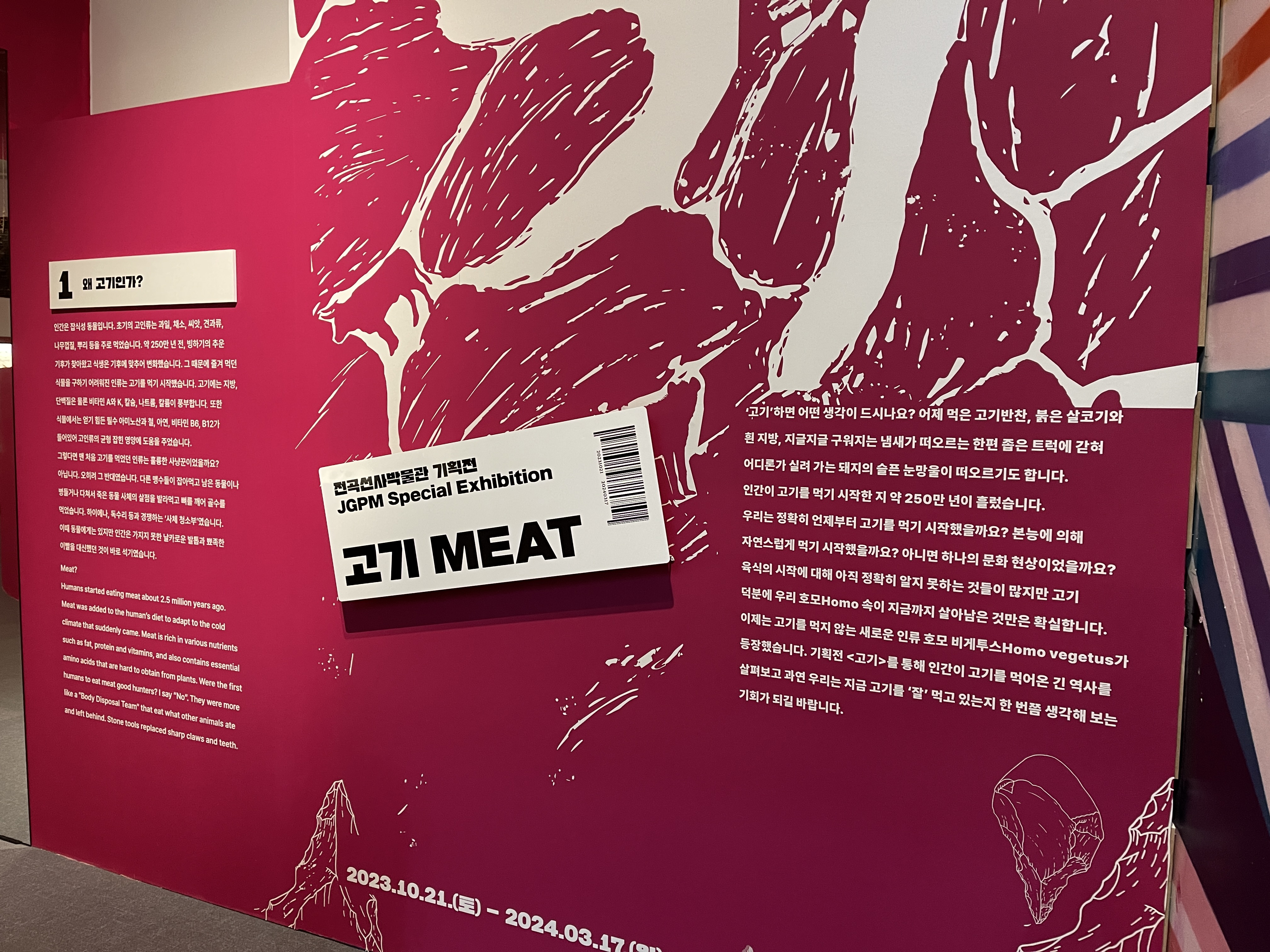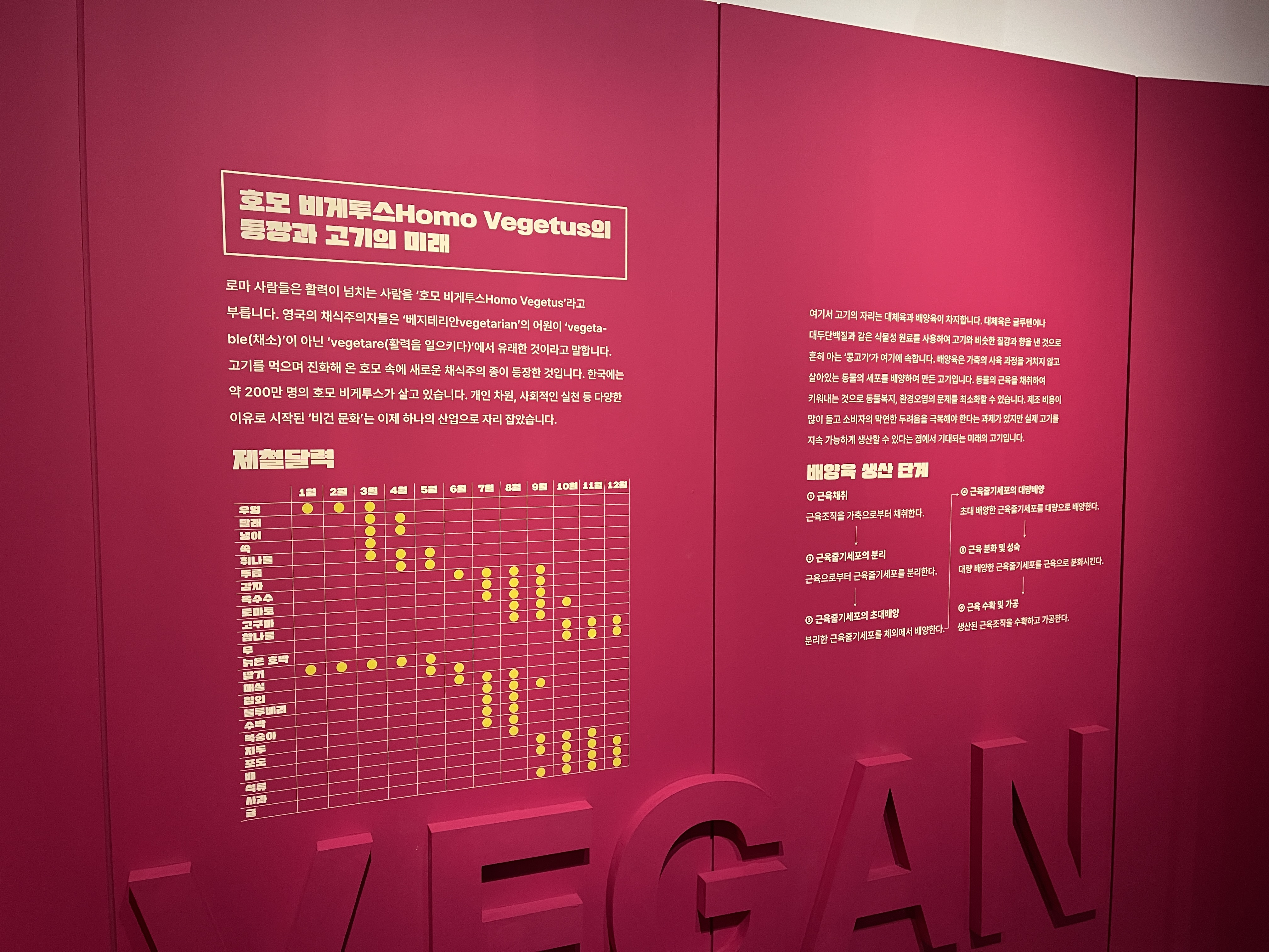 동물복지나 환경문제, 배양육과 같은 대체육 등을 소개하며 전시를 마무리하네요.
