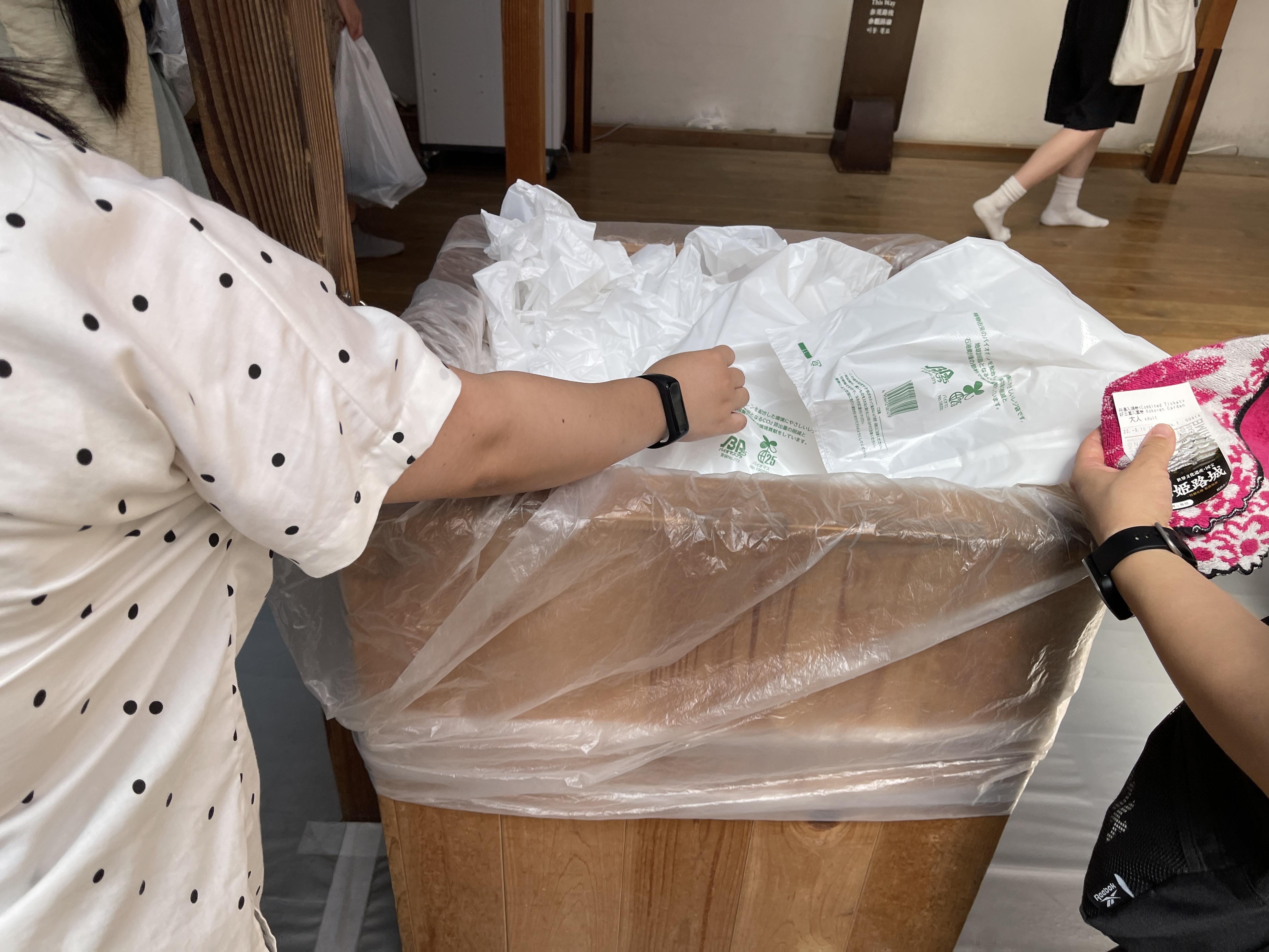 신발을 벗고 비닐에 담은 뒤 천수각 안으로 들어가면