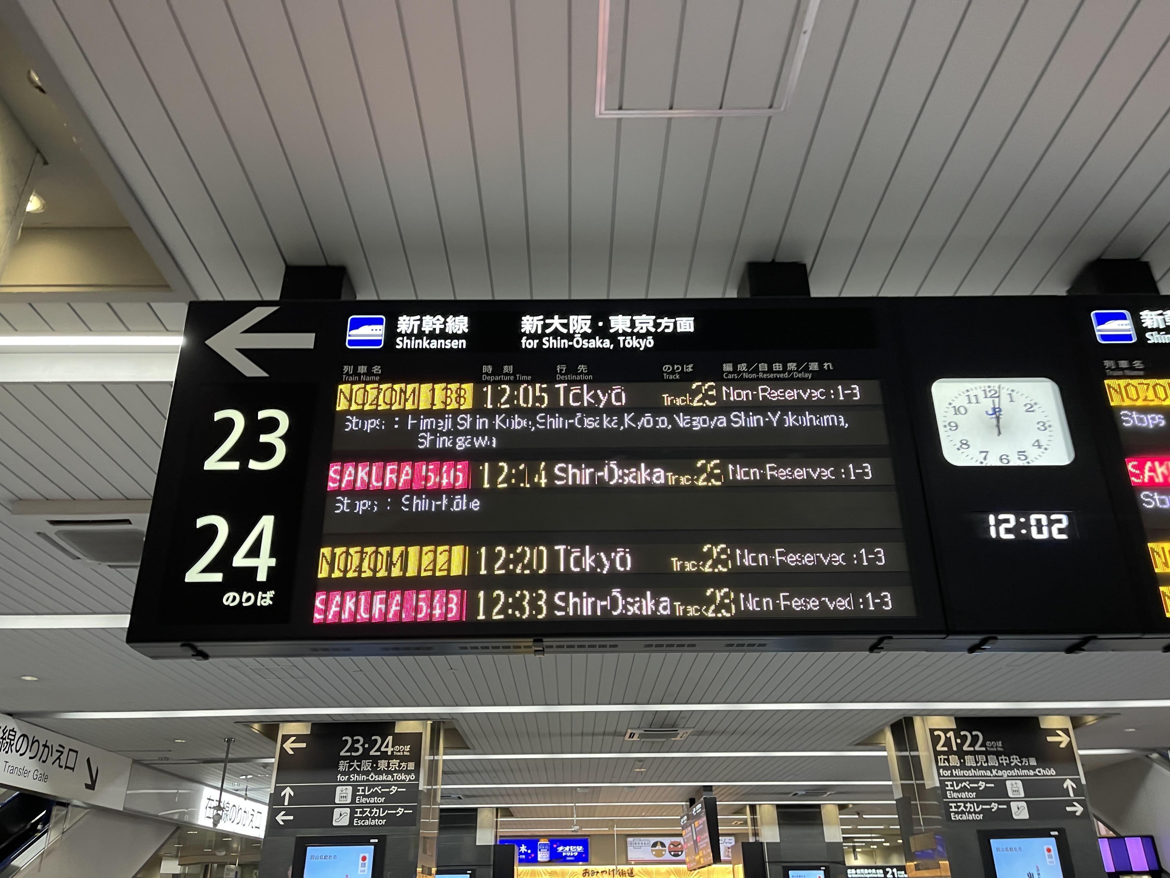 오카야마역에 들어오니 노조미가 5분도 안돼 도착할 예정이라