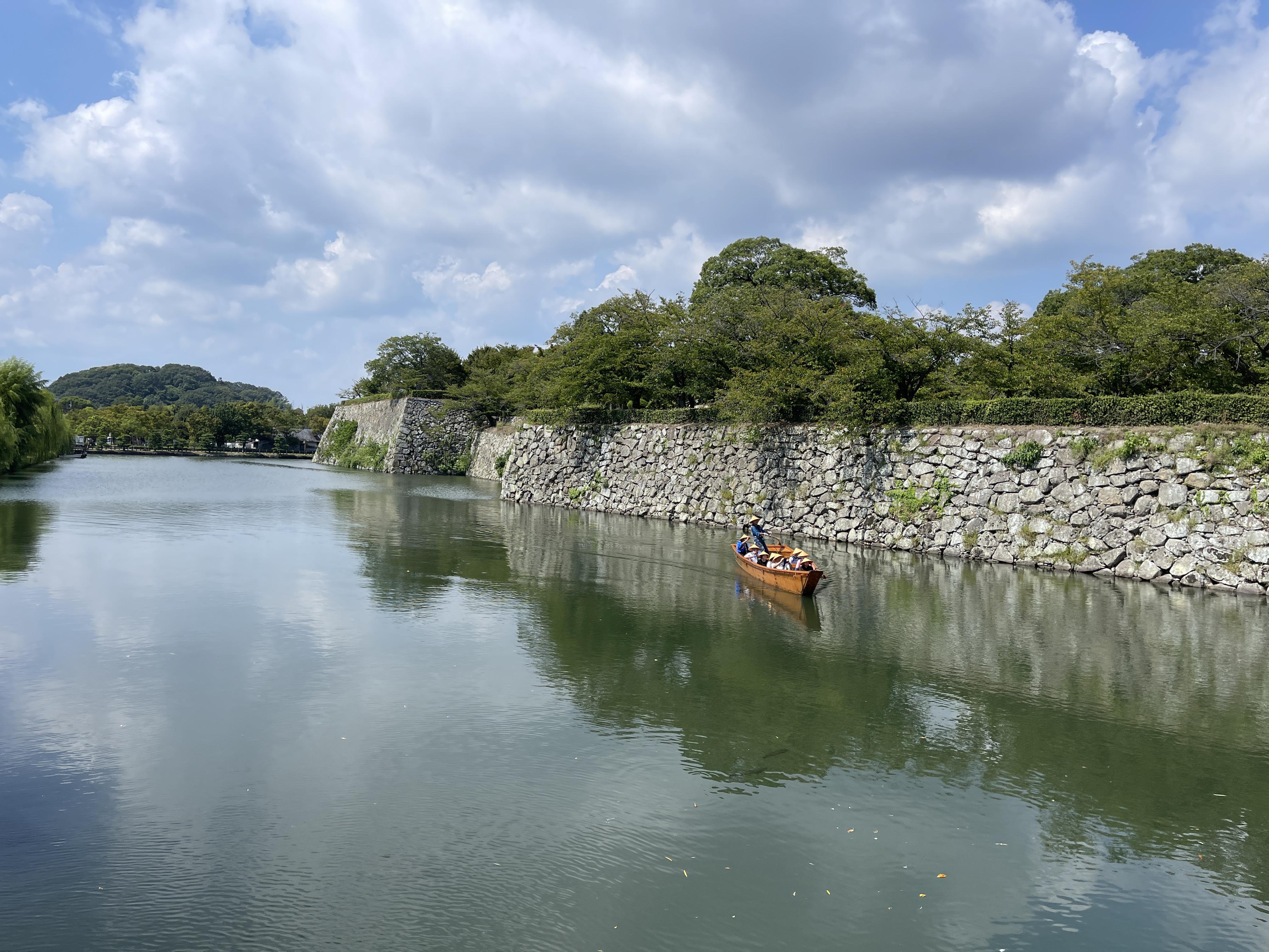 성을 둘러싼 해자를 따라 뱃놀이를 즐기는 사람들을 보니