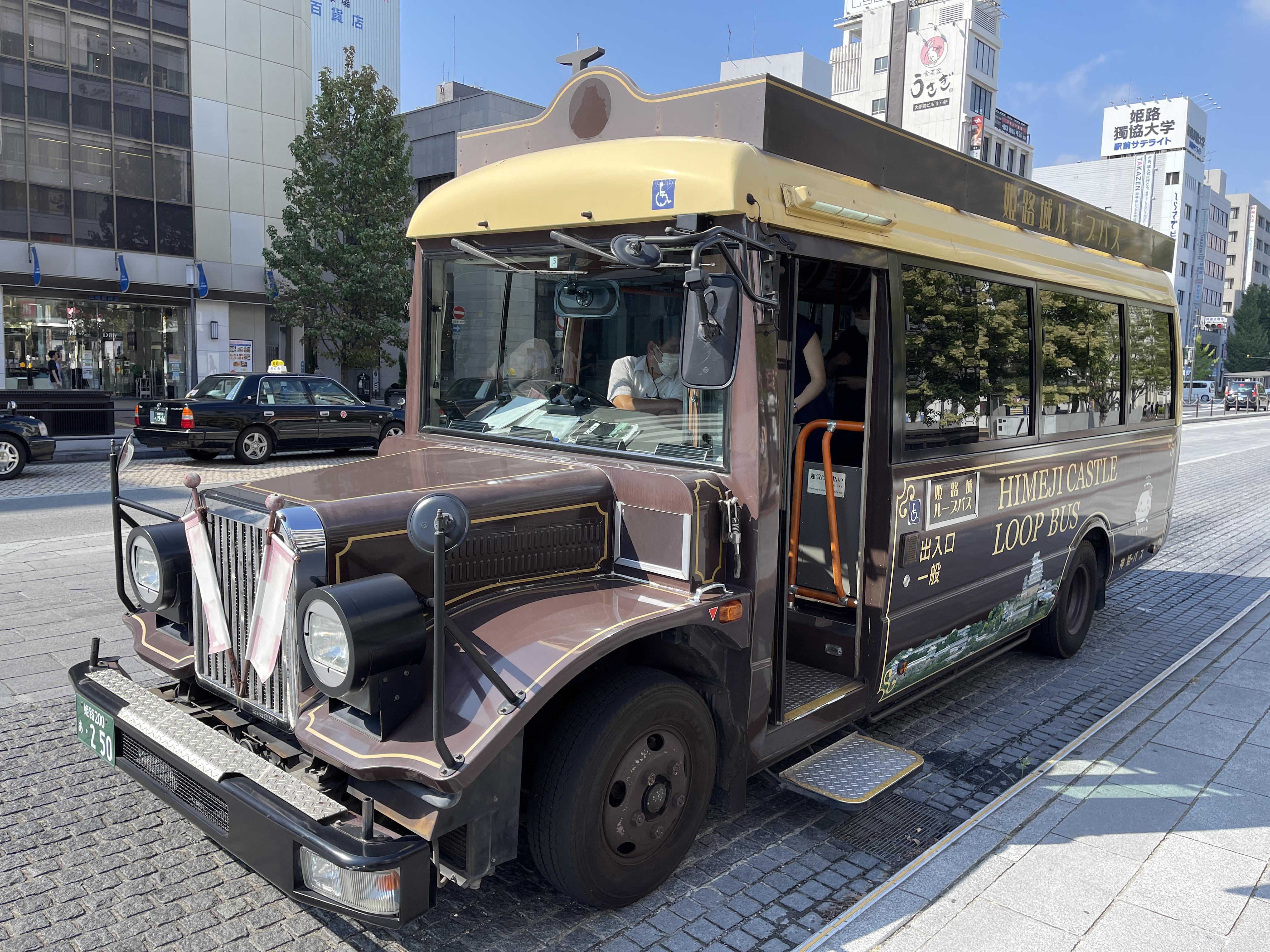 버스 정류장에 오니 마침 히메지성 루프버스가 올 시간이라