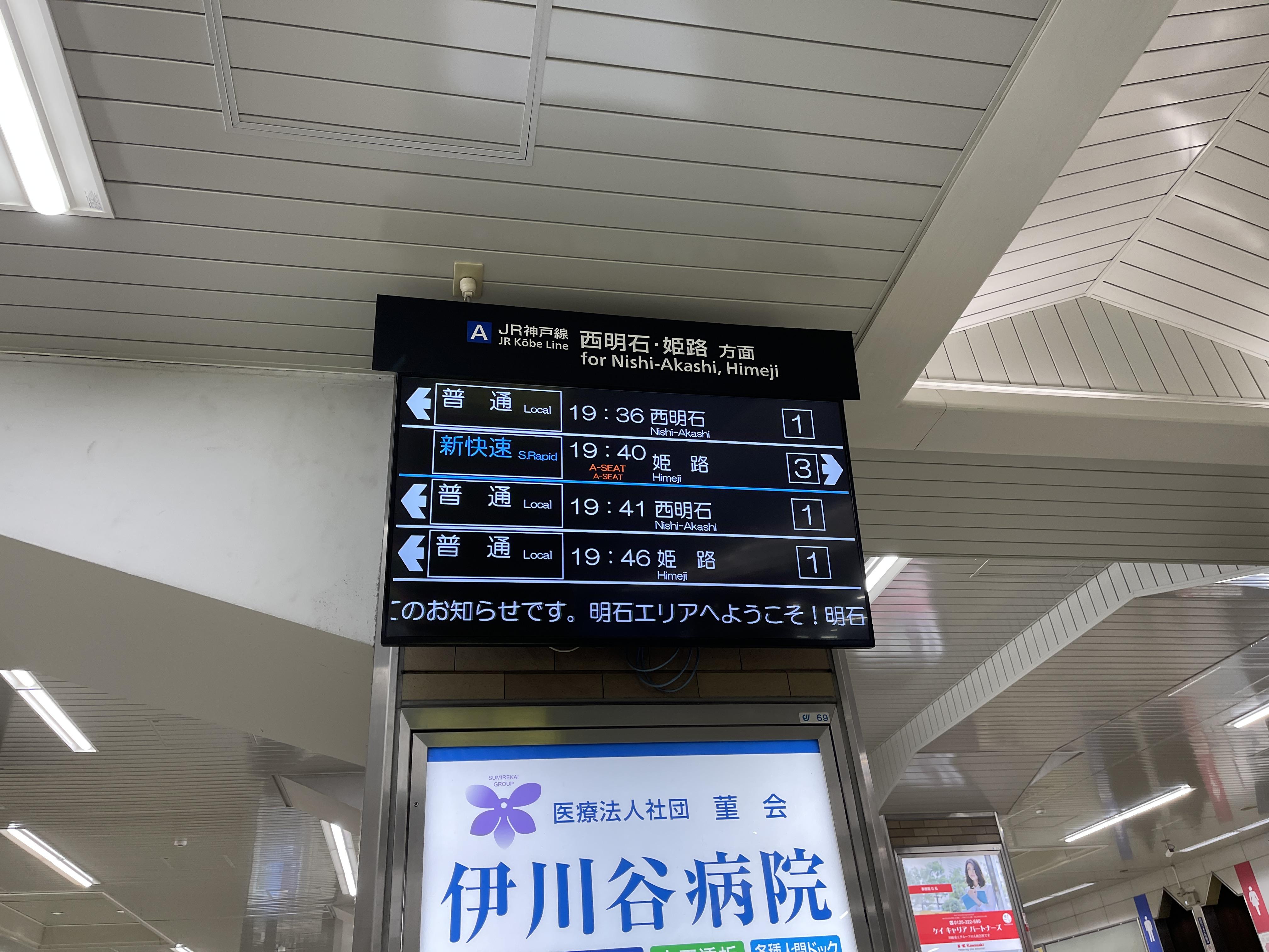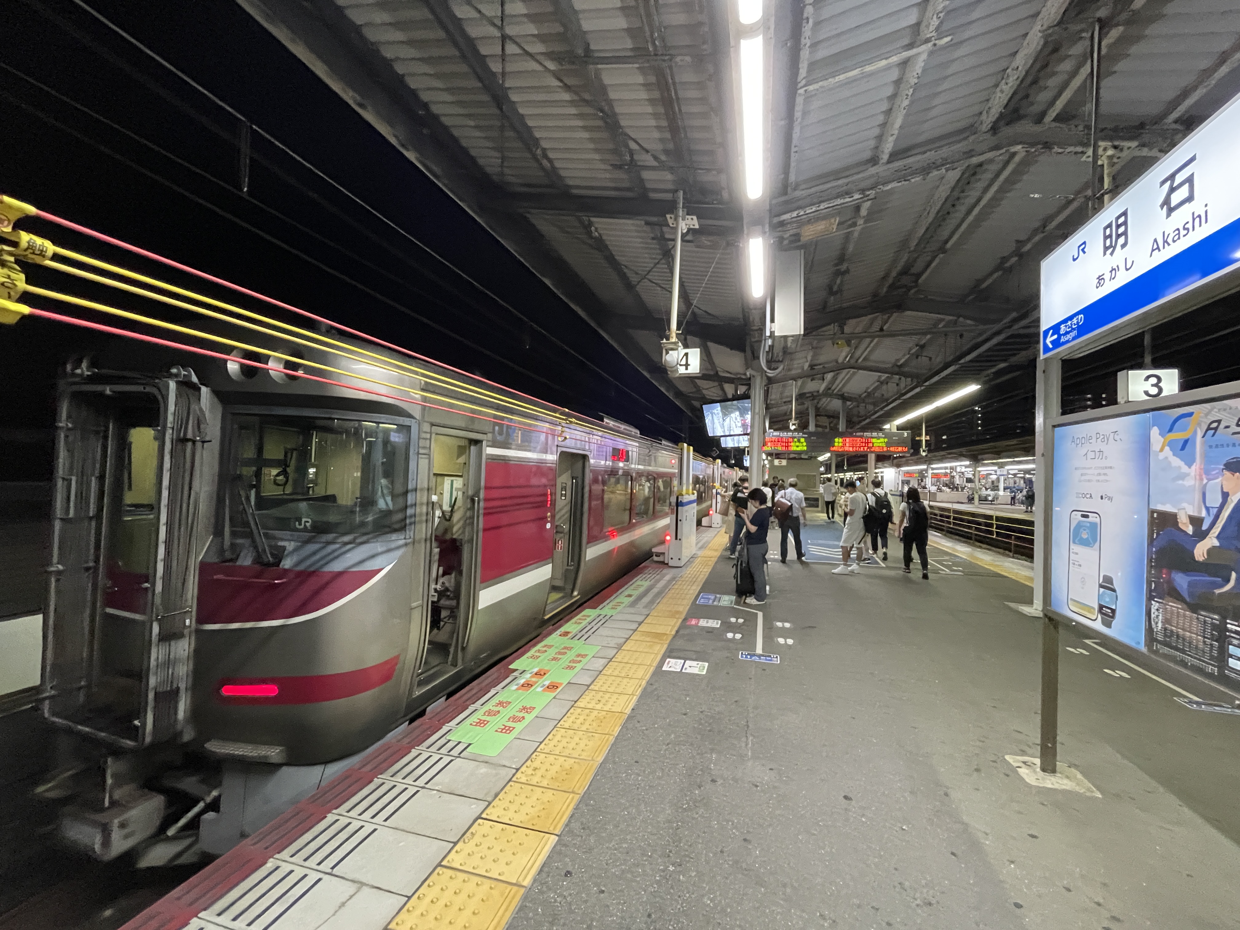 가장 빨리 가는 열차가 니시아카시행 보통열차라서 보통열차에 탔는데