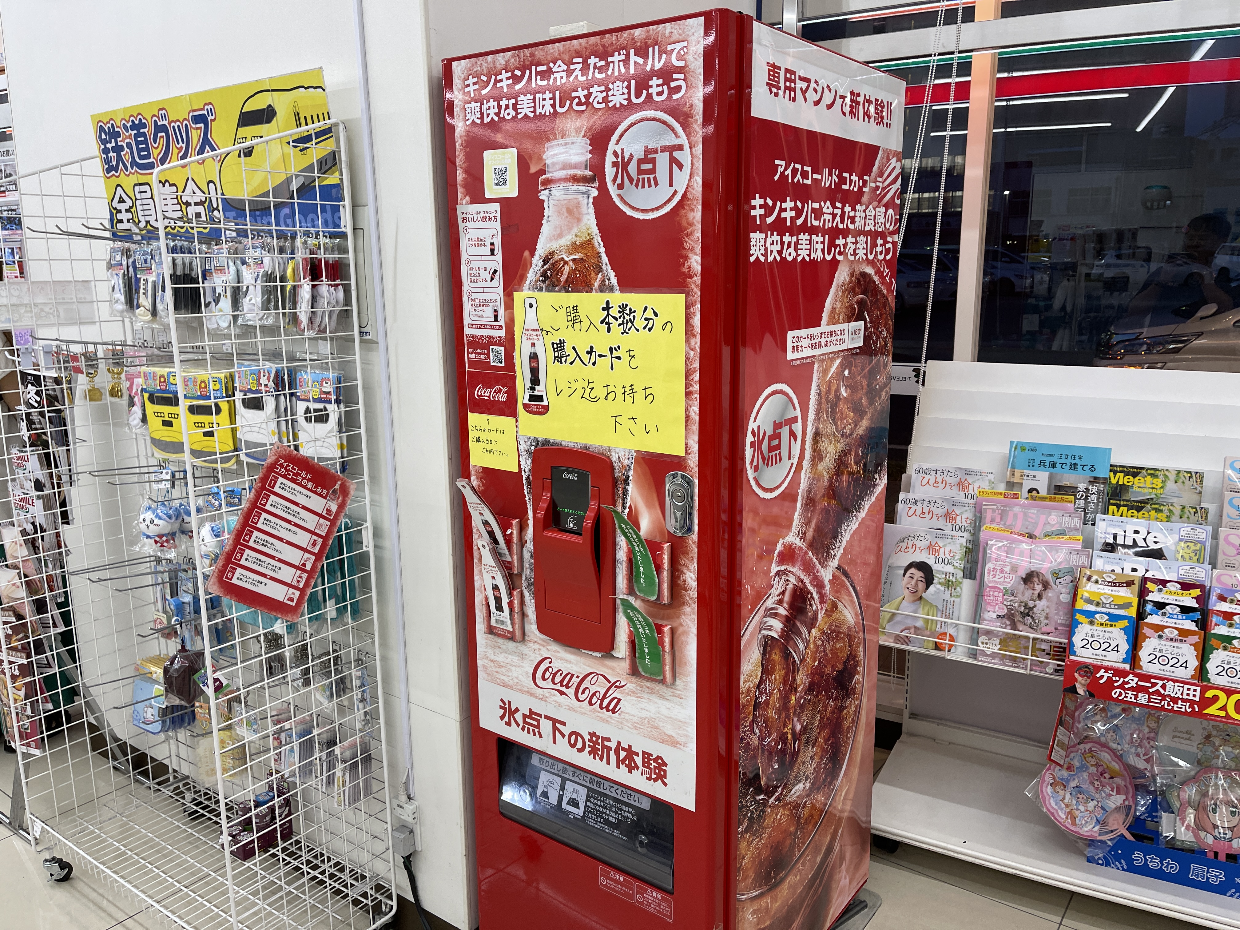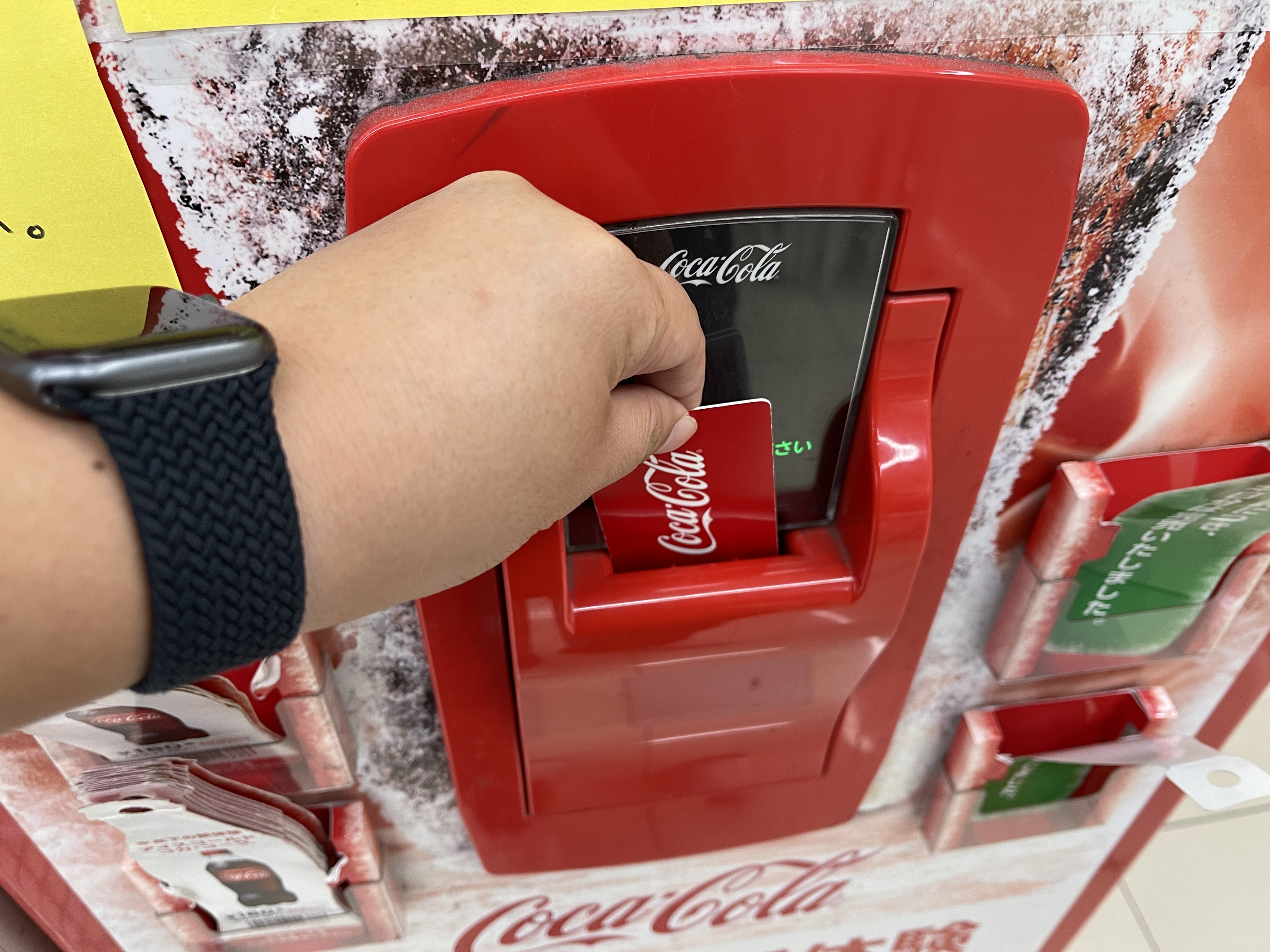 자판기 앞에 있는 콜라 모양 종이를 들고 레지에서 160엔을 내면