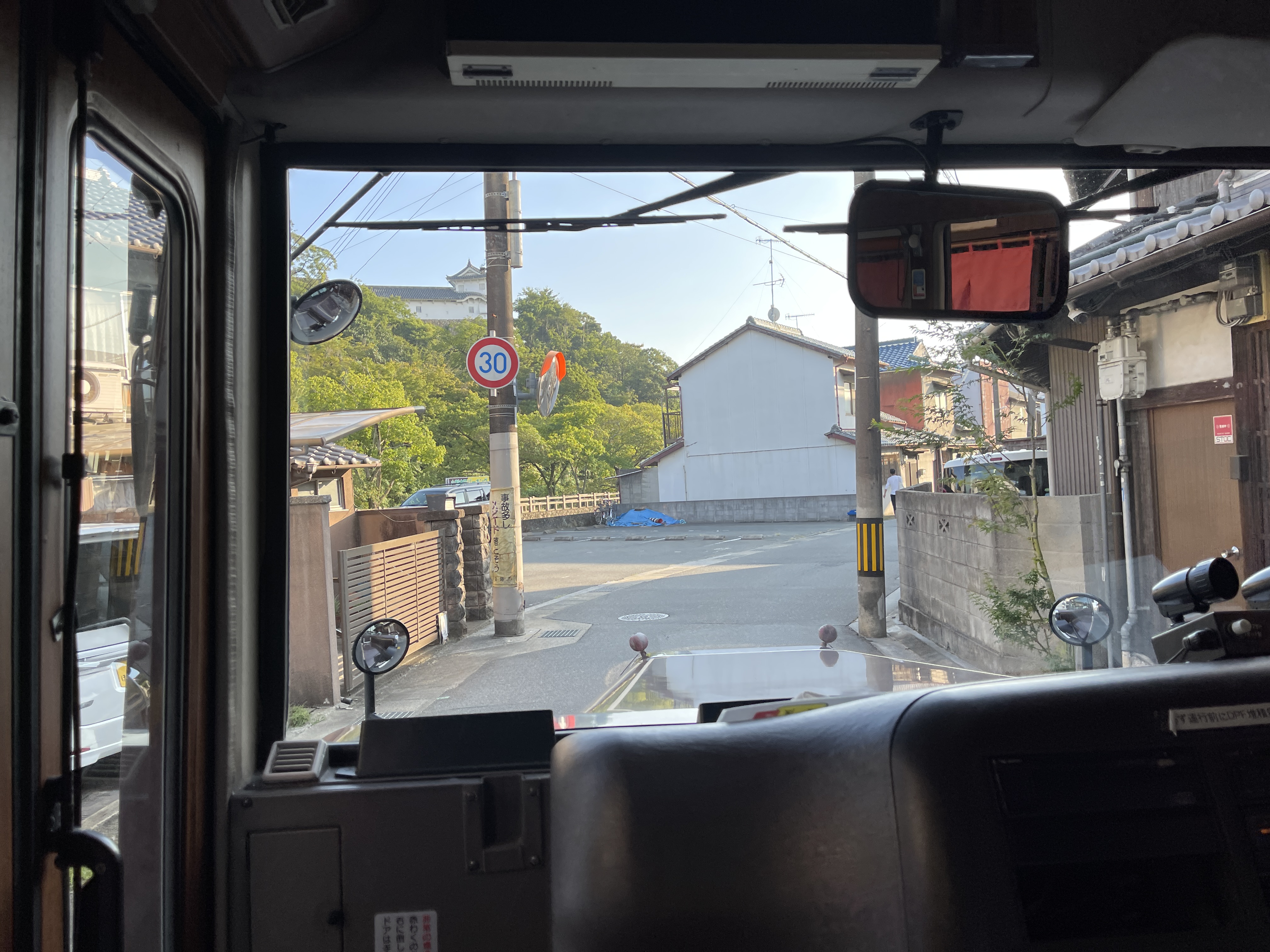 히메지성 루프버스를 작은 프런트 엔진 버스로 운행하는 게