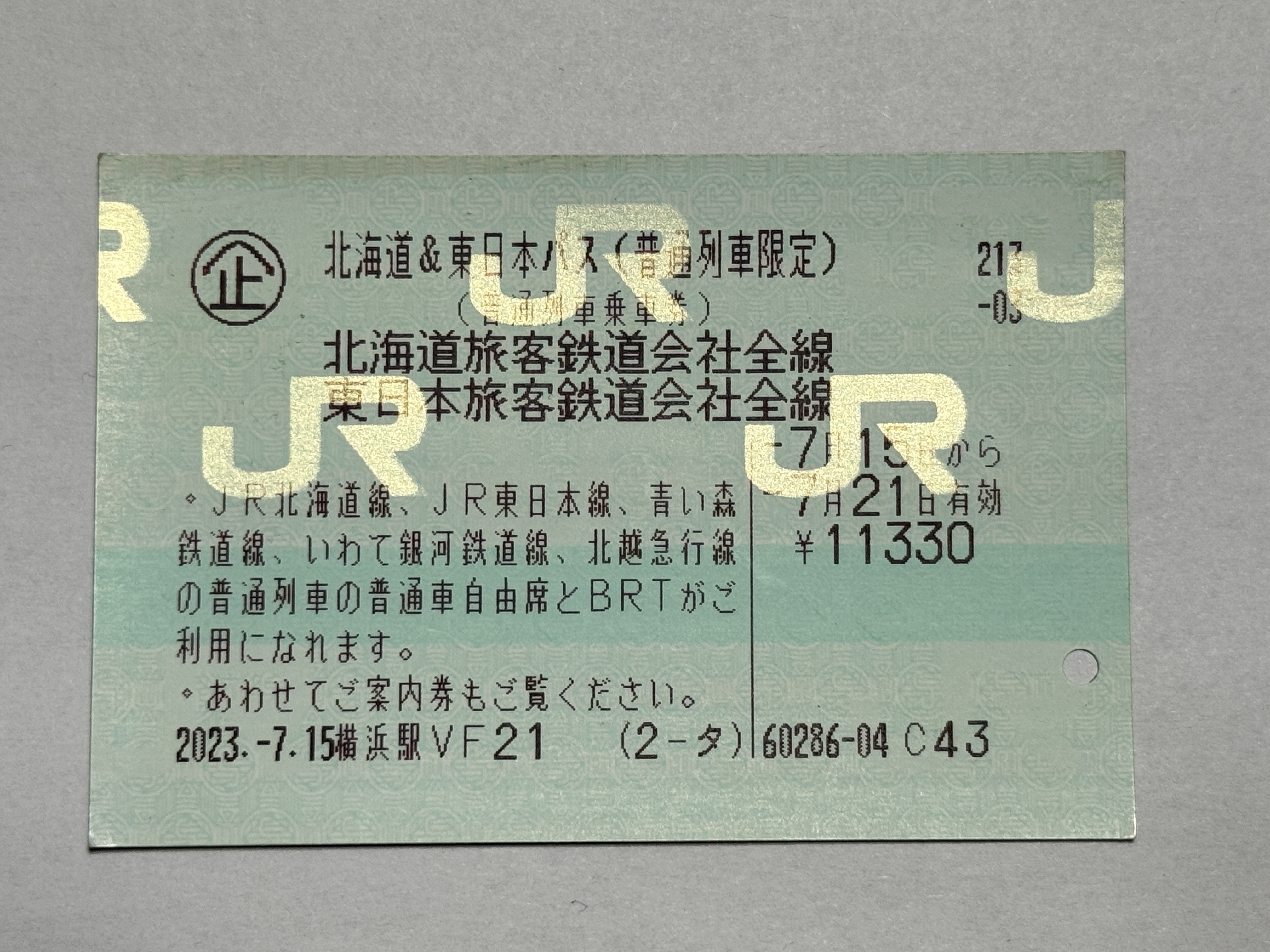 이 패스는 일본인도 살 수 있는 보통열차용 교통패스입니다.