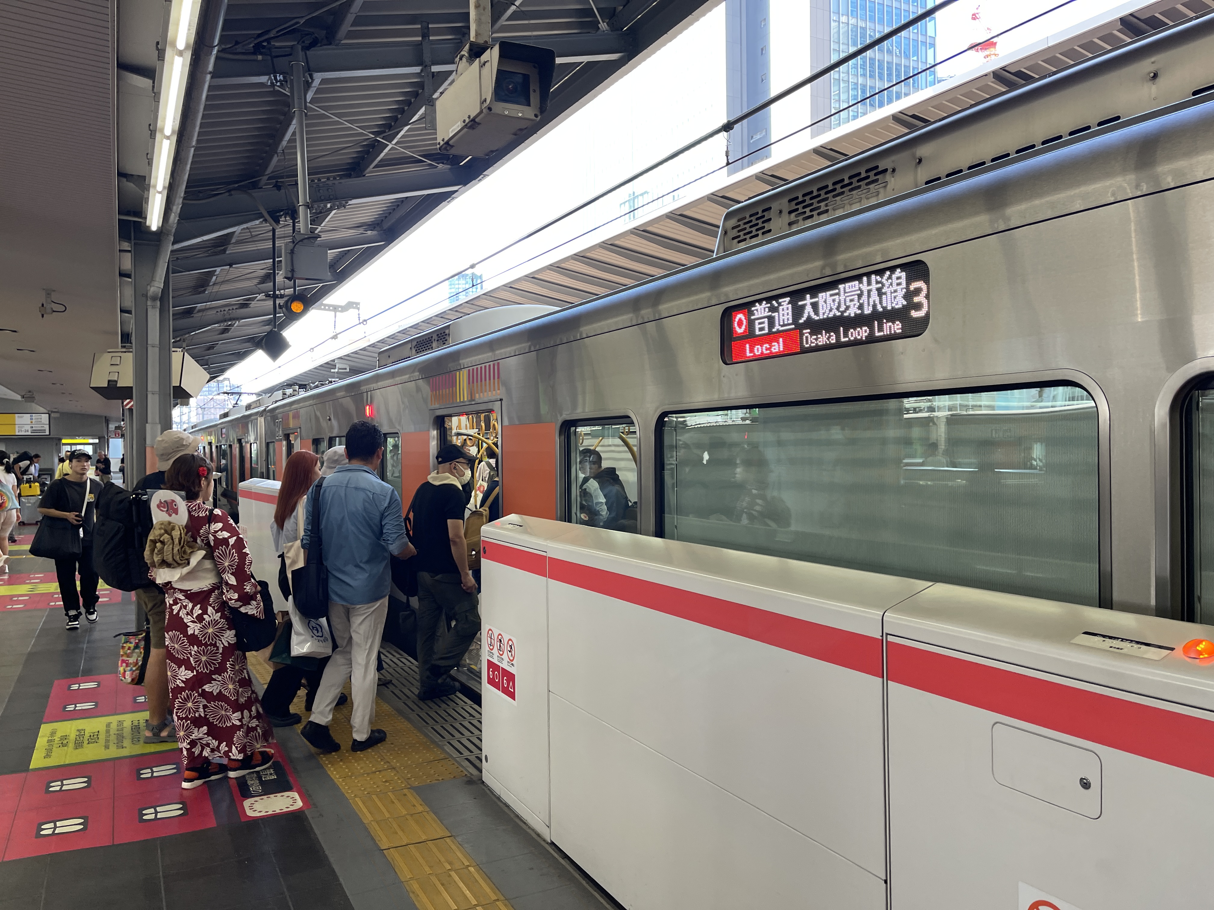 시계 방향으로 순환하는 오사카 환상선 열차를 타고