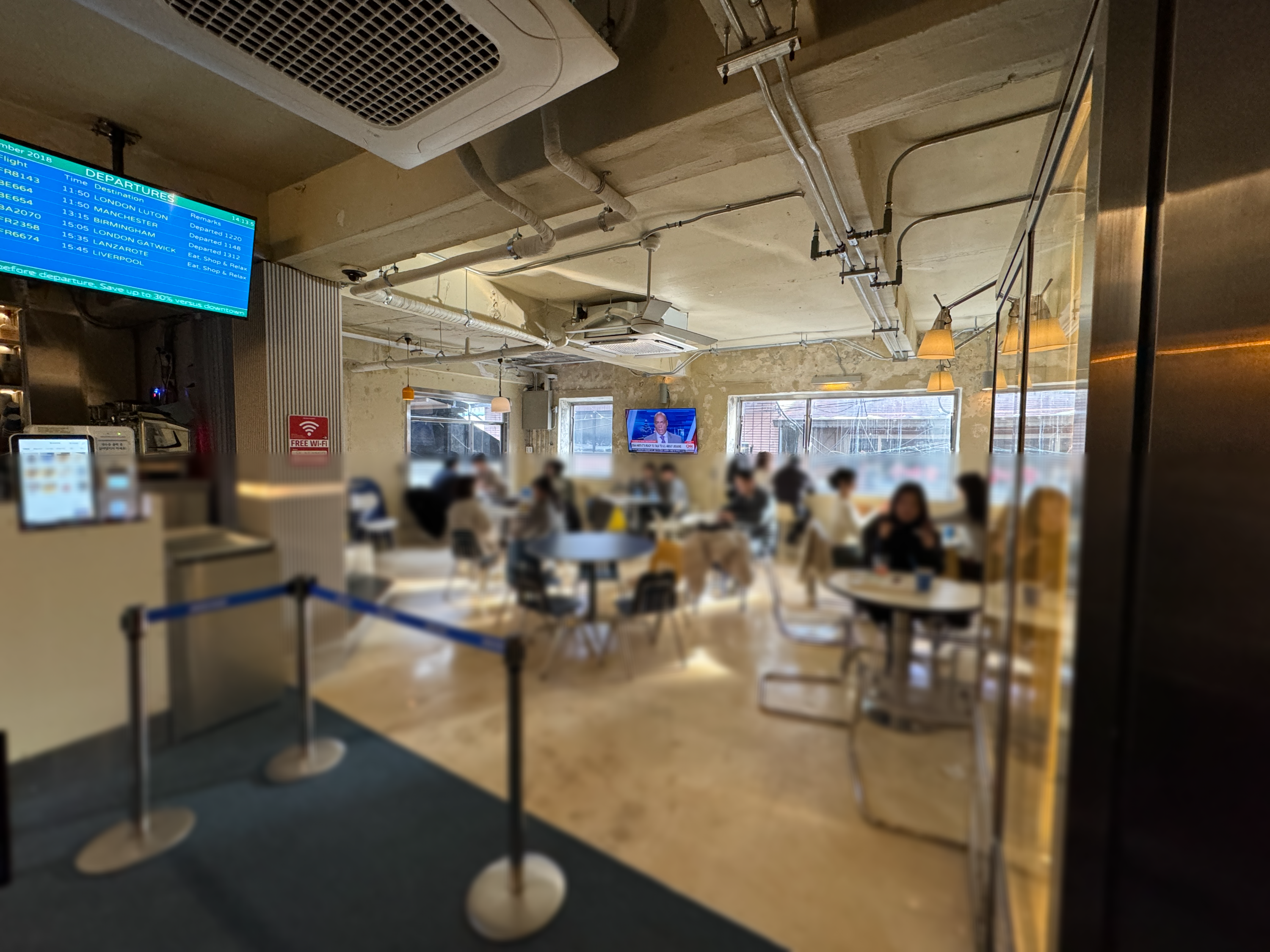 실제 항공편과는 전혀 관련 없이 그럴듯하게 만든 FIDS를 달아놓은 이곳의 정체는