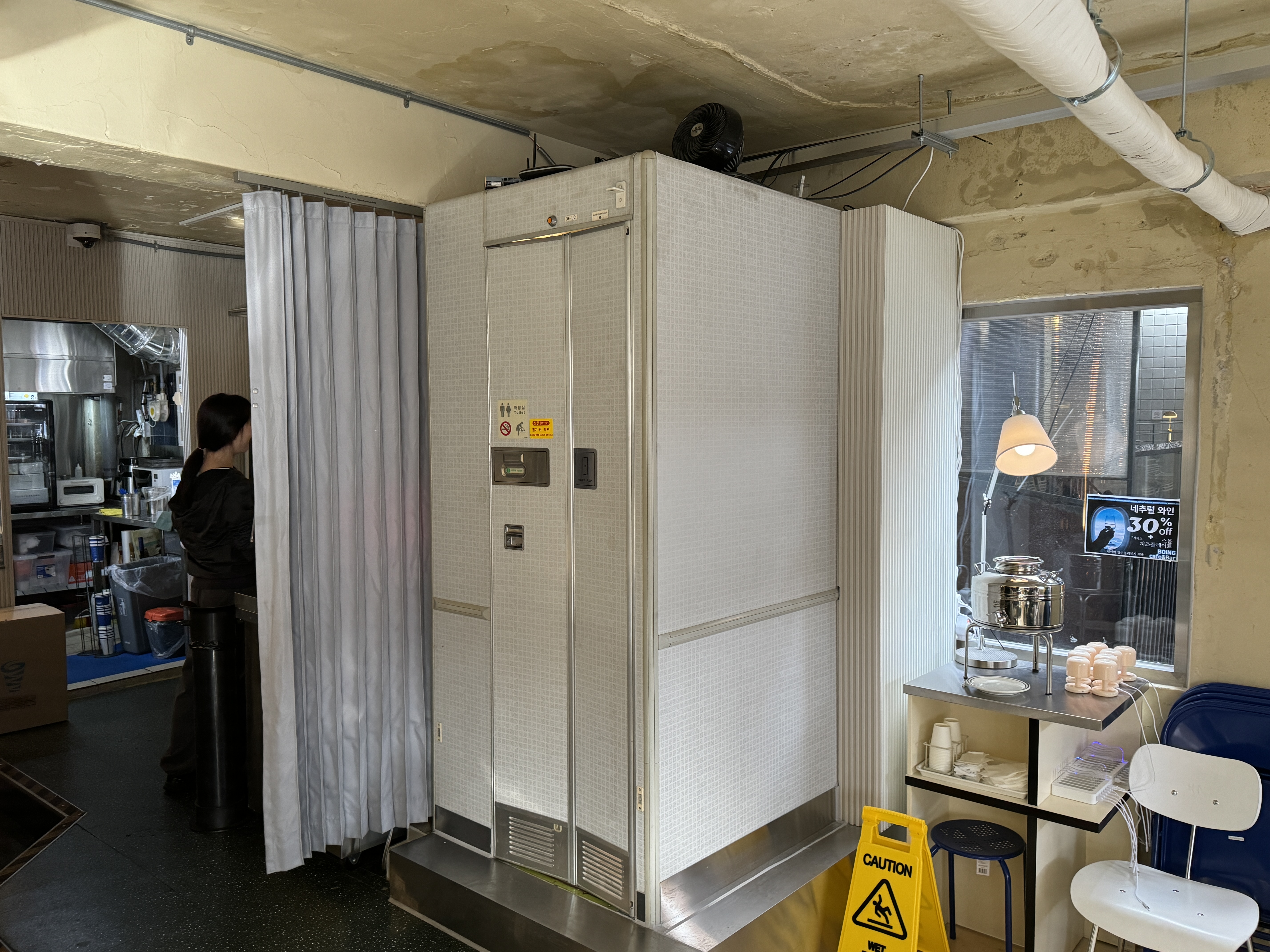 비행기 실내를 그대로 뜯어놓은 자리에 앉아 커피를 마실 수 있지만