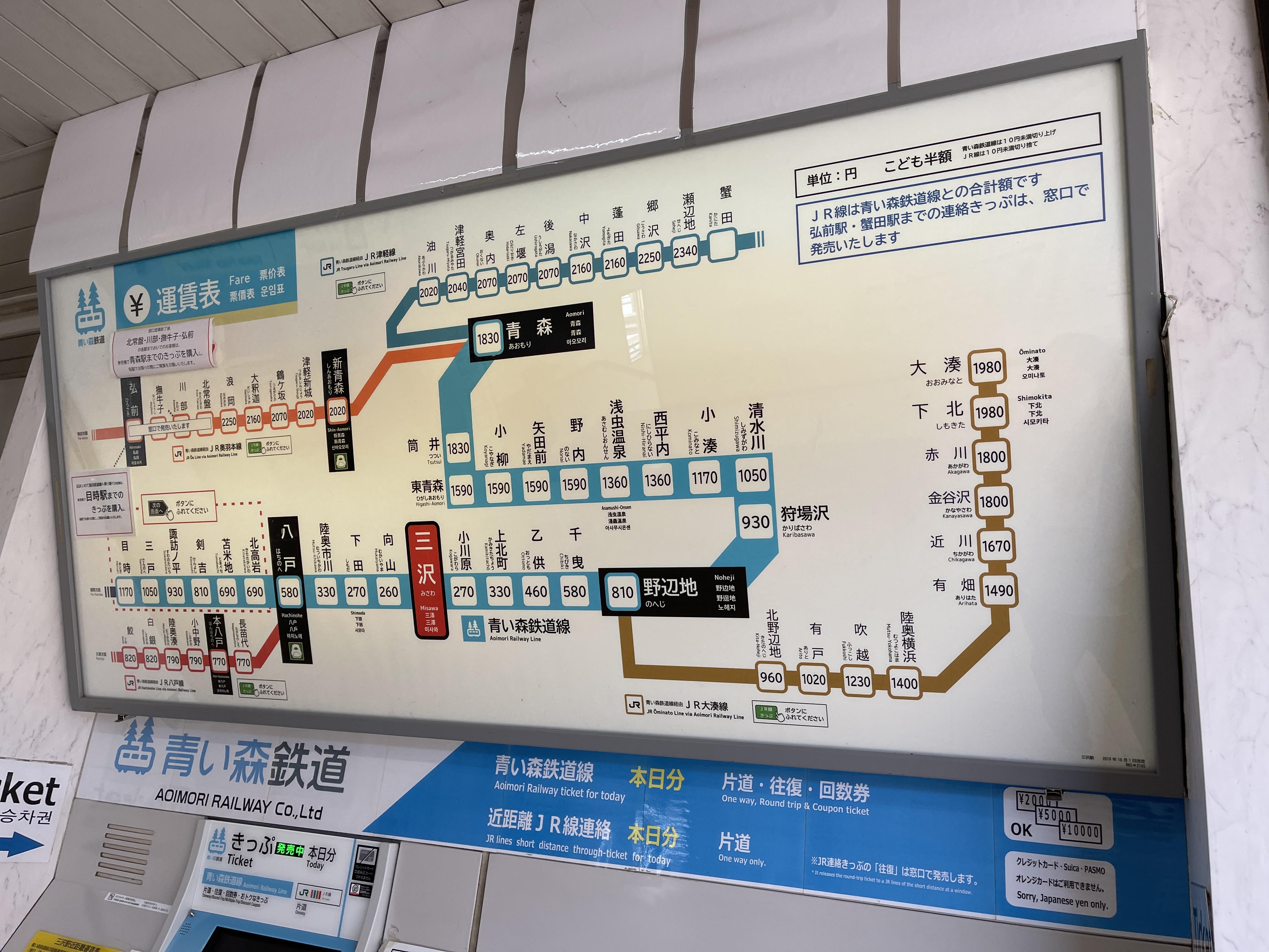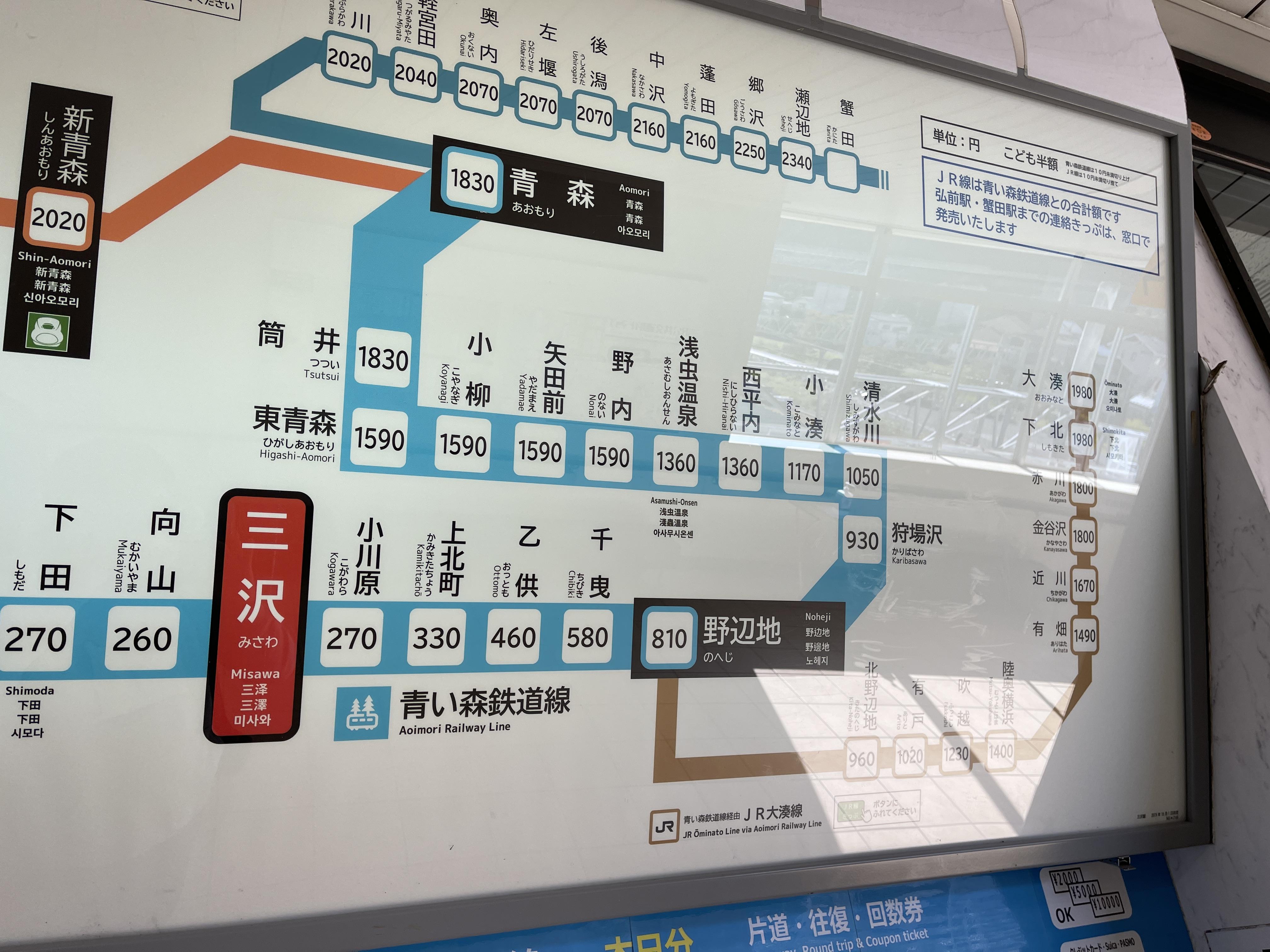 미사와역에서 노헤지역까지는 패스를 못 쓰니 승차권을 따로 사야 하네요.