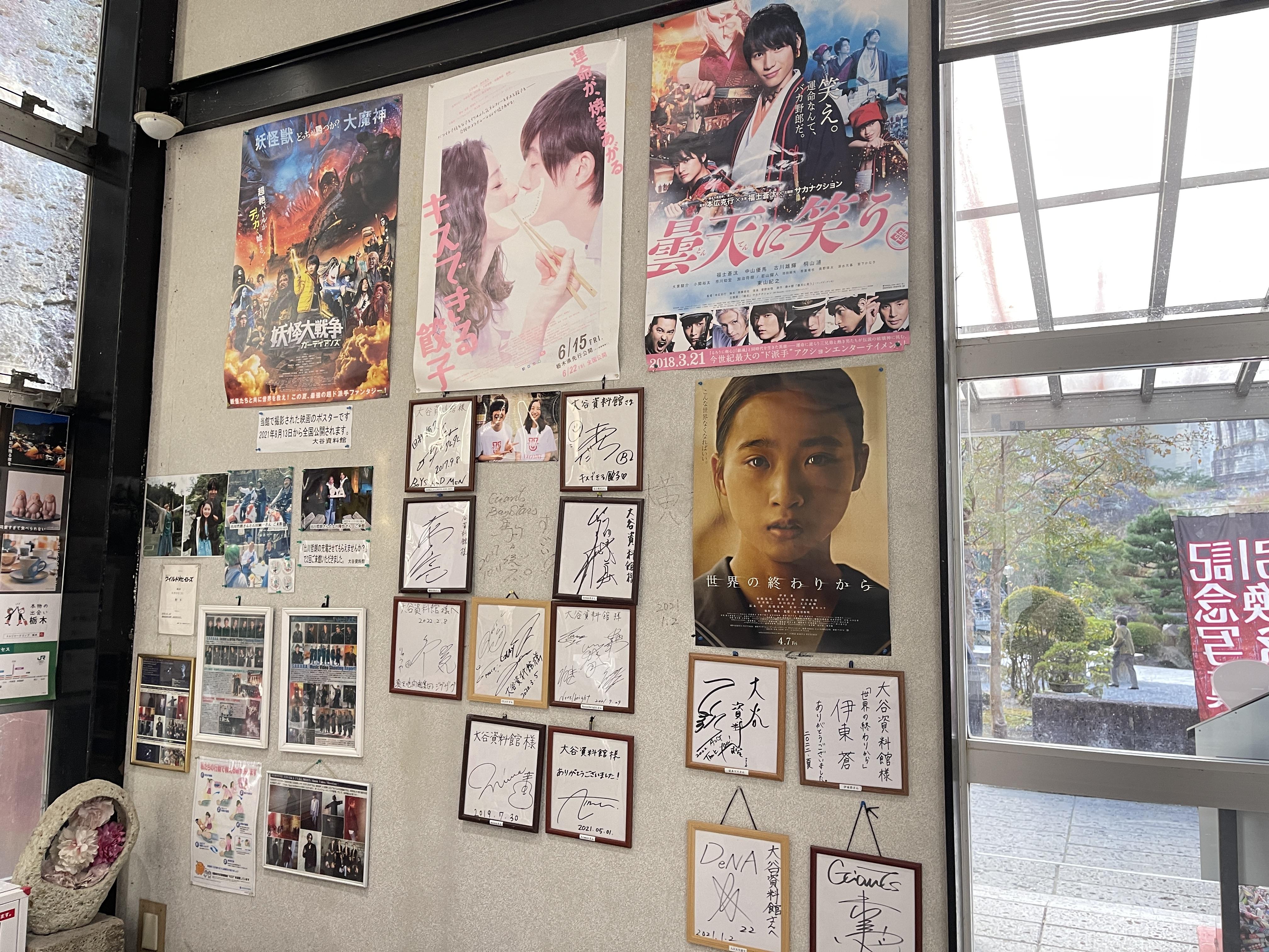 오야 자료관에서 영화를 찍은 배우들의 사인이나